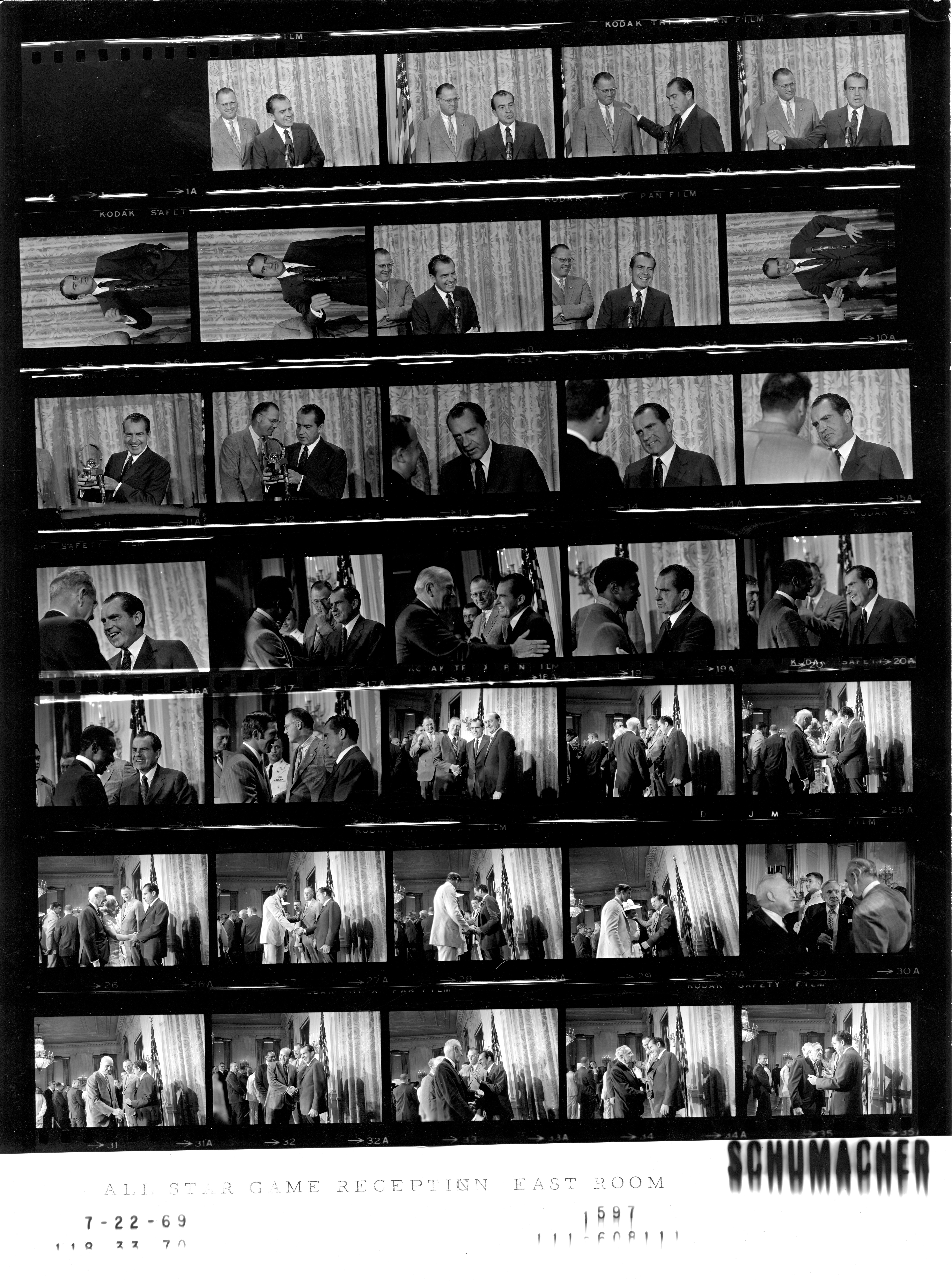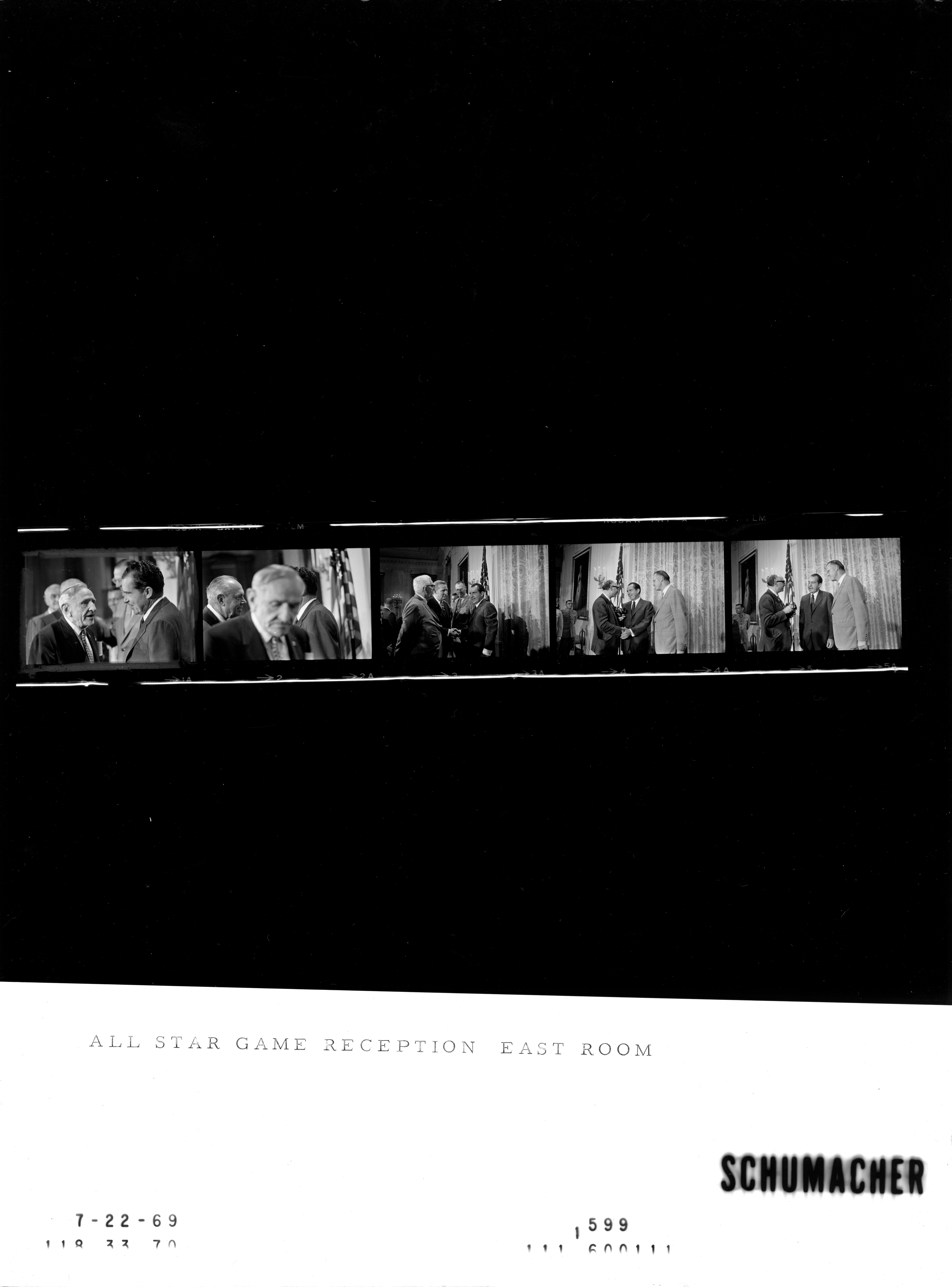 - Frame(s): WHPO-1599-01-02, President Nixon greeting Casey Stengel, and other baseball Hall of Fame members, at a reception for All Star Players, members of the Baseball Hall of Fame and sports writers at a reception honoring Baseball's 100th anniversary. 7/22/1969, Washington, D.C. White House, East Room. President Nixon, Casey Stengel, Col. Jack Brennan, unidentified baseball managers and players.