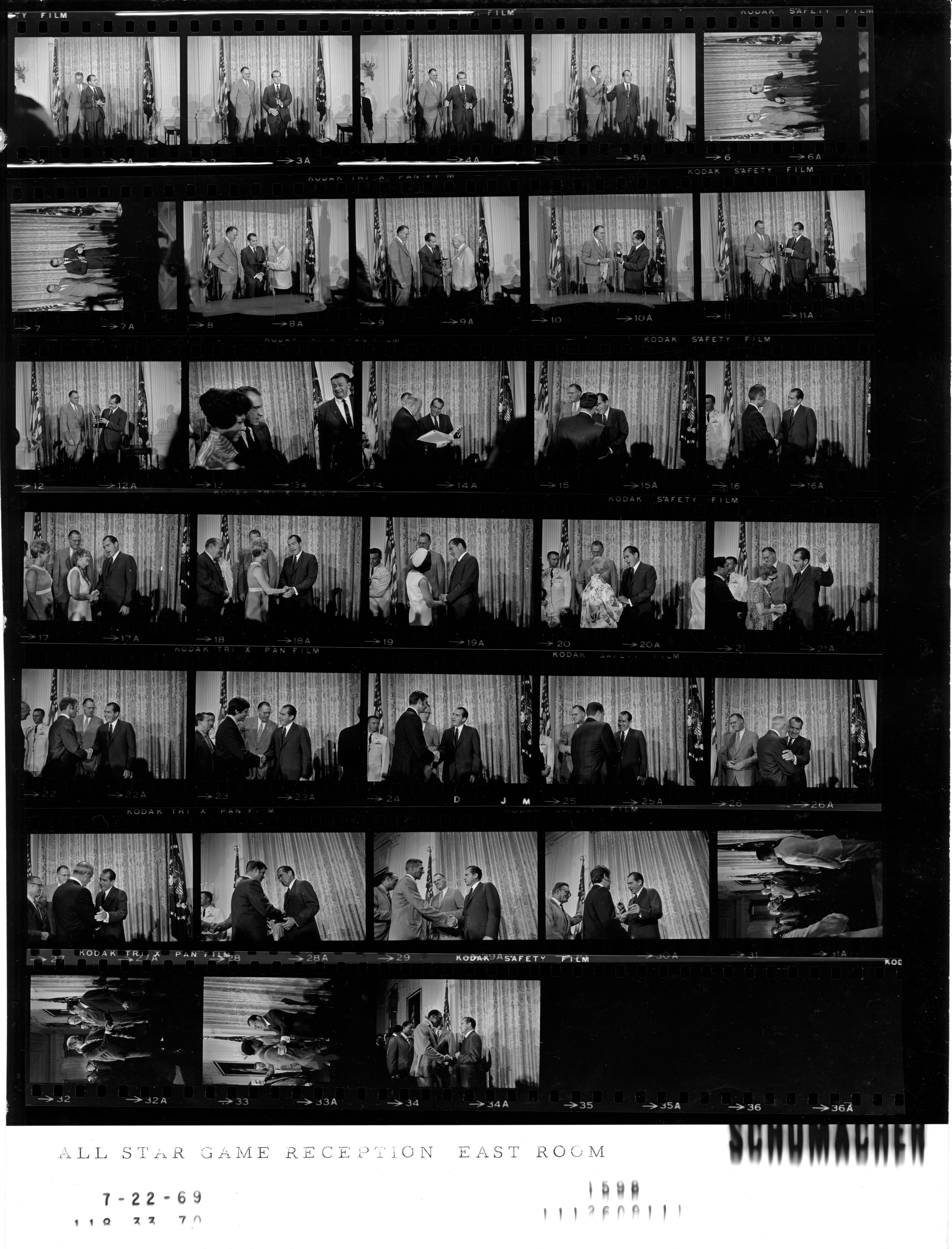 - Frame(s): WHPO-1598-, President Nixon with Commissioner of Baseball Bowie Kuhn and All Star players, Hall of Famers, women, and sports writers on the 100th anniversary of baseball. 7/22/1969, Washington, D.C. White House, East Room. President Nixon, Bowie Kuhn, unidentified baseball managers and players.