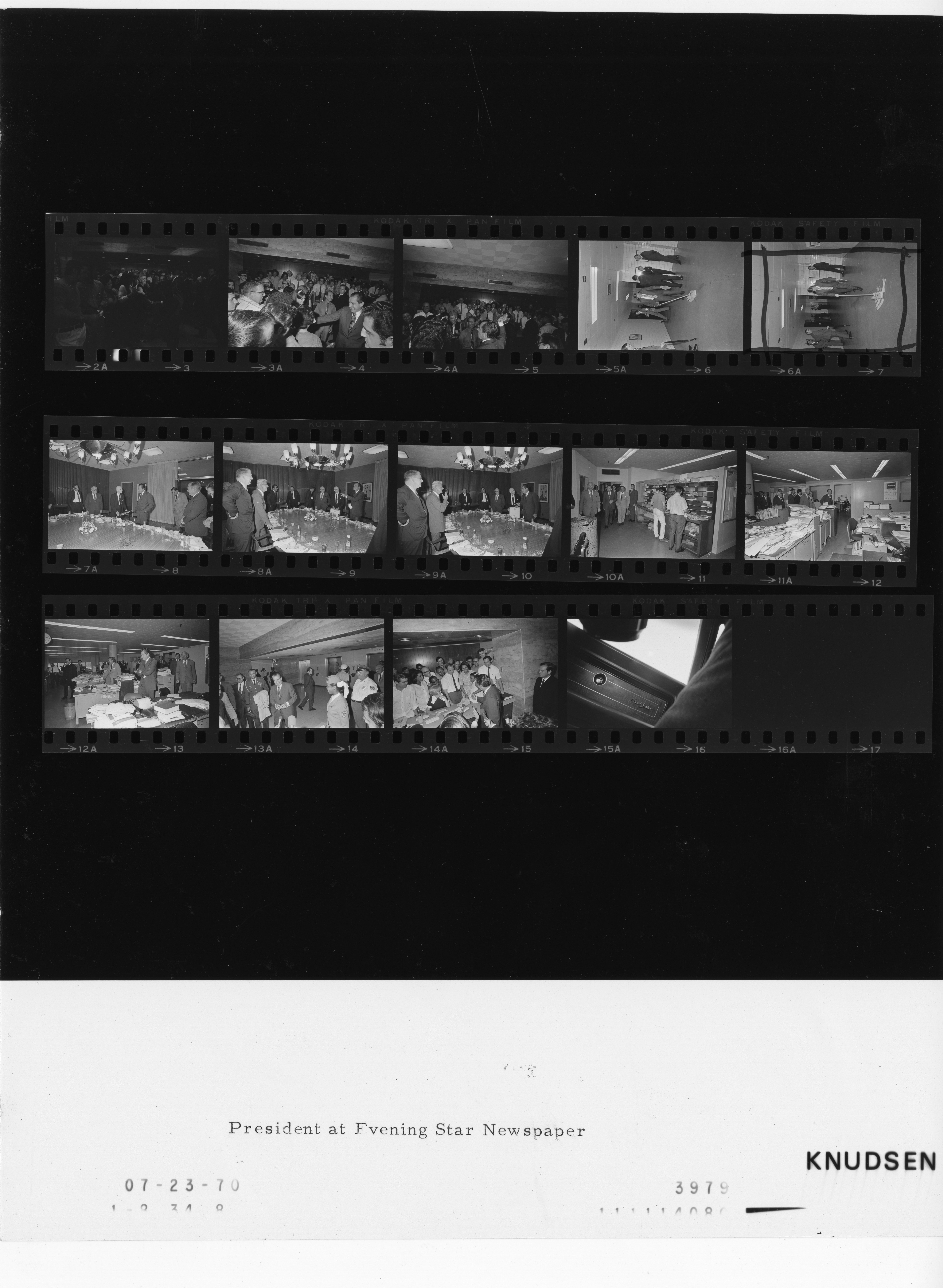 - Frame(s): WHPO-3980-15A, President Nixon visit to "The Evening Star" newspaper in Washington, D.C. 7/23/1970, Washington, D.C. Offices of the "Evening Star" newspaper.