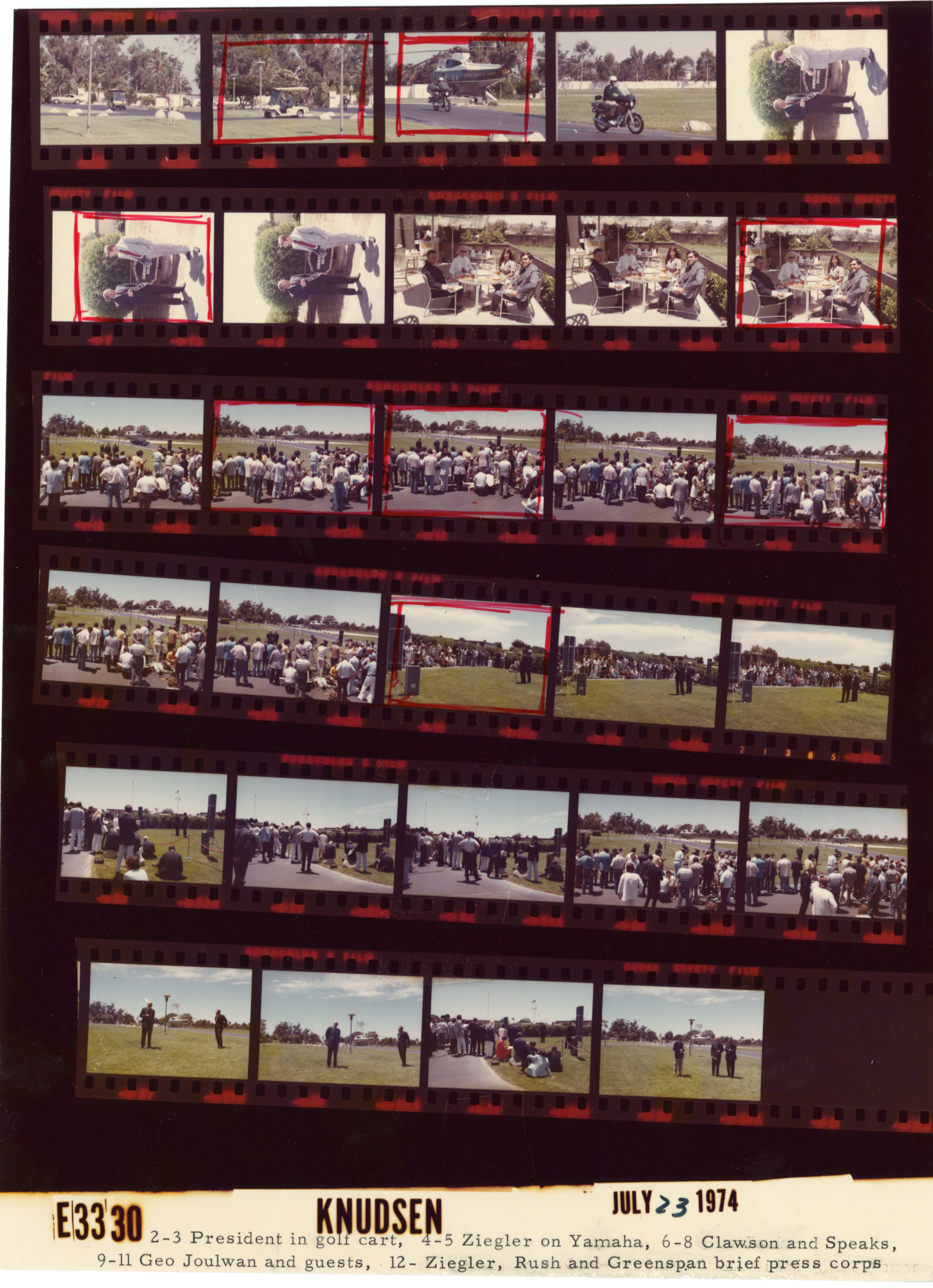 - Frame(s): WHPO-E3330-01-04, President Nixon driving a golf cart and Ron Ziegler riding a Yamaha motorcycle. 7/23/1974, San Clemente, CA La Casa Pacifica, Western White House. President Nixon, Ron Ziegler.