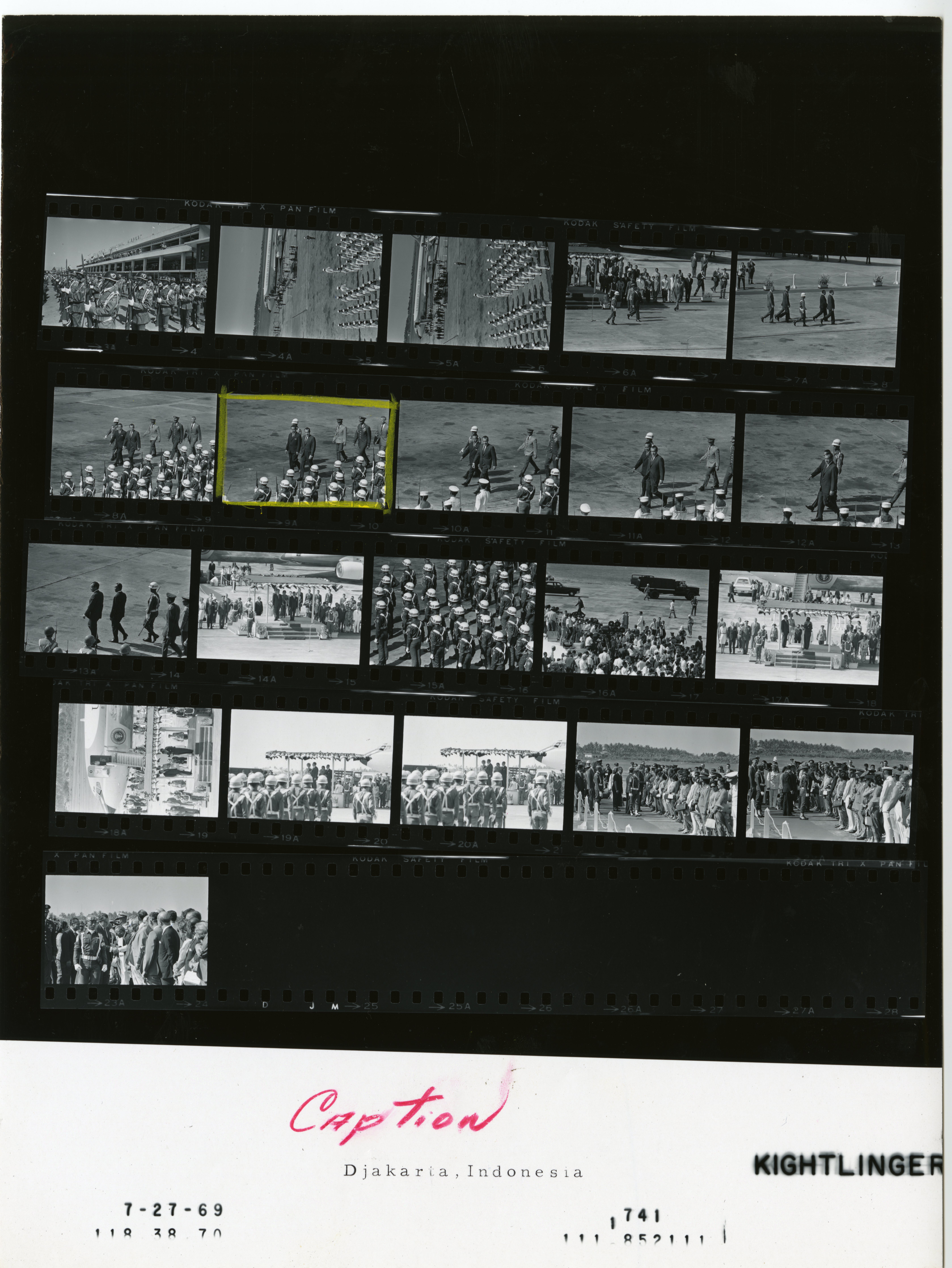 - Frame(s): WHPO-1741-06A-13A, President Nixon and President Suharto reviewing the honor guard. 7/27/1969, Djakarta, Indonesia airport, tarmac. President Nixon, Pat Nixon, President Suharto, Mrs. Suharto, officials, honor guard.