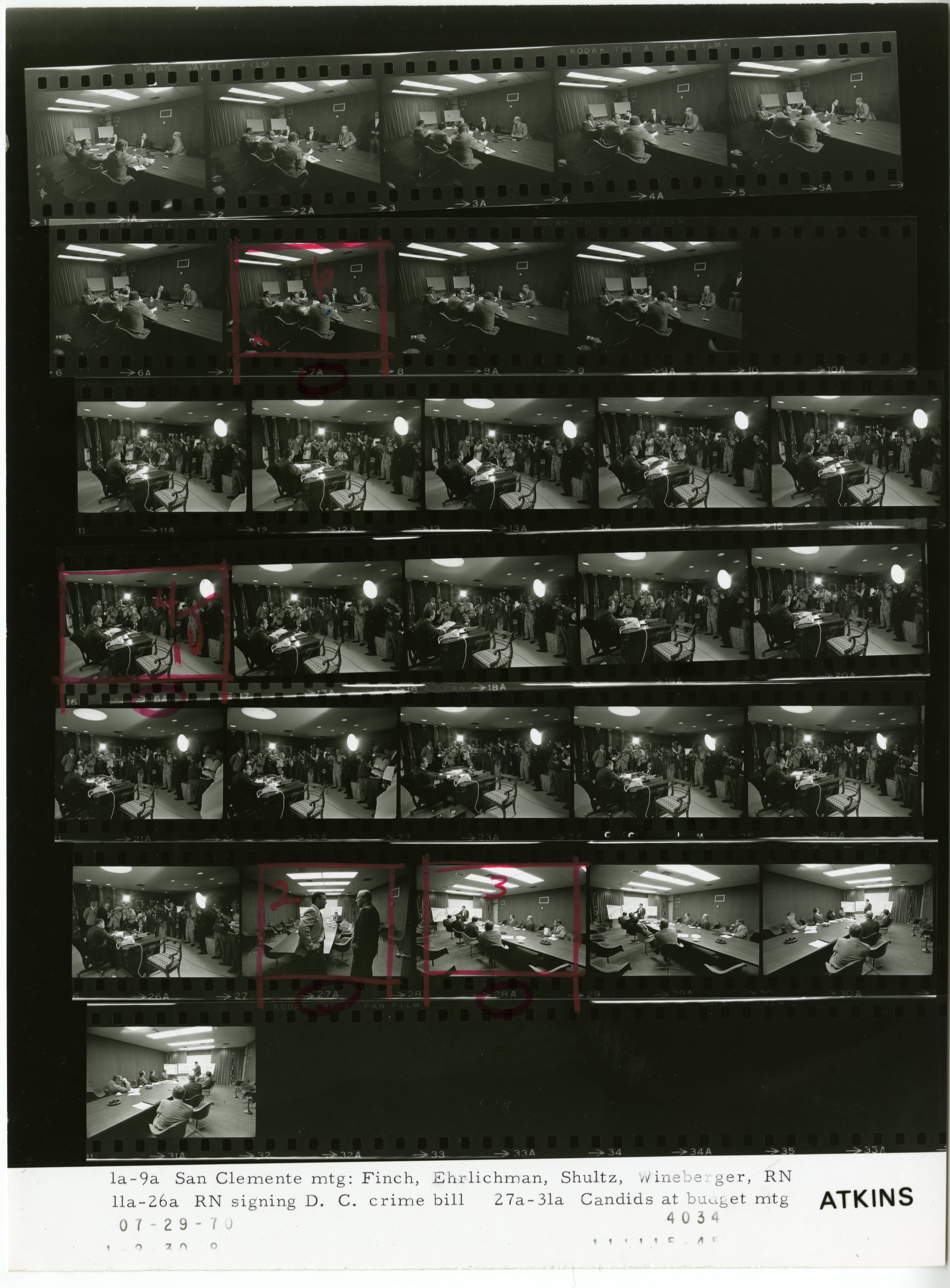 - Frame(s): WHPO-4034-01A-09A, President Nixon meeting with Domestic Budget Review Committee. 7/29/1970, San Clemente, CA Western White House, Conference room. President Nixon, George P. Shultz, Casper Weinberger, John D. Ehrlichman, Kenneth Cole.
