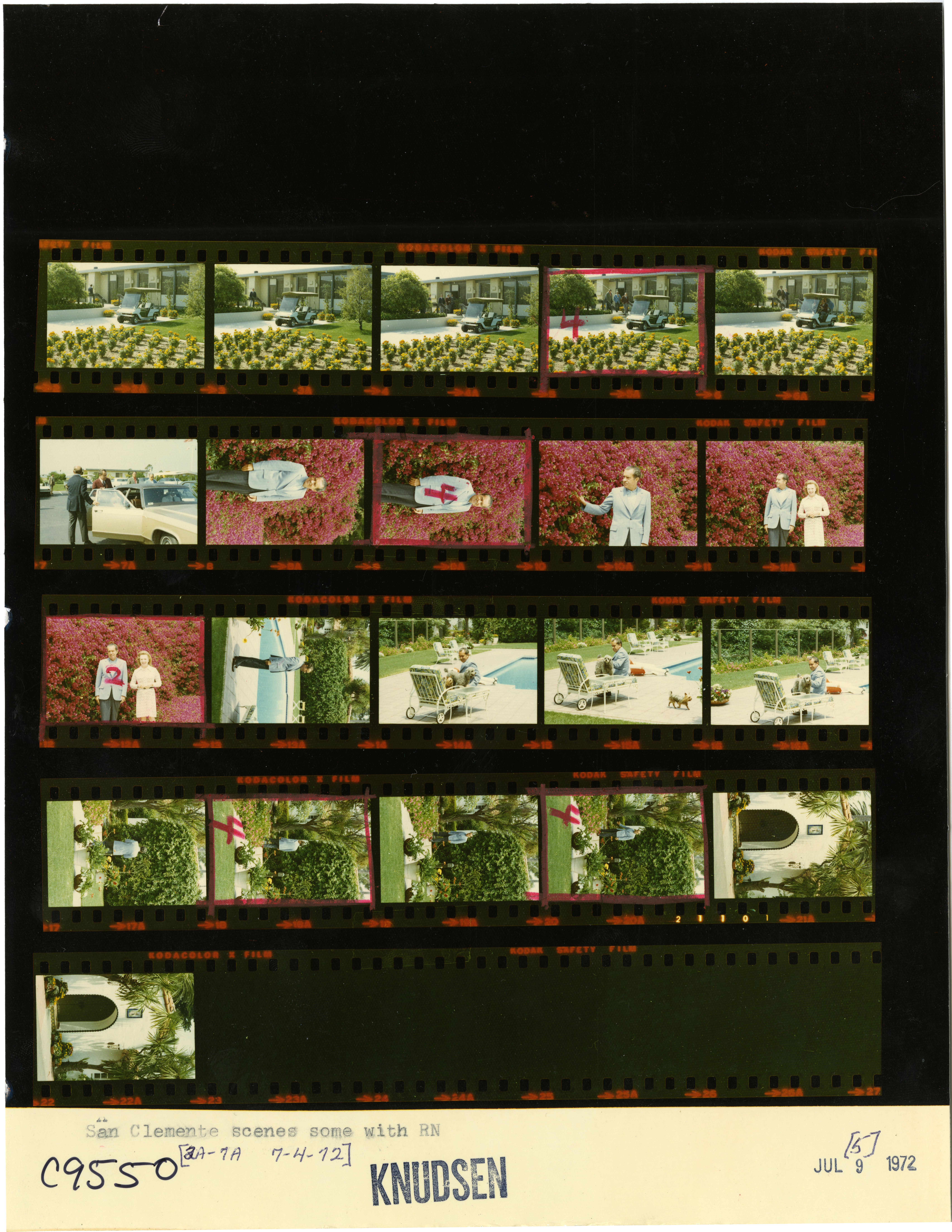 - Frame(s): WHPO-9550-08A-22A, President Nixon and Rose Mary Woods, at various places outdoors. 7/5/1972, San Clemente, California outdoor sites, San Clemente Compound. President Nixon, Rose Mary Woods.