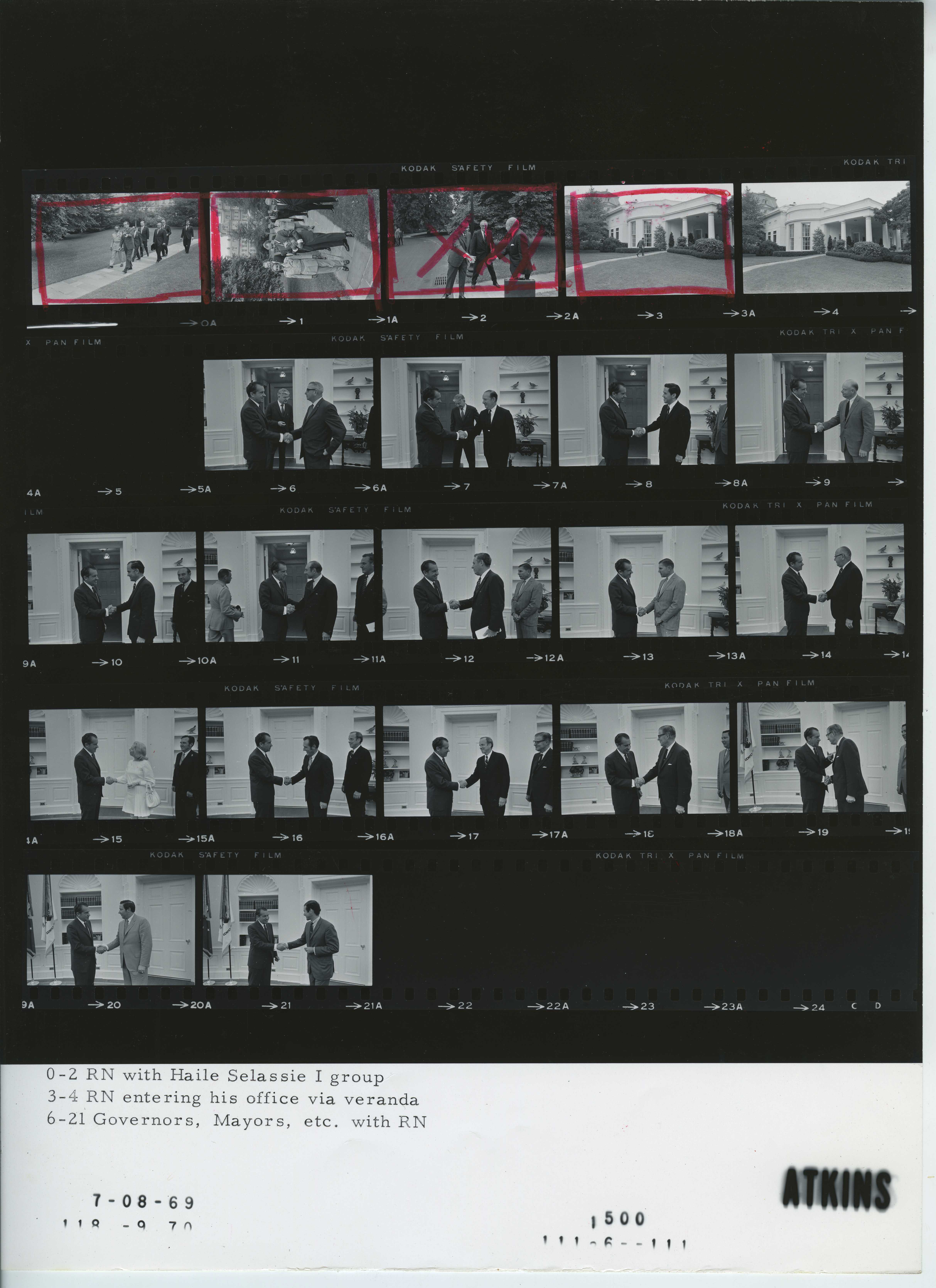 - Frame(s): WHPO-1500-00-02, President Nixon escorting Emperor Haile Selassie I of Ethiopia. 7/8/1969, Washington, D.C. White House grounds. President Nixon, Haile Selassie I, unidentified officials.