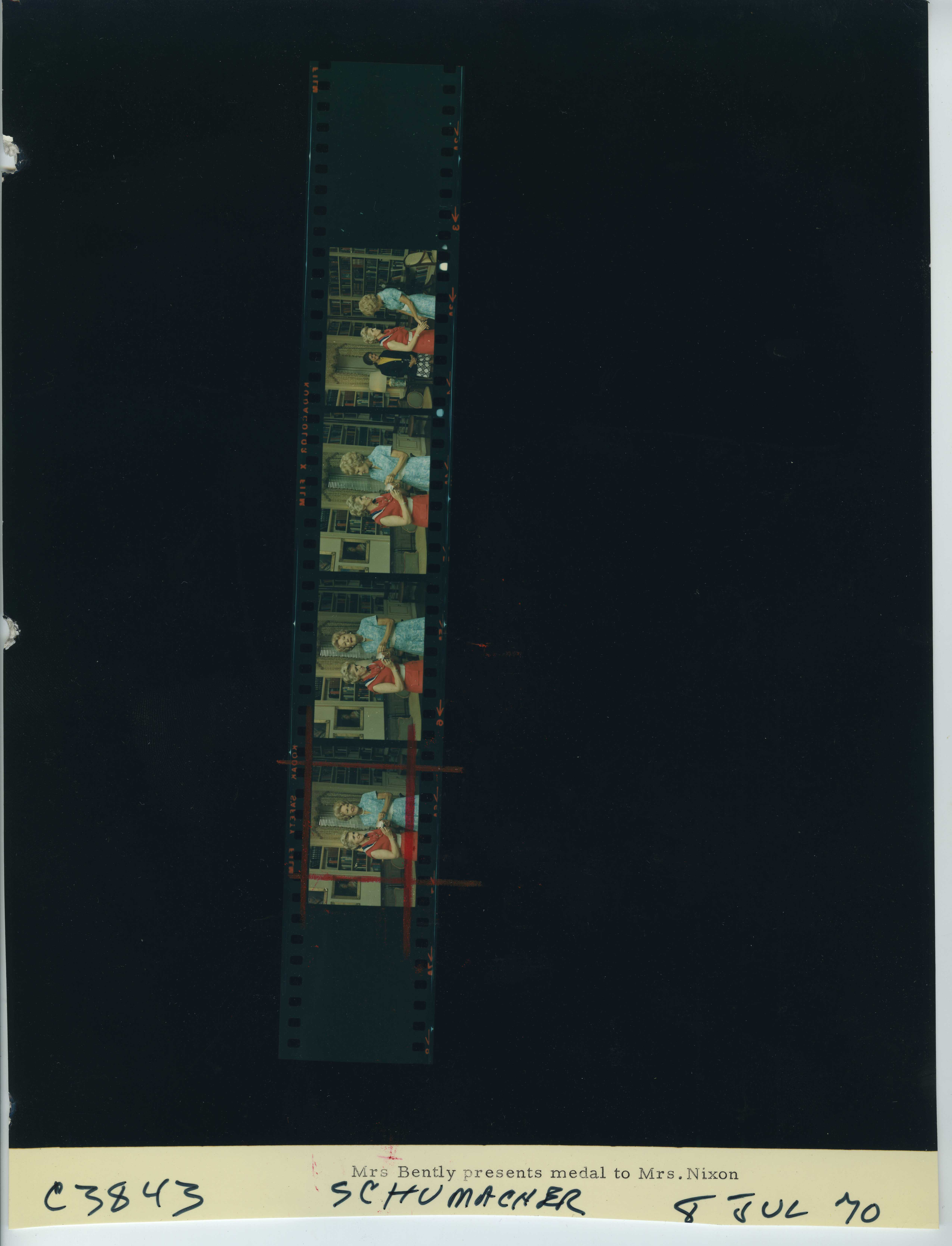 - Frame(s): WHPO-3843-04-07, Mrs. Helen Bentley, Chairman, Federal Maritime Commission presenting an award medal to Pat Nixon. 7/8/1970, Washington, D.C. White House, Library. Pat Nixon, Mrs. Bentley.