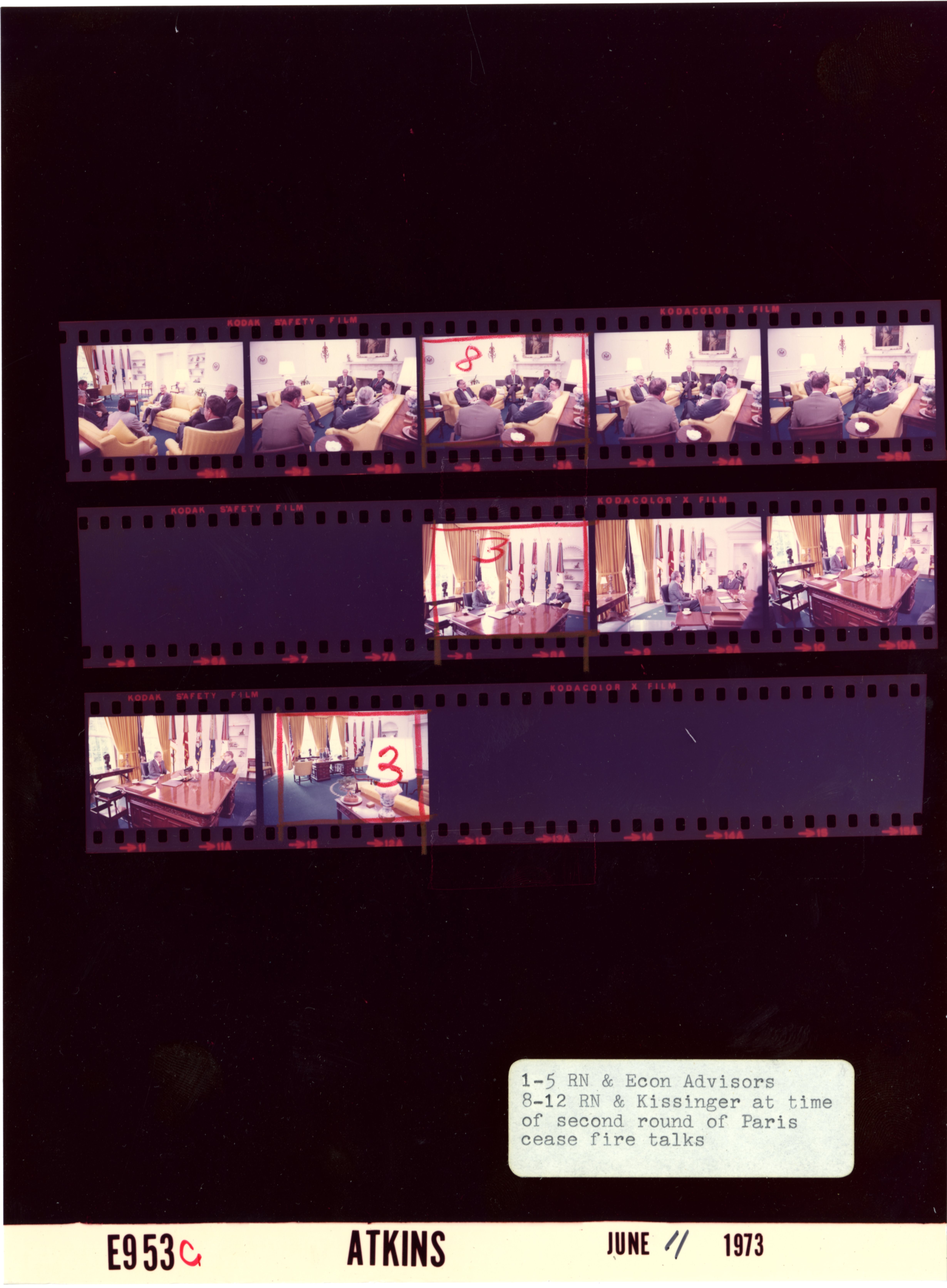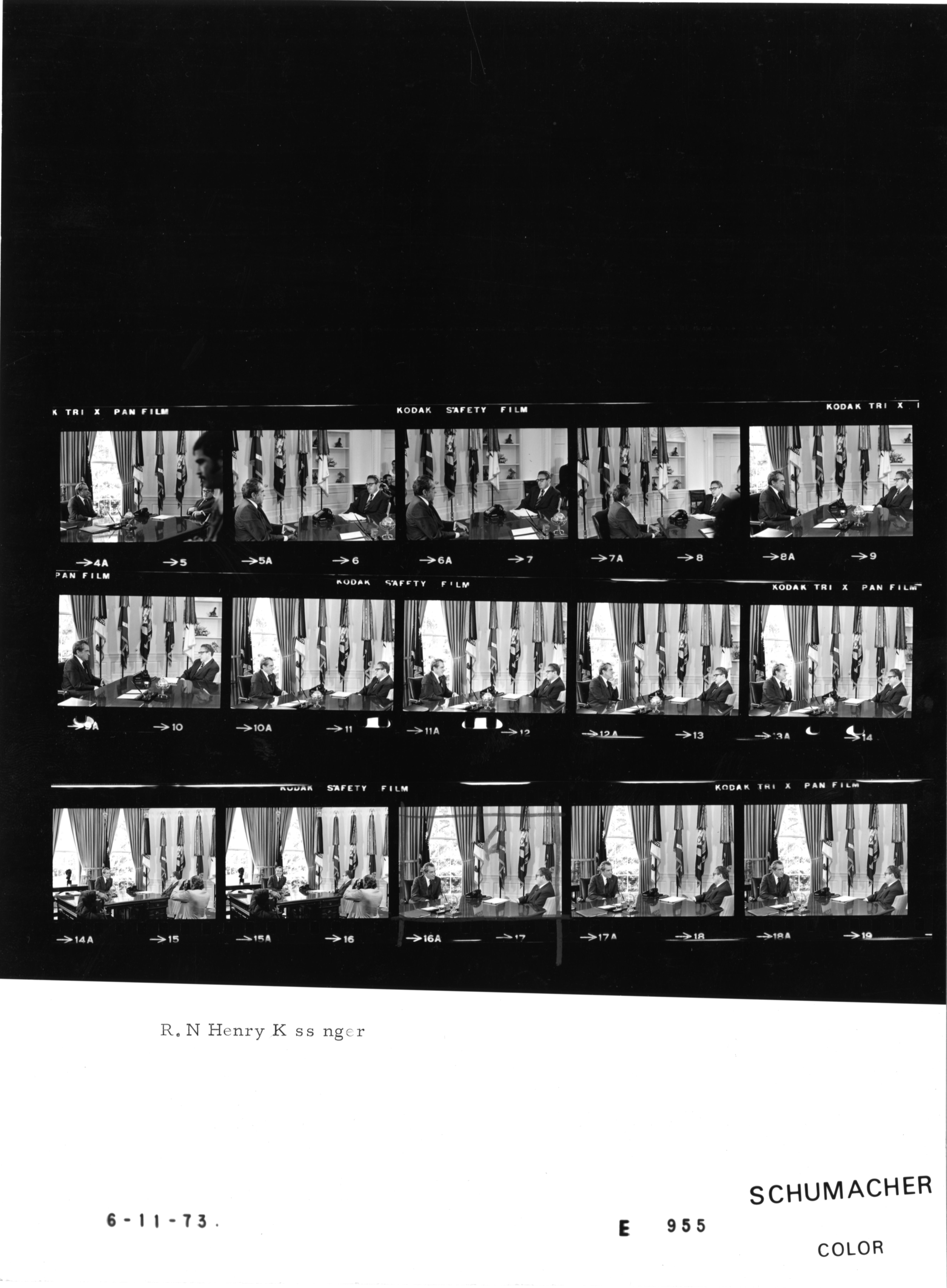 - Frame(s): WHPO-E0955-, President Nixon meeting with Henry Kissinger. 6/11/1973, Washington D.C. White House, Oval Office. President Nixon, Henry Kissinger.
