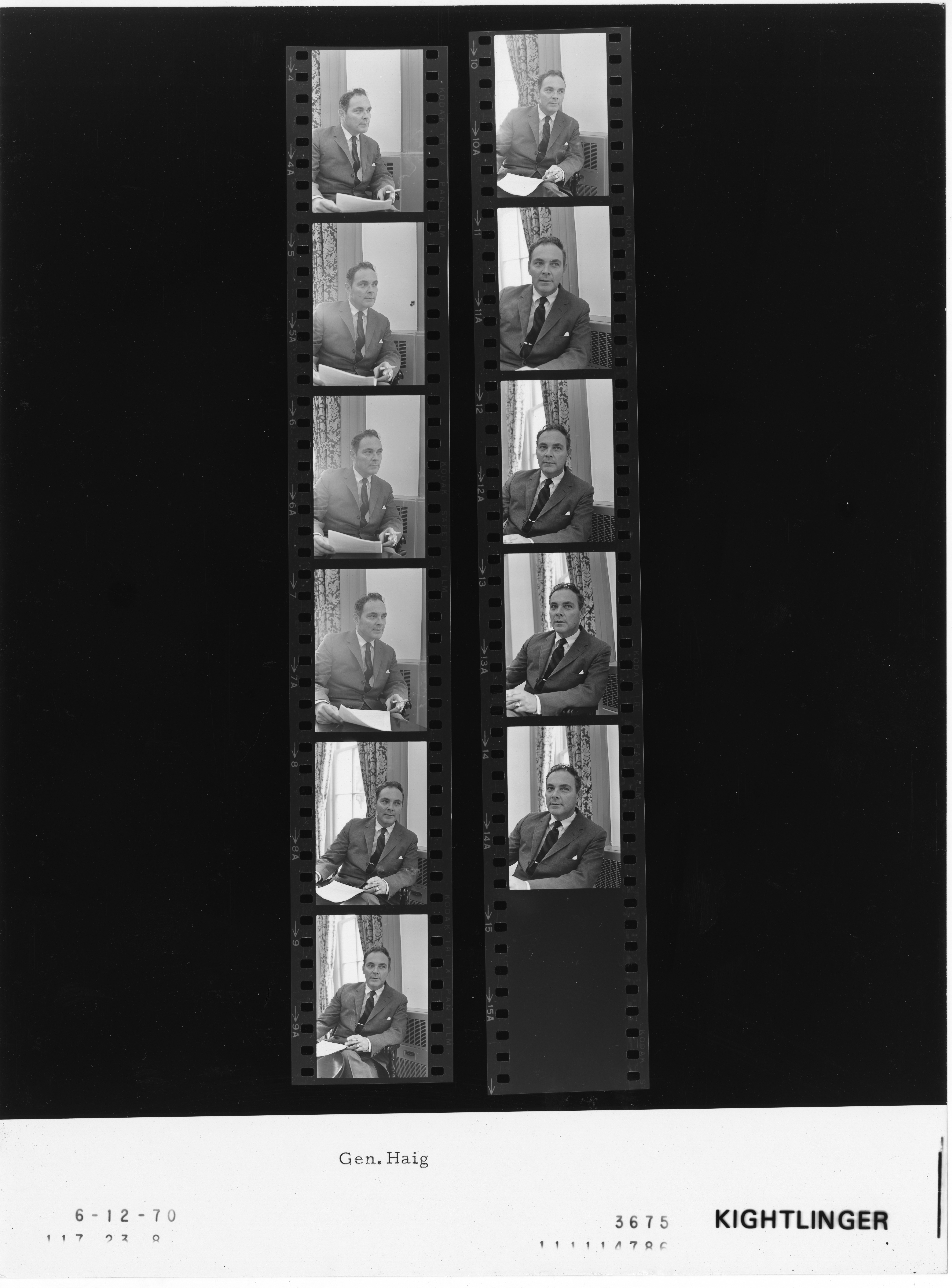 - Frame(s): WHPO-3675-04-14, Portrait study of General Haig. 6/12/1970, Unknown Unknown. Alexander Haig.