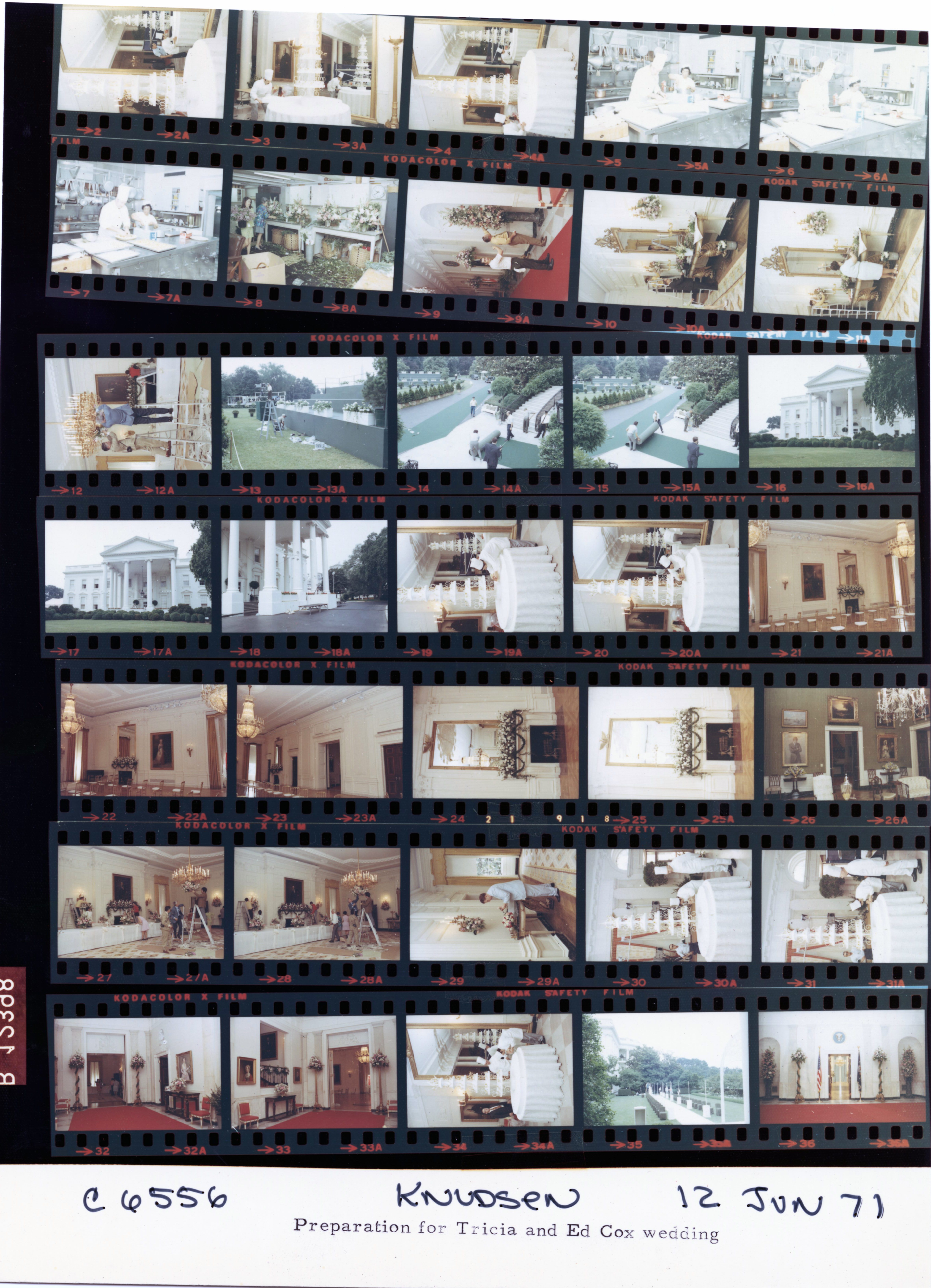 - Frame(s): WHPO-6558-, Decorated White House rooms prepared for the Tricia Nixon and Ed Cox wedding reception guests. 6/12/1971, Washington, D.C. various rooms, kitchen, White House. White House chefs, press corps reporters and photographers.