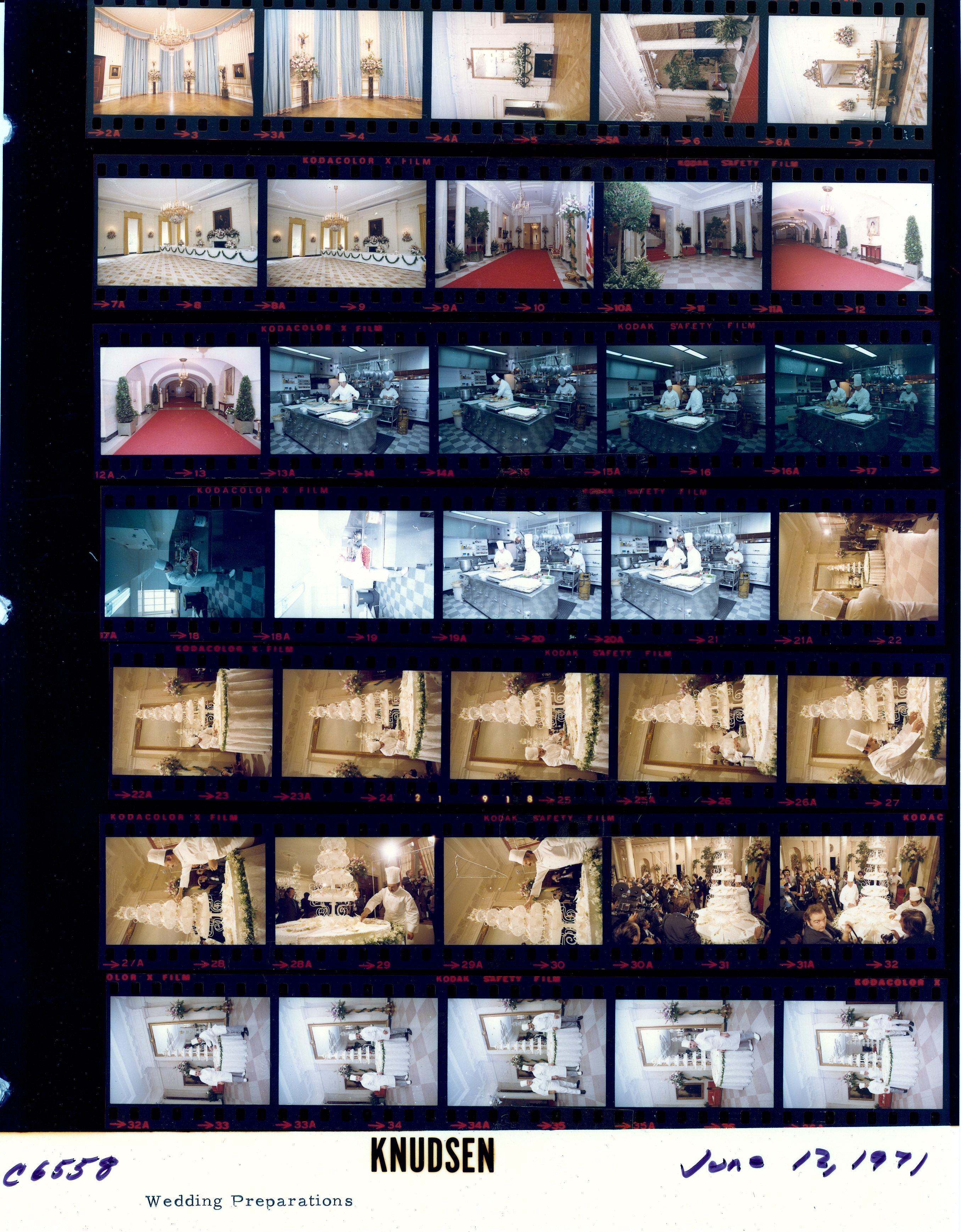 - Frame(s): WHPO-6556-02-12, 19-34, 36, Tricia Nixon and Ed Cox Wedding preparations. 6/12/1971, Washington, D.C. White House,. chef, unidentified persons.