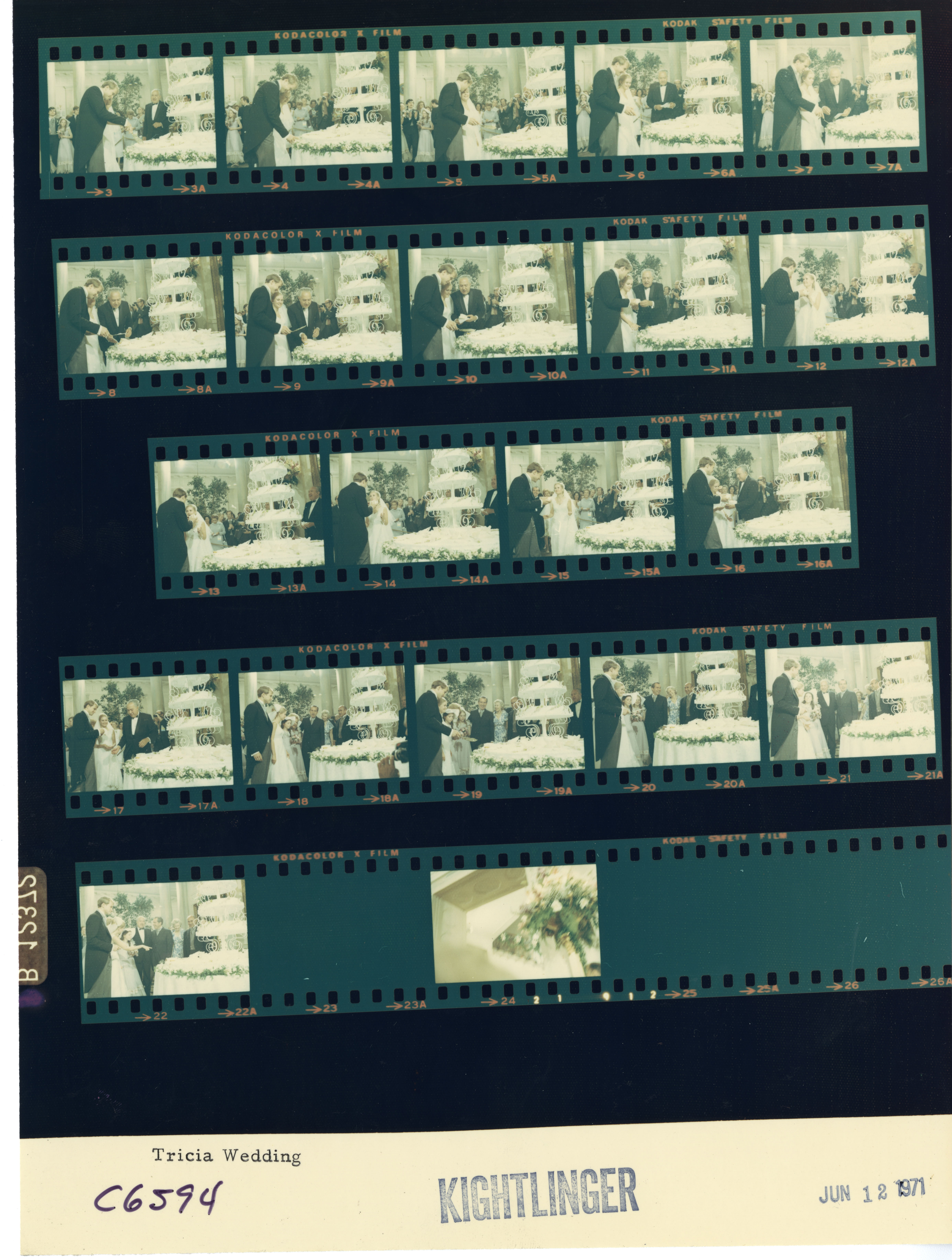 - Frame(s): WHPO-6599-02-14, Tricia Nixon Cox , Ed Cox, President Nixon, and others standing around the wedding cake. 6/12/1971, Washington, D.C. White House, East Room. Tricia Nixon Cox, Ed Cox, President Nixon, wedding party members, guests, reporters.