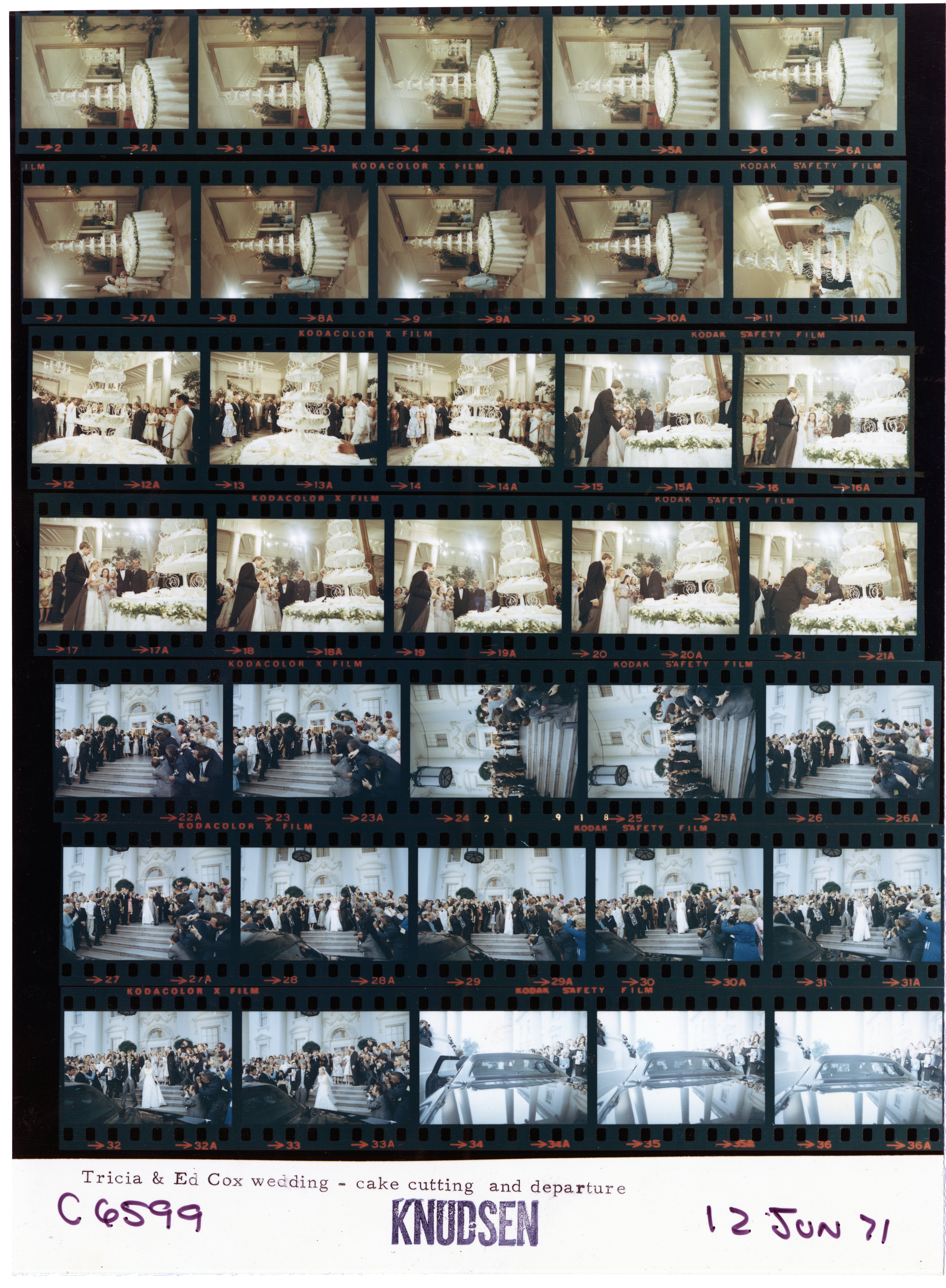 - Frame(s): WHPO-6599-15-21, Tricia Nixon Cox and Ed Cox cutting the wedding cake. 6/12/1971, Washington, D.C. White House, East Room. Tricia Nixon Cox, Ed Cox, President Nixon, wedding party members, guests, reporters.