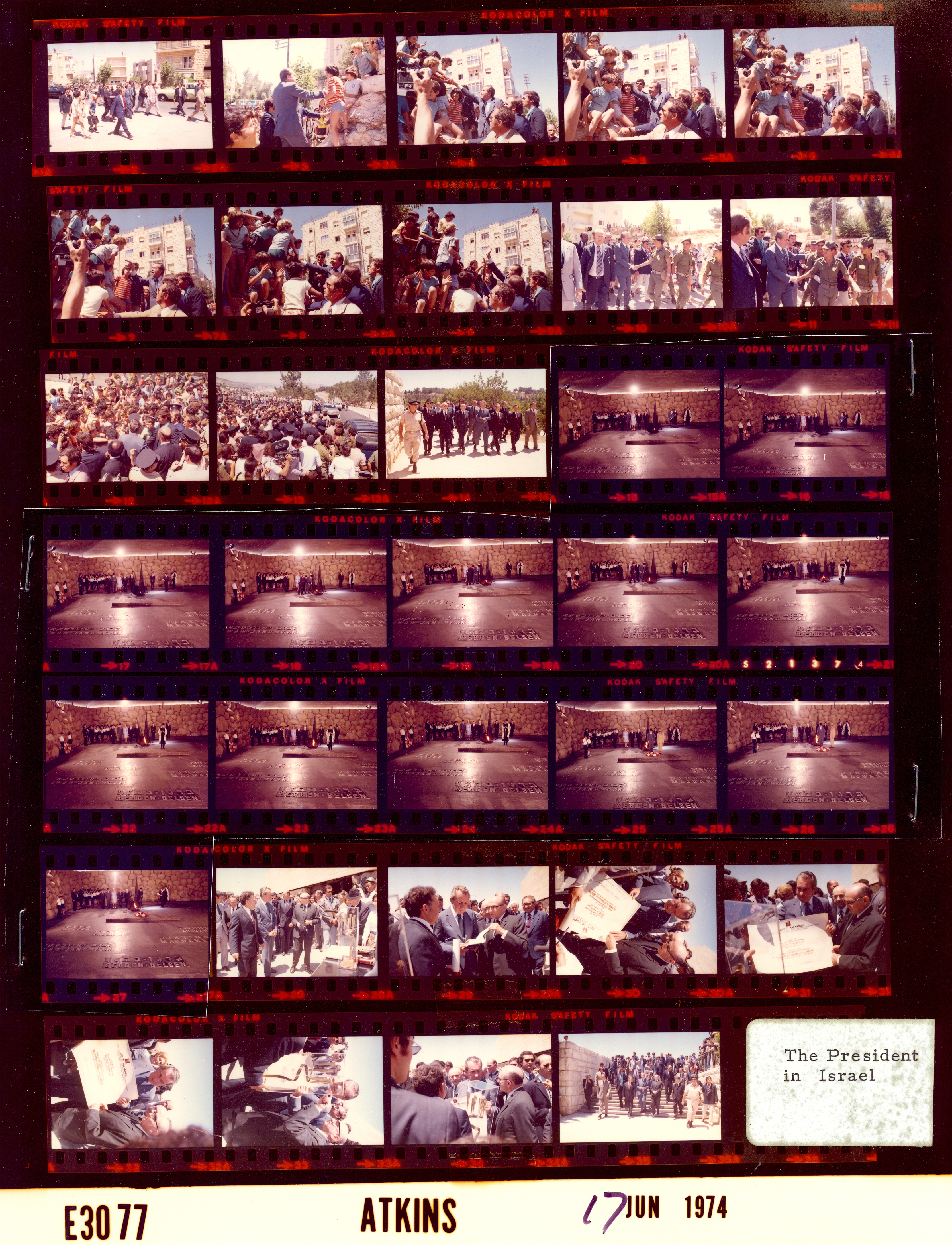 - Frame(s): WHPO-E3077-02-09, President Nixon greeting people gathered on the street during his visit to Israel. 6/17/1974, Jerusalem, Israel near the Yad Vashem Hall of Remembrance. President Nixon, unidentified Israili citizens and young people.