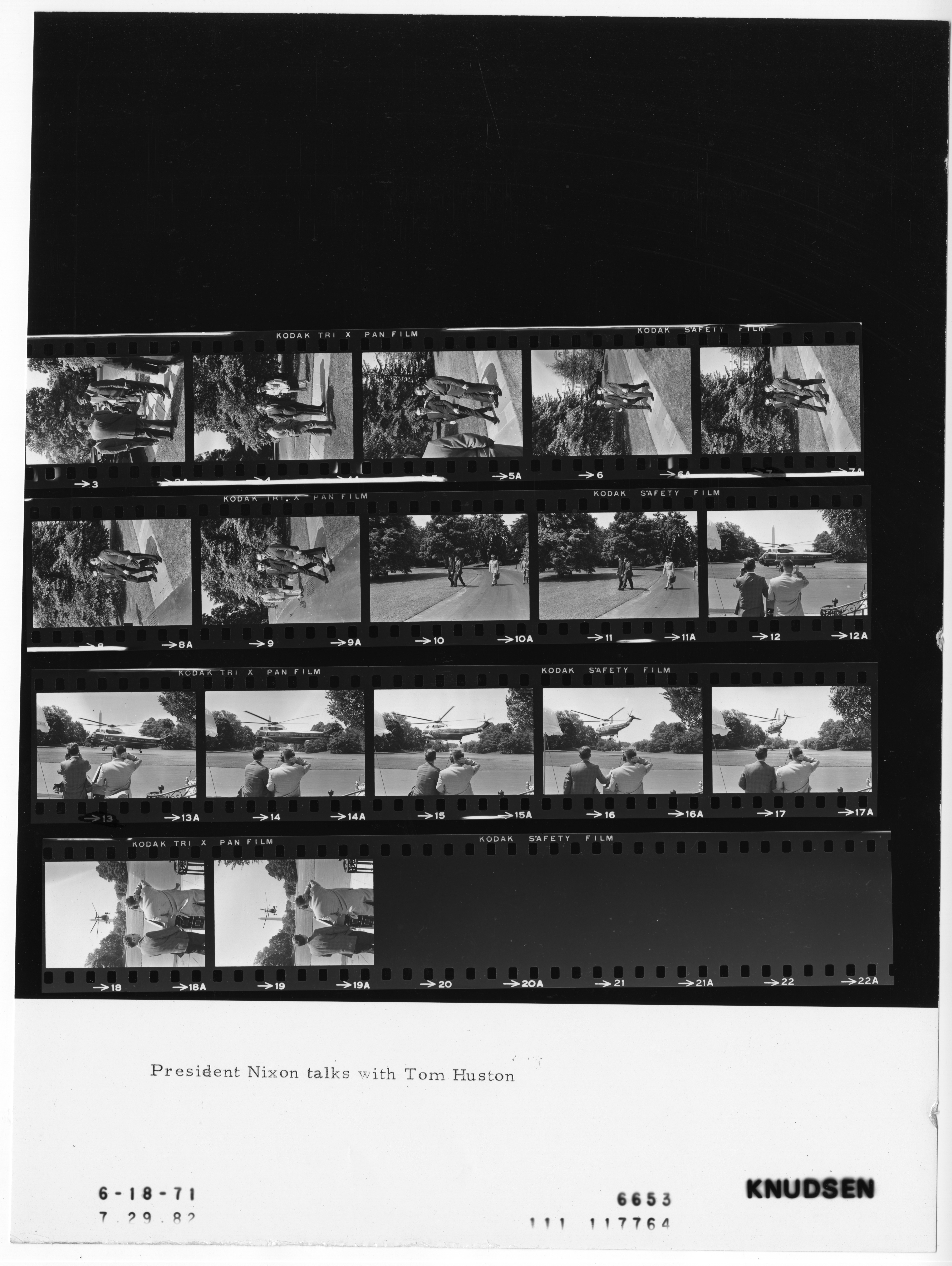 - Frame(s): WHPO-6653-05-11, President Nixon walking with Tom Huston. 6/18/1971, Washington, D.C. White House, South Grounds. President Nixon, Leopold Senghor, Cheikh Ibrahima Fall, Henry Kissinger, Tom Huston, military aide, unidentified men.