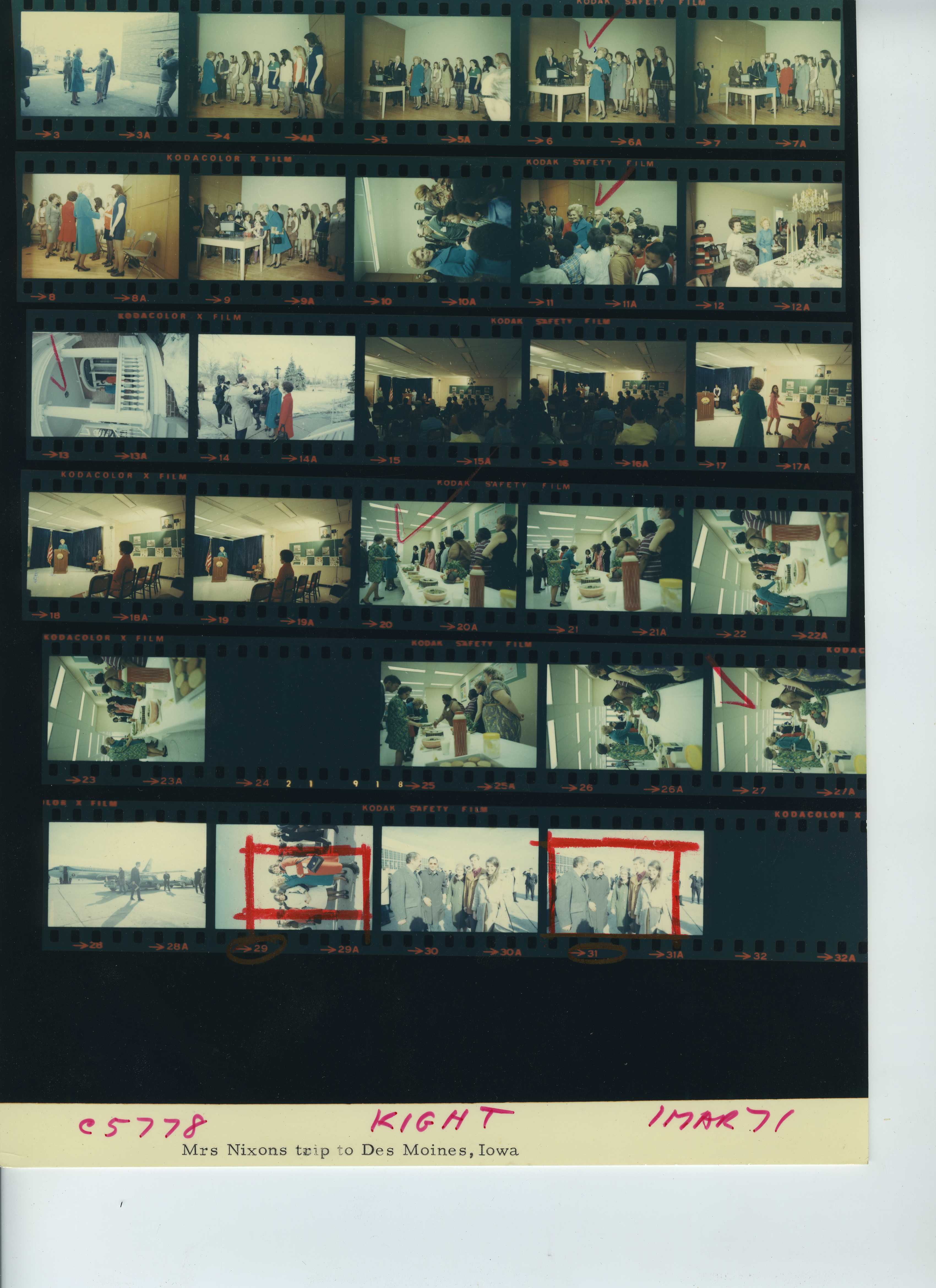 - Frame(s): WHPO-5778-03-27, Pat Nixon at various locations. 3/1/1971, Des Moines, Iowa unknown location. Pat Nixon.