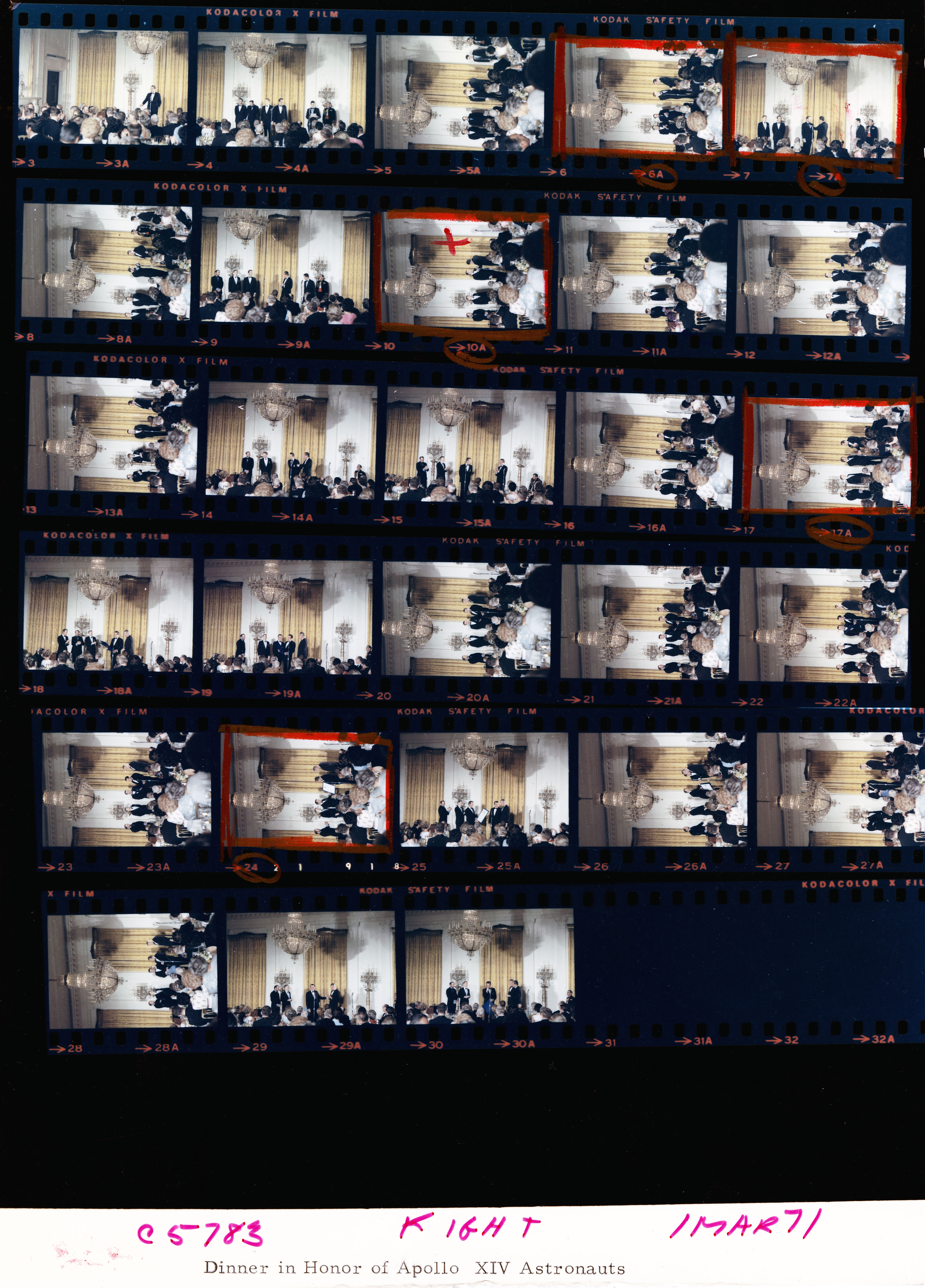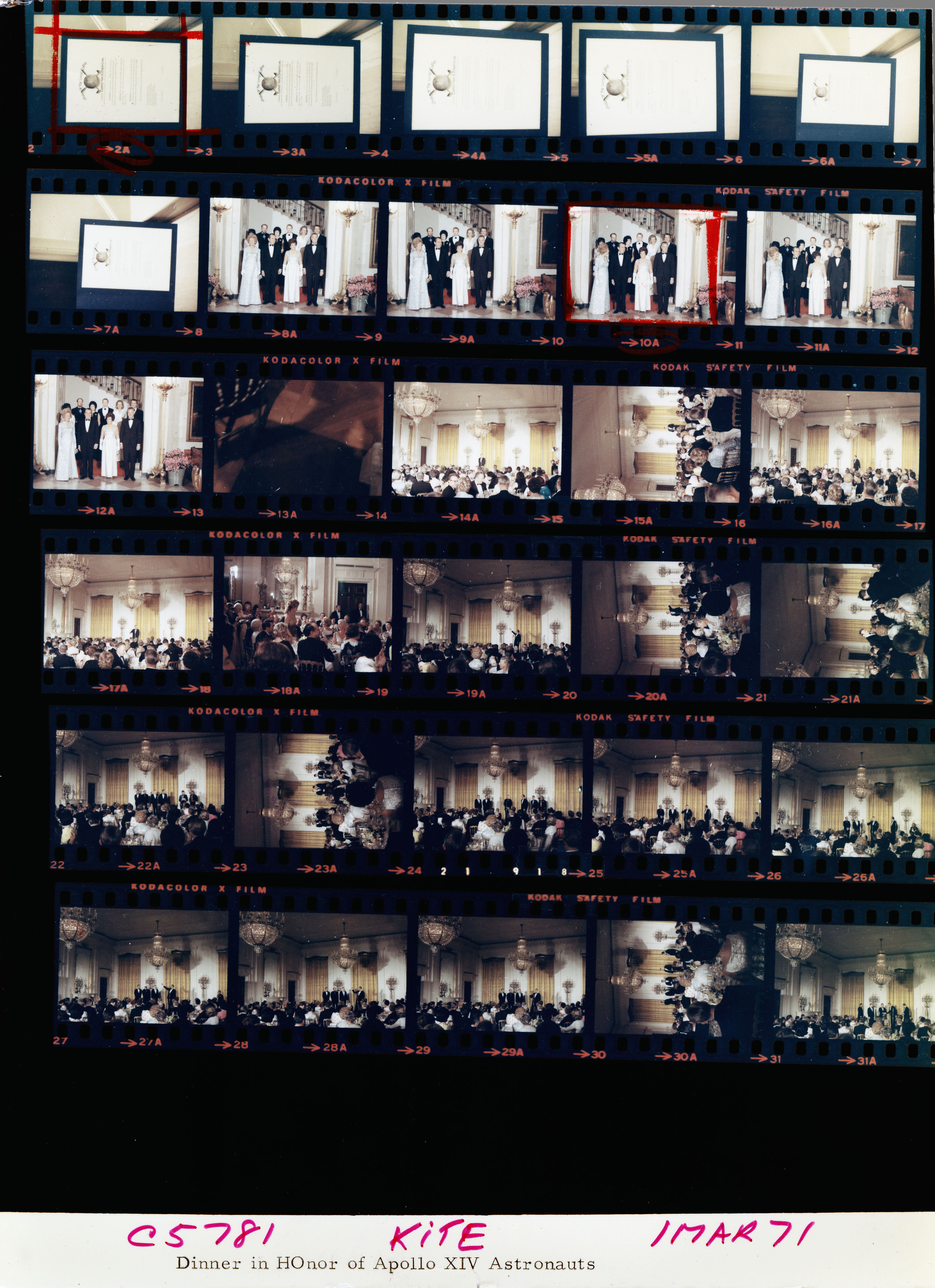 - Frame(s): WHPO-5781-14A-31A, President Nixon and the Apollo 14 astronauts on a speakers platform at the dinner in honor of the astronauts. 3/1/1971, Washington, D.C. White House, East Room. President Nixon, Alan Shepard, Edgar Mitchell, Stuart Roosa, guests.