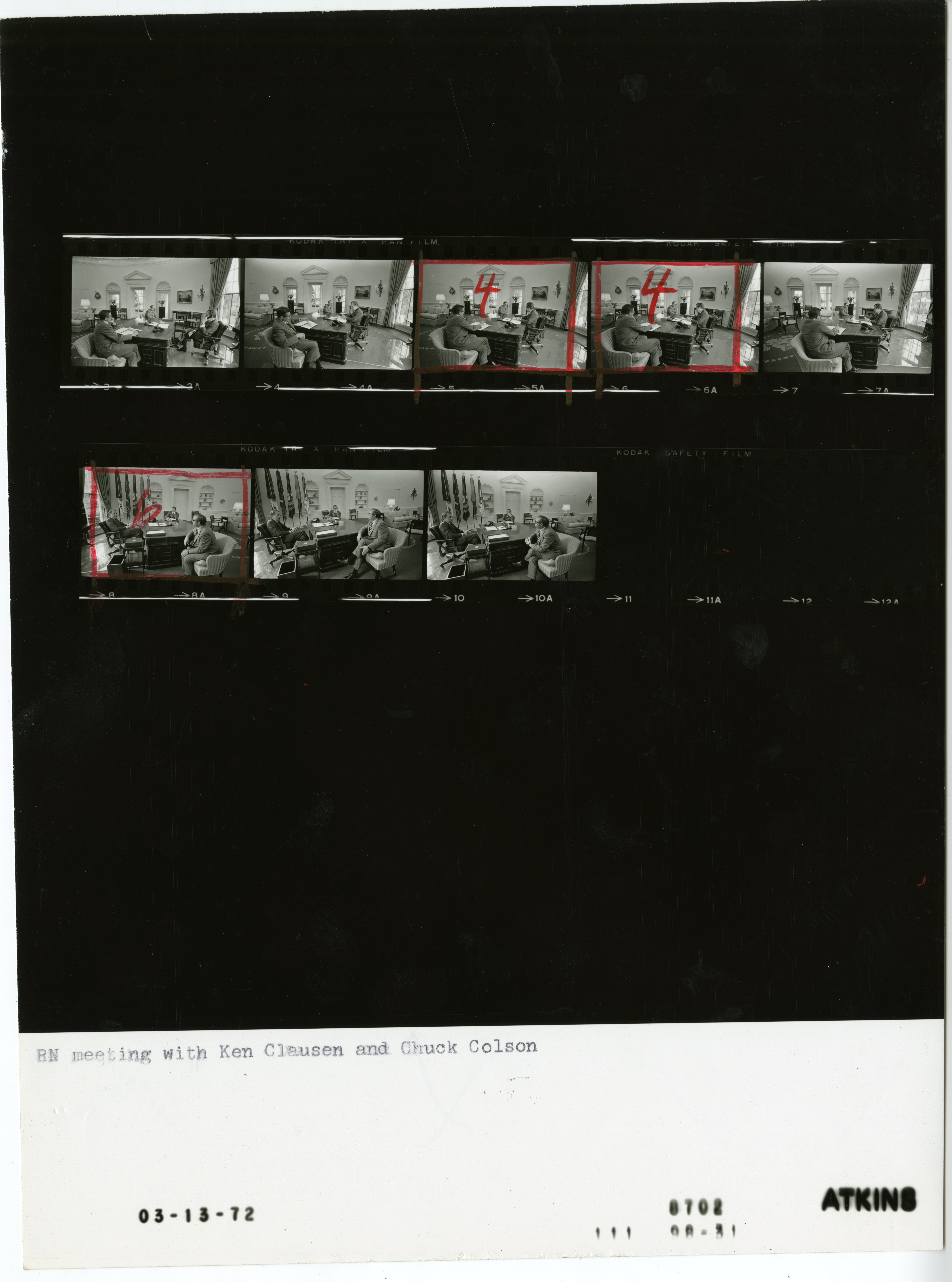 - Frame(s): WHPO-8702-, President Nixon seated at his desk during a meeting with Charles Colson and Ken Clawson. 3/13/1972, Washington, D.C. White House, Oval Office. President Nixon, Charles W. Colson, Ken Clawson.