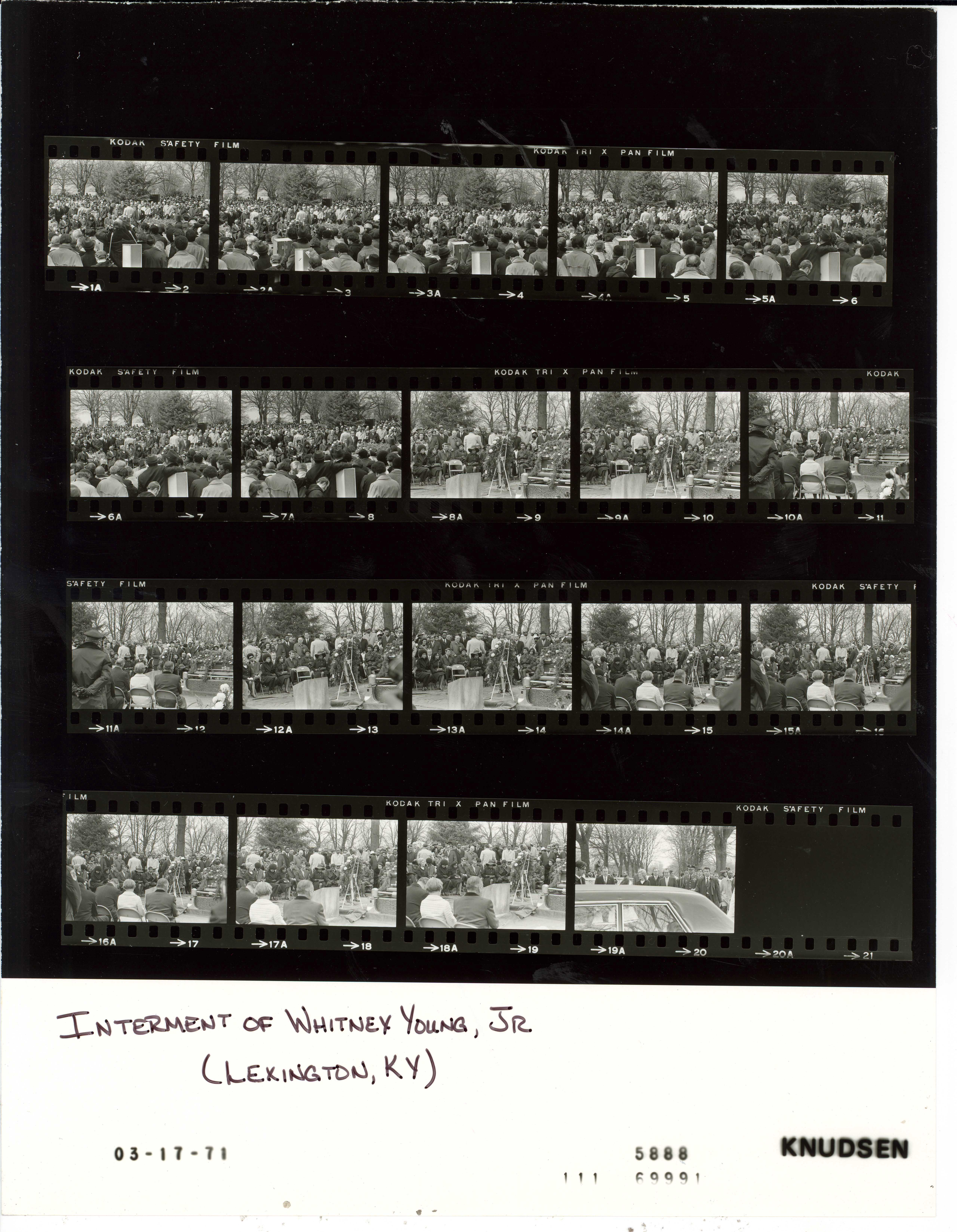 - Frame(s): WHPO-5888-01A-19A, Burial interment service for Whitney Young, Jr. 3/17/1971, Lexington, Kentucky Greenwood Cemetery. President Nixon, Pat Nixon, funeral mourners.