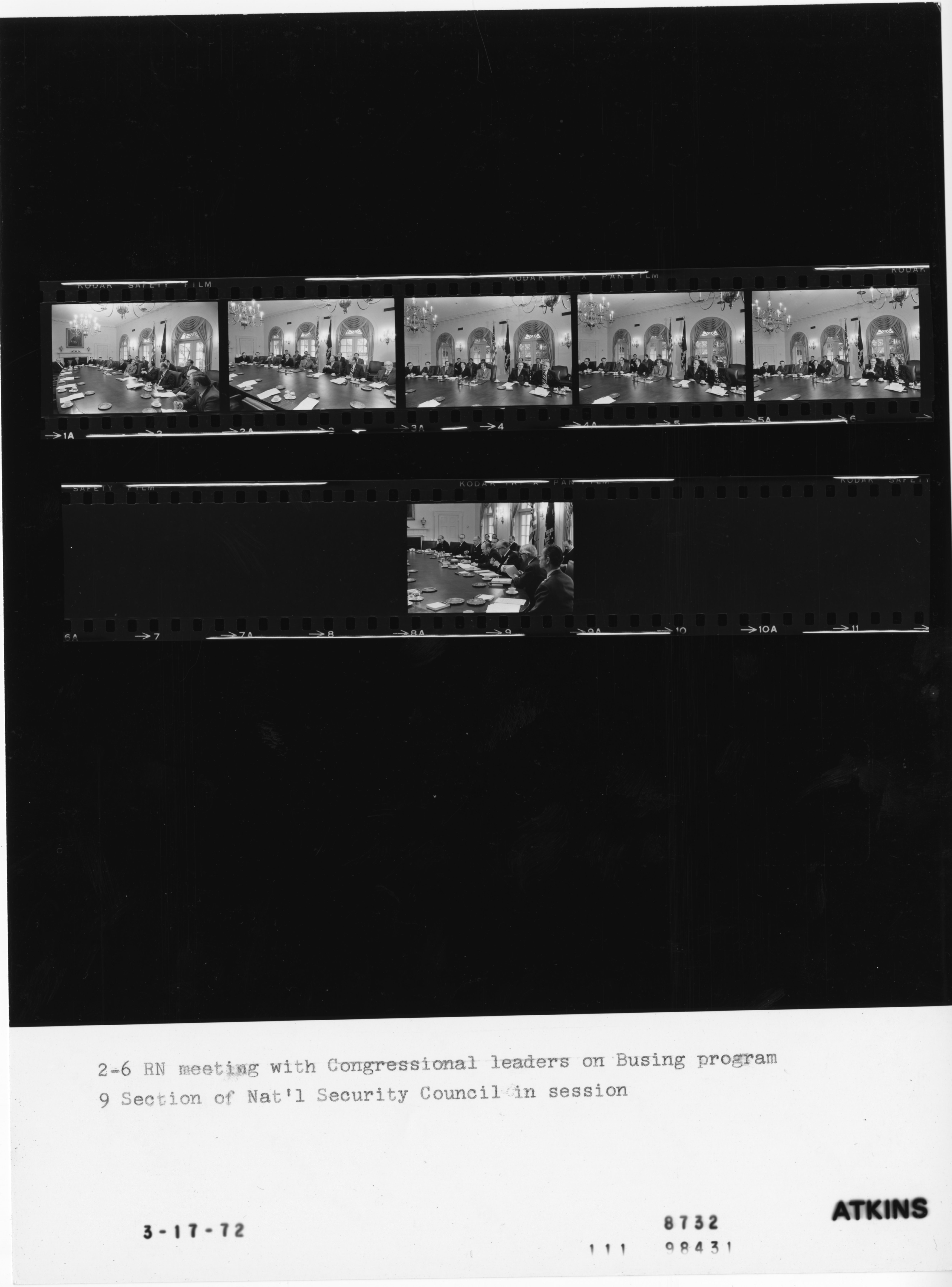 - Frame(s): WHPO-8732-06, President Nixon attending a meeting of bipartisan Congressional leaders discussing busing legislation. 3/17/1972, Washington, D.C. White House, Cabinet Room. President Nixon,Representatives Hugh Scott, Carl Albert, Mike Mansfield, Gerald Ford, Robert Byrd, unidentified officials, possibly Pat Buchanan in background.