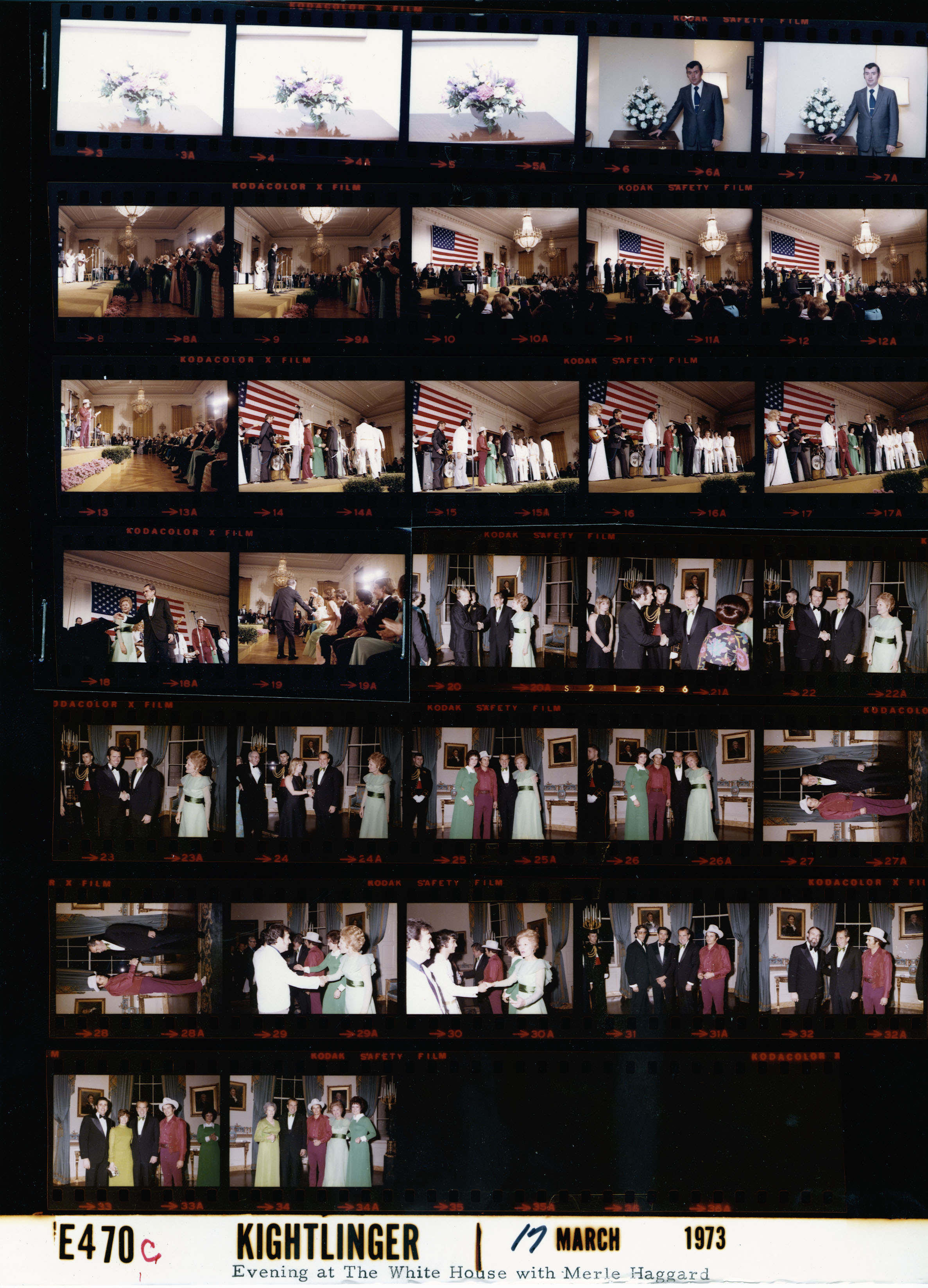 - Frame(s): WHPO-E0470-27, President Nixon posing for a portrait with country western singer Merle Haggard during a reception in the Blue Room on St. Patrick's Day. 3/17/1973, Washington, D.C. White House, Blue Room. President Nixon, Merle Haggard.