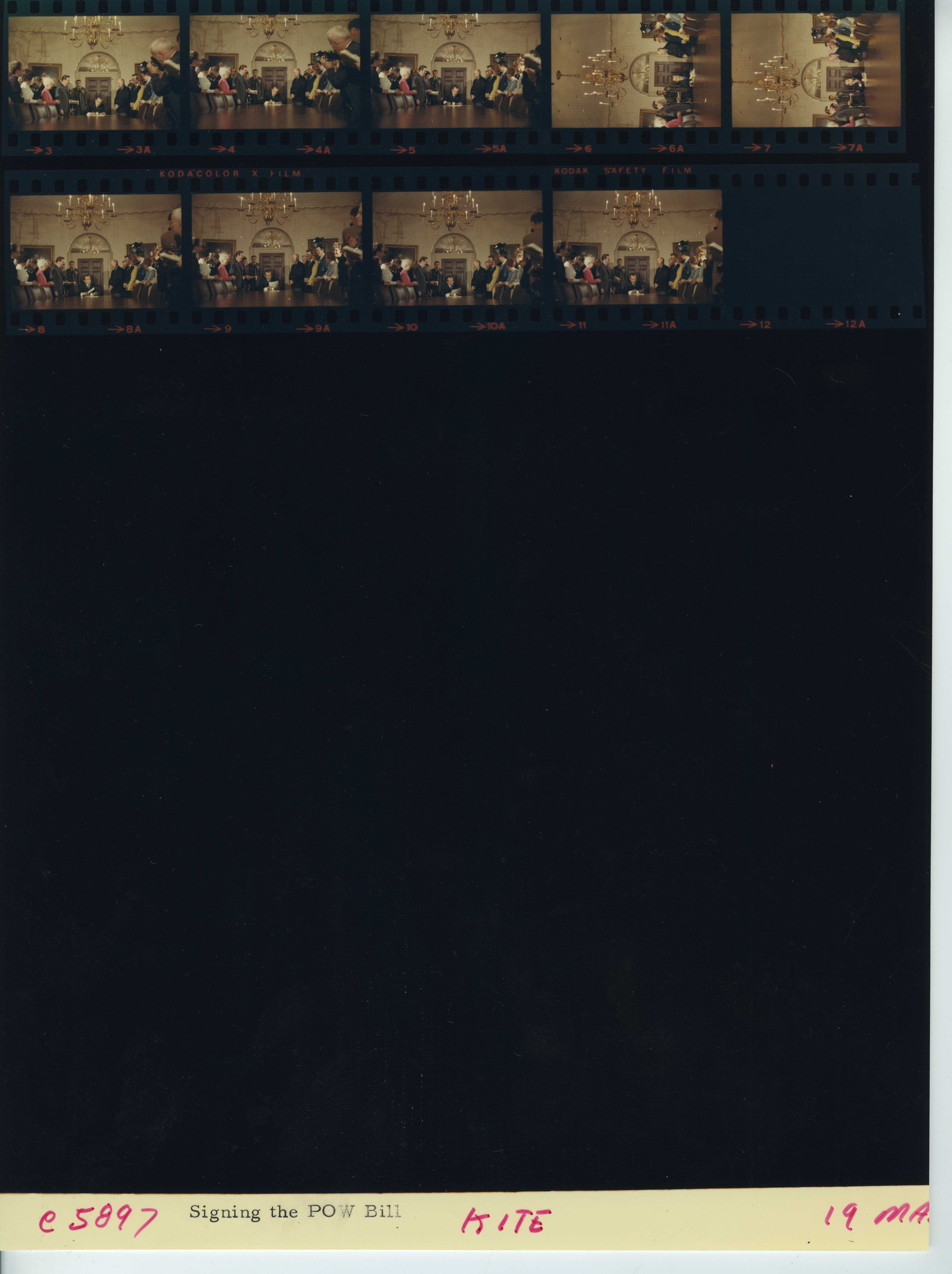 - Frame(s): WHPO-5897-04A, President Nixon signing H.J. Res. 16, National Week of Concern for Prisoners of War/Missing in Action (Vietnam Prisoner of War, Missing in Action), while officials and POW/MIA family members look on. 3/19/1971, Washington, D.C. White House, Cabinet Room. President Nixon, Bill Brock, Rep. Roger Zion, John Myers, Mrs. Richard Morin, Iris Powers, officials, guests.