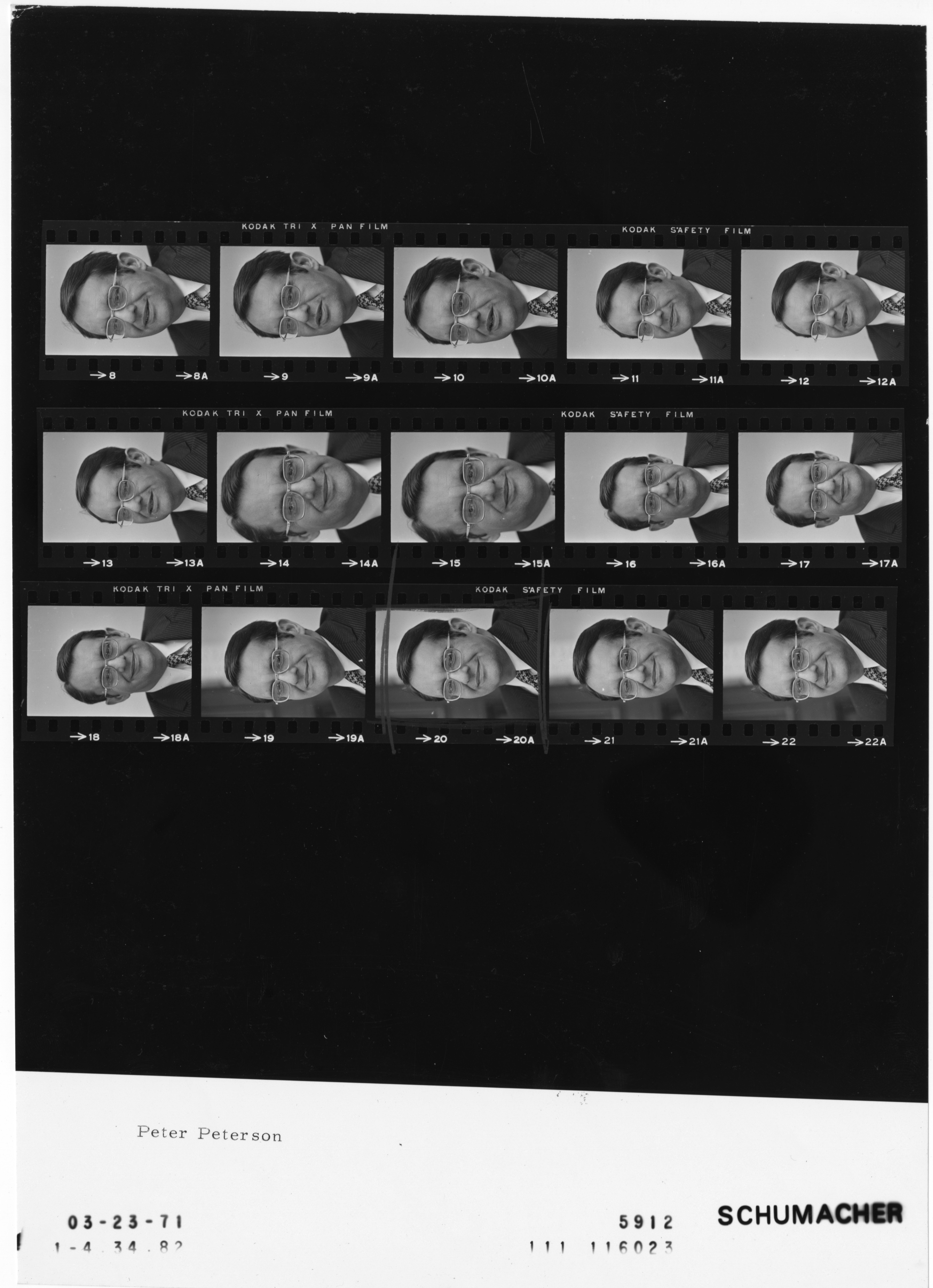 - Frame(s): WHPO-5912-22, Closeup portrait study of Peter Peterson. 3/23/1971, Washington, D.C. unknown. Peter Peterson.