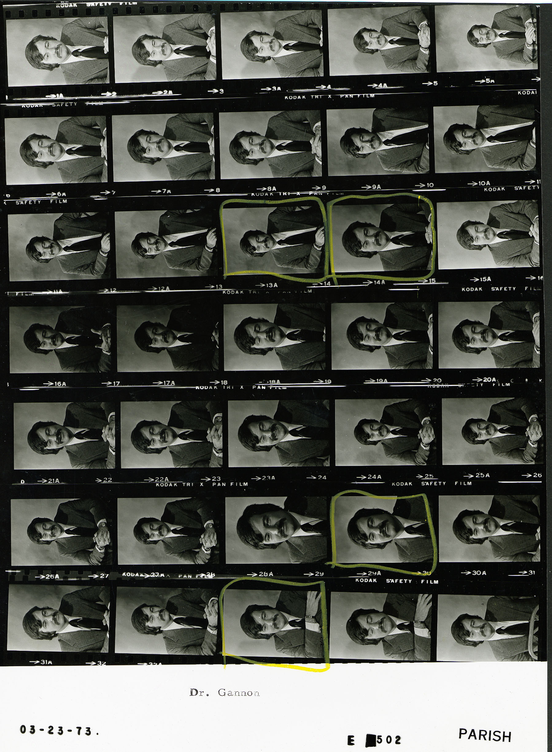 - Frame(s): WHPO-E0502-, Portraits of White House Fellow Dr. Frank Gannon. 3/23/1973, Washington, D.C. White House, Map Room. Frank Gannon.