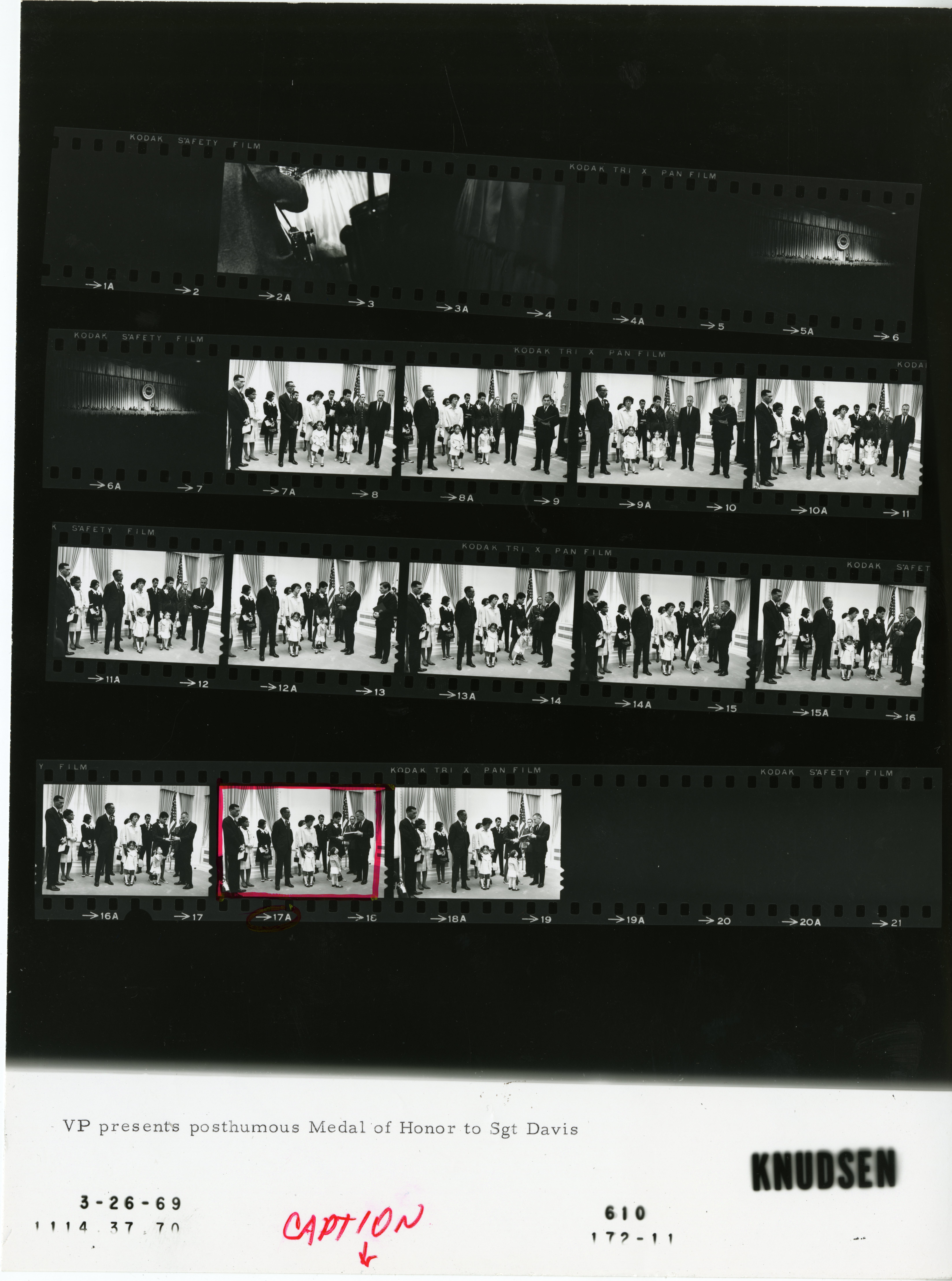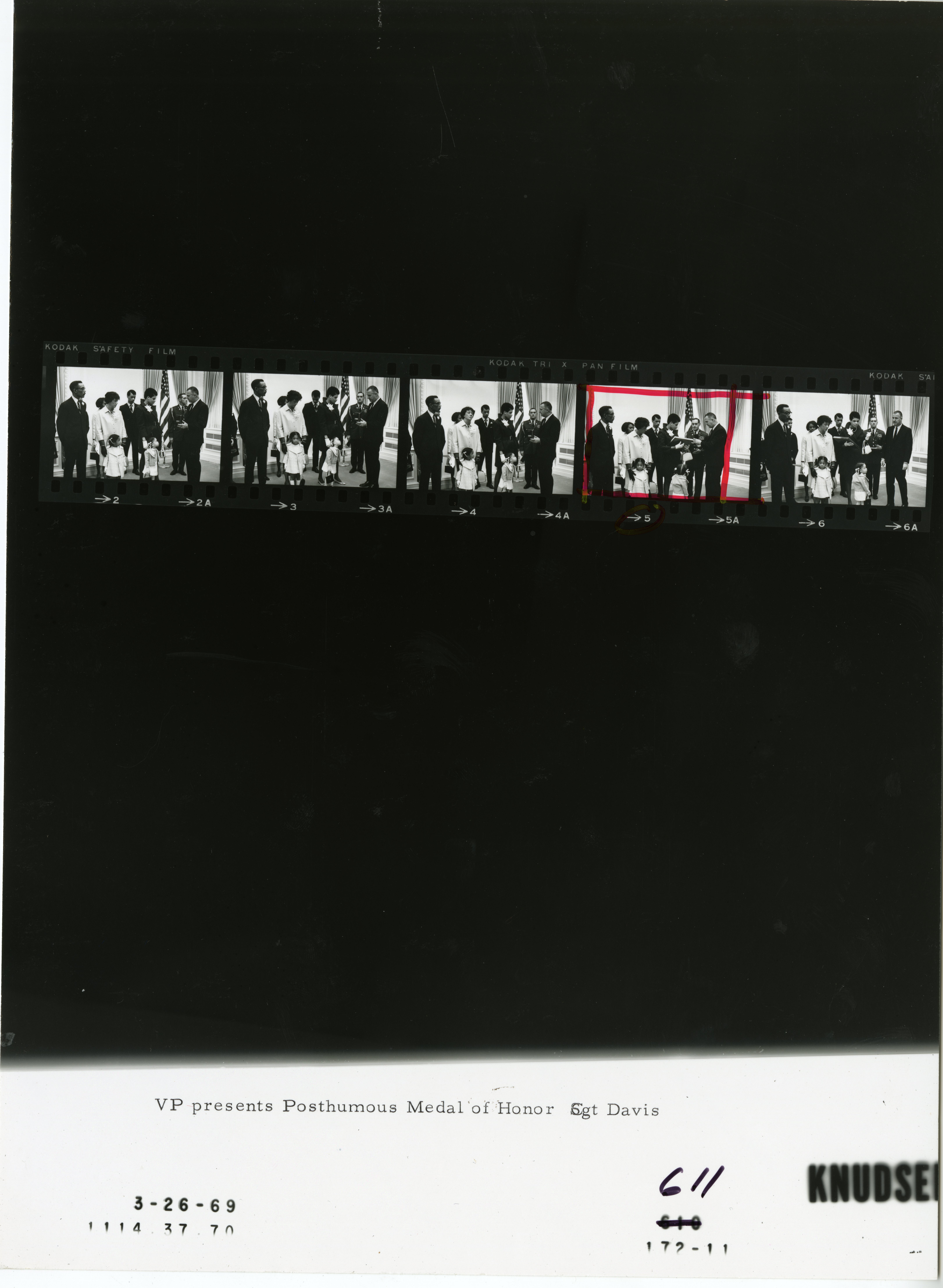 - Frame(s): WHPO-0610-, Vice President Agnew presenting a posthumous Medal of Honor to the family of Sergeant Rodney M. Davis of the United States Marine Corps. 3/26/1969, Washington, D.C. Spiro Agnew, unidentified Davis family members.