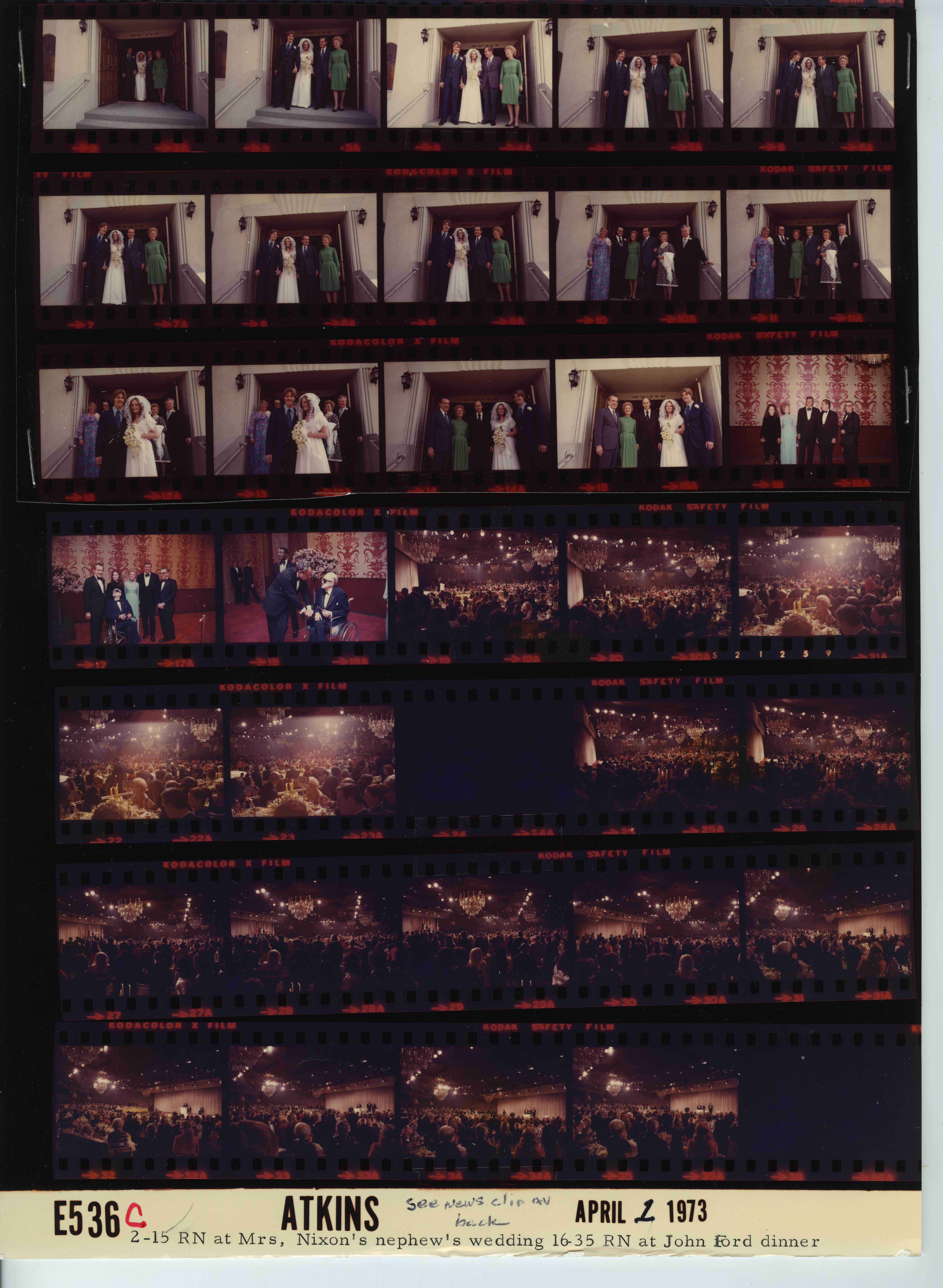 - Frame(s): WHPO-E0536-02-16, President Nixon and Pat Nixon attend wedding of Pat Nixon's nephew Richard Ryan to Cheri Fisher. 3/31/1973, Van Nuys, CA Foursquare Church. President Nixon, Pat Nixon, Richard Ryan, Cheri Fisher, unidentified family members.