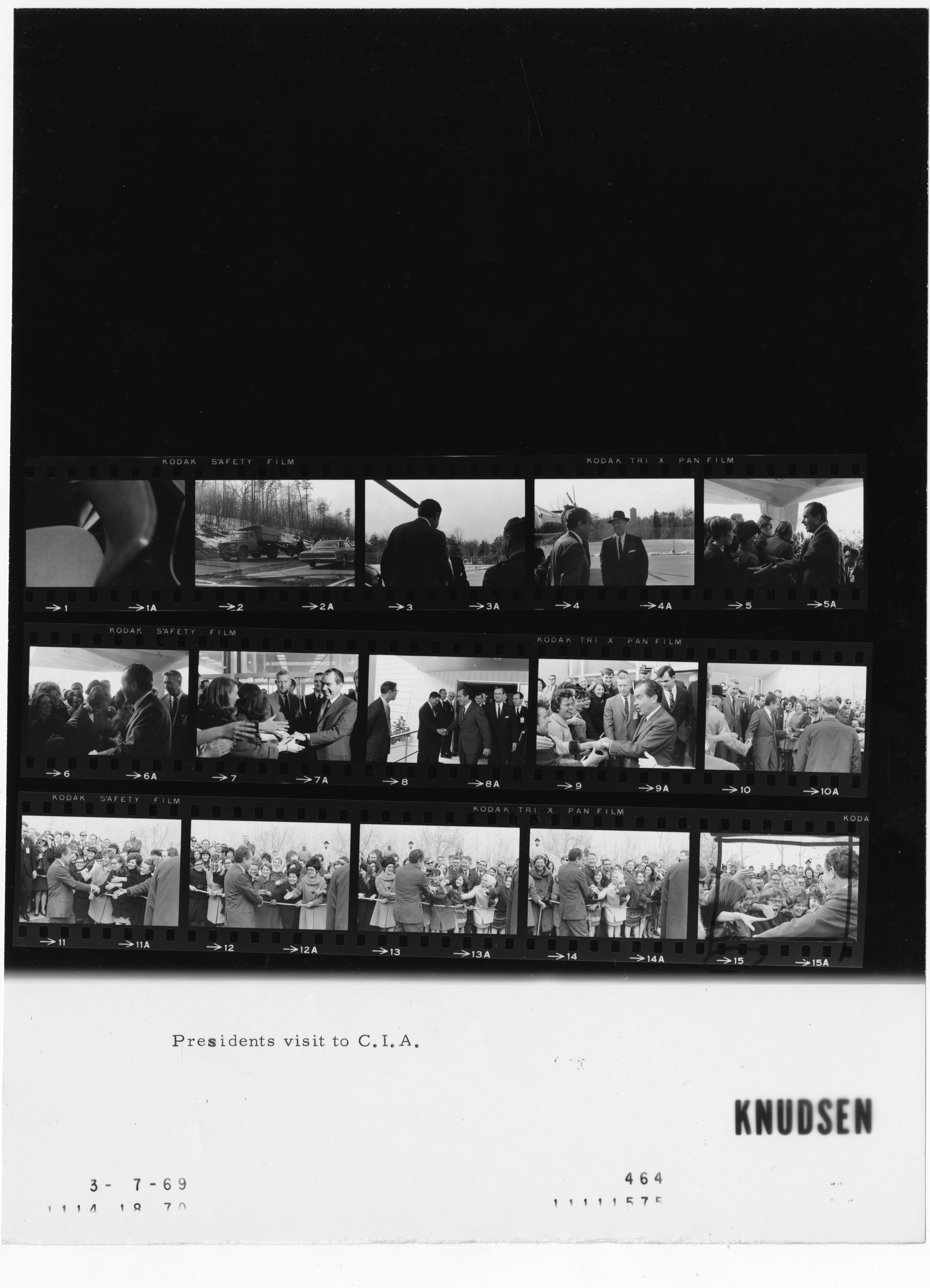 - Frame(s): WHPO-0464-, President Nixon arriving at the CIA headquarters. 3/7/1969, McLean, Virginia CIA Headquarters. President Nixon, unidentified CIA employees.