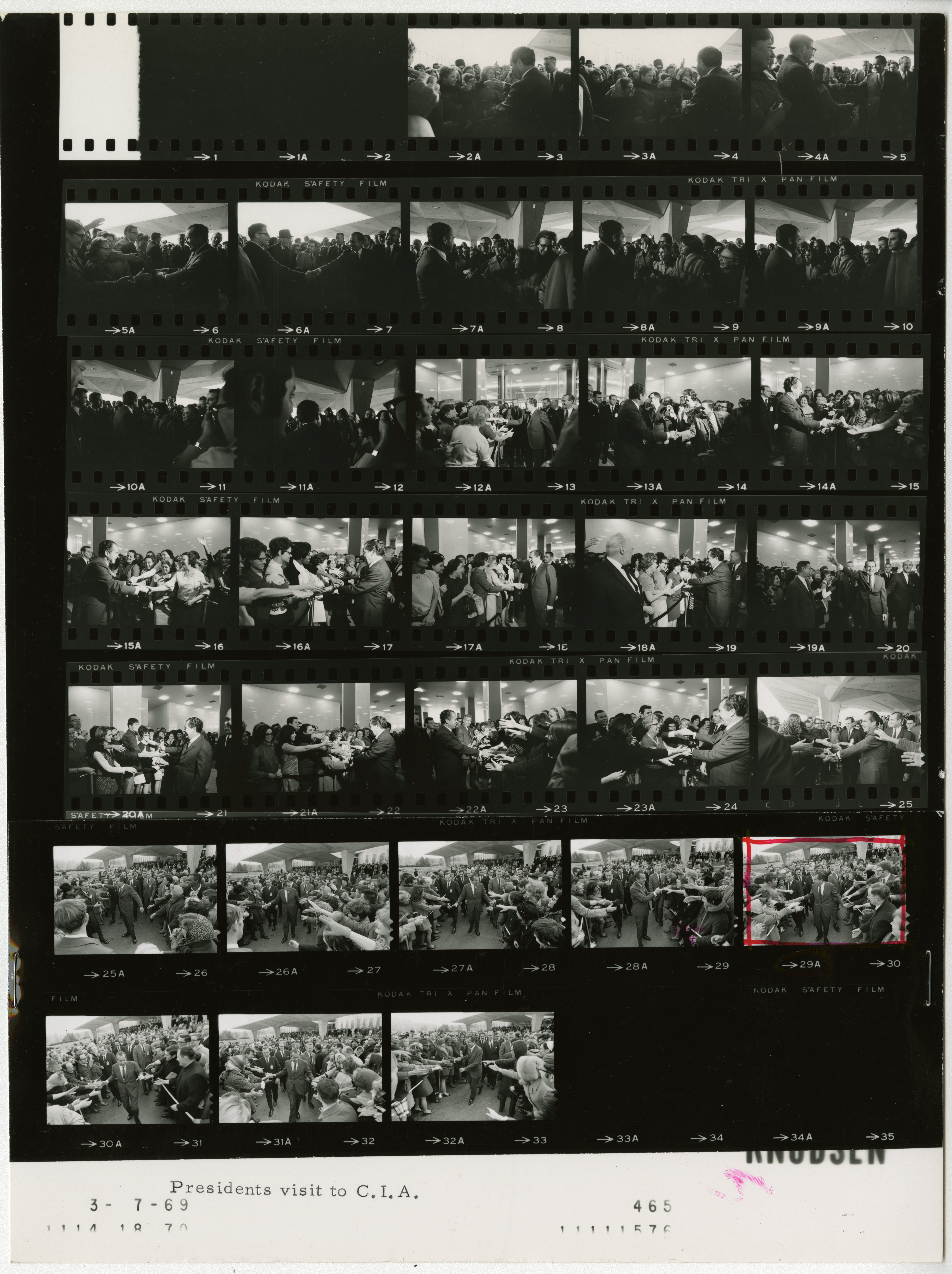 - Frame(s): WHPO-0465-29A, President Nixon greeting the crowd outside of the Central Intelligence Agency (CIA) headquarters. 3/7/1969, McLean, Virginia CIA Headquarters. President Nixon, unidentified CIA employees, crowd.