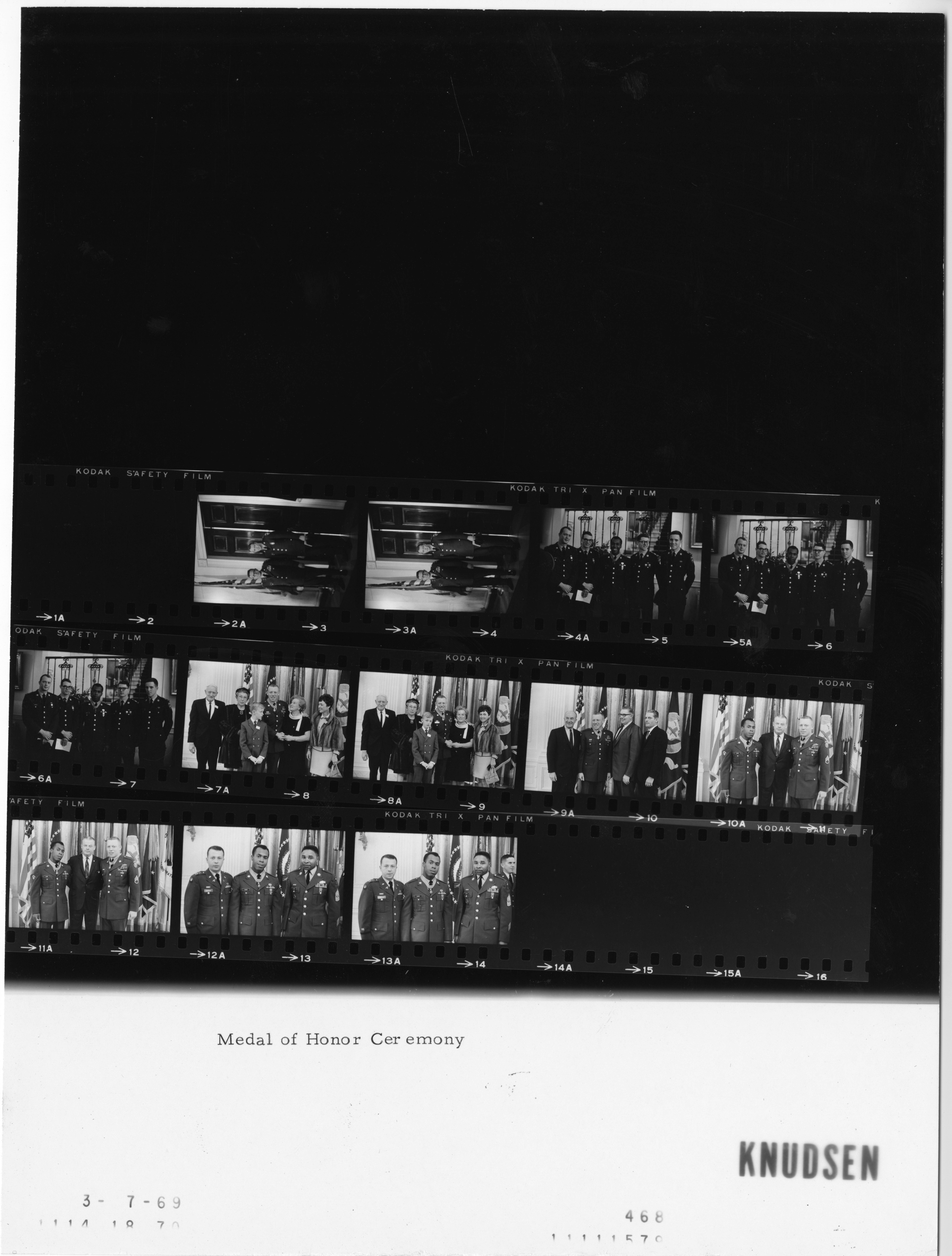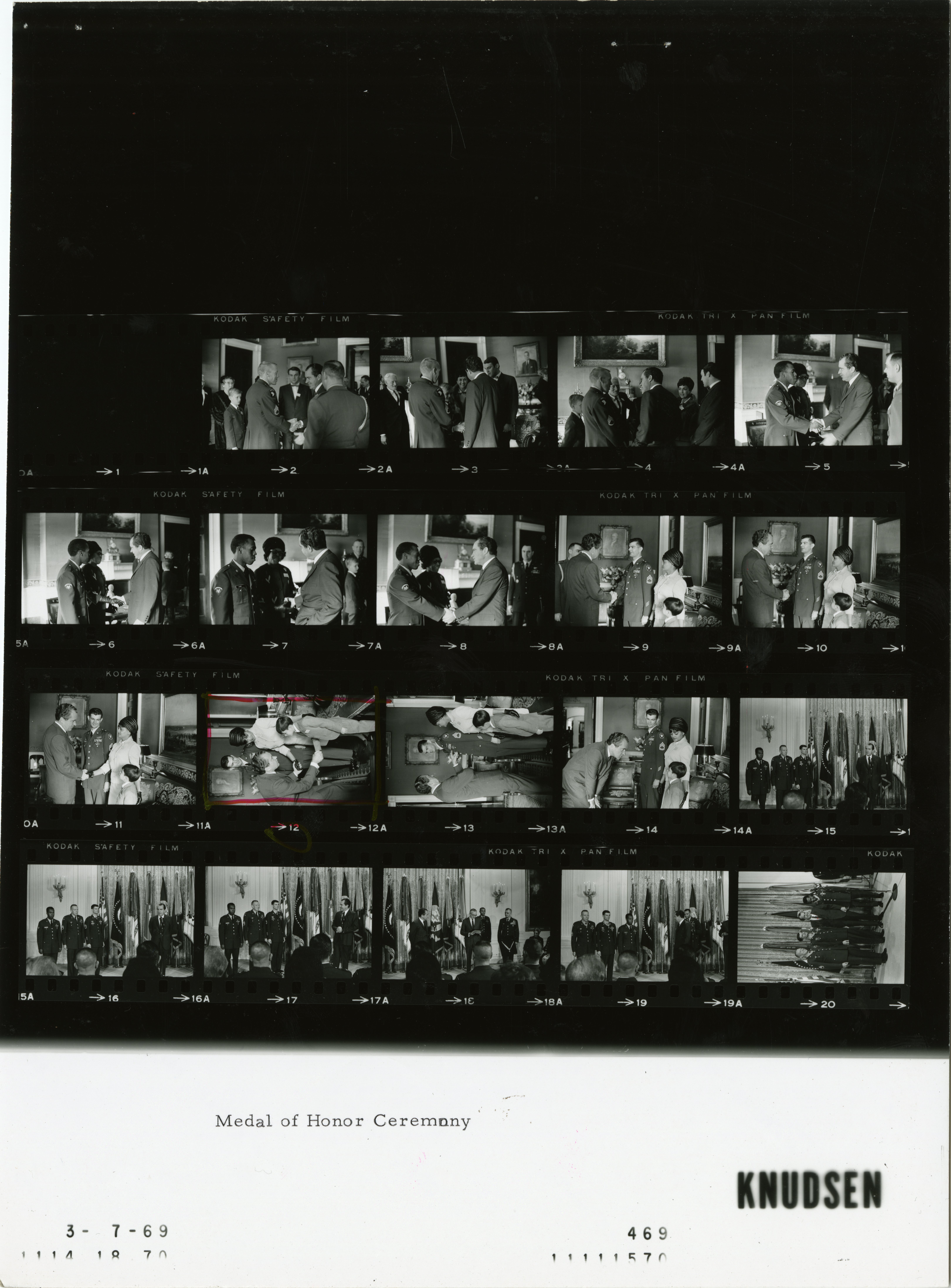 - Frame(s): WHPO-0469-32-34, President Nixon with Clarence Sasser and his family at Medal of Honor Ceremony. 3/7/1969, Washington, D.C. White House. President Nixon, Fred Zabitosky, Joe Hooper, Clarence Sasser, their respective families, William Westmoreland, unidentified Army personnel.