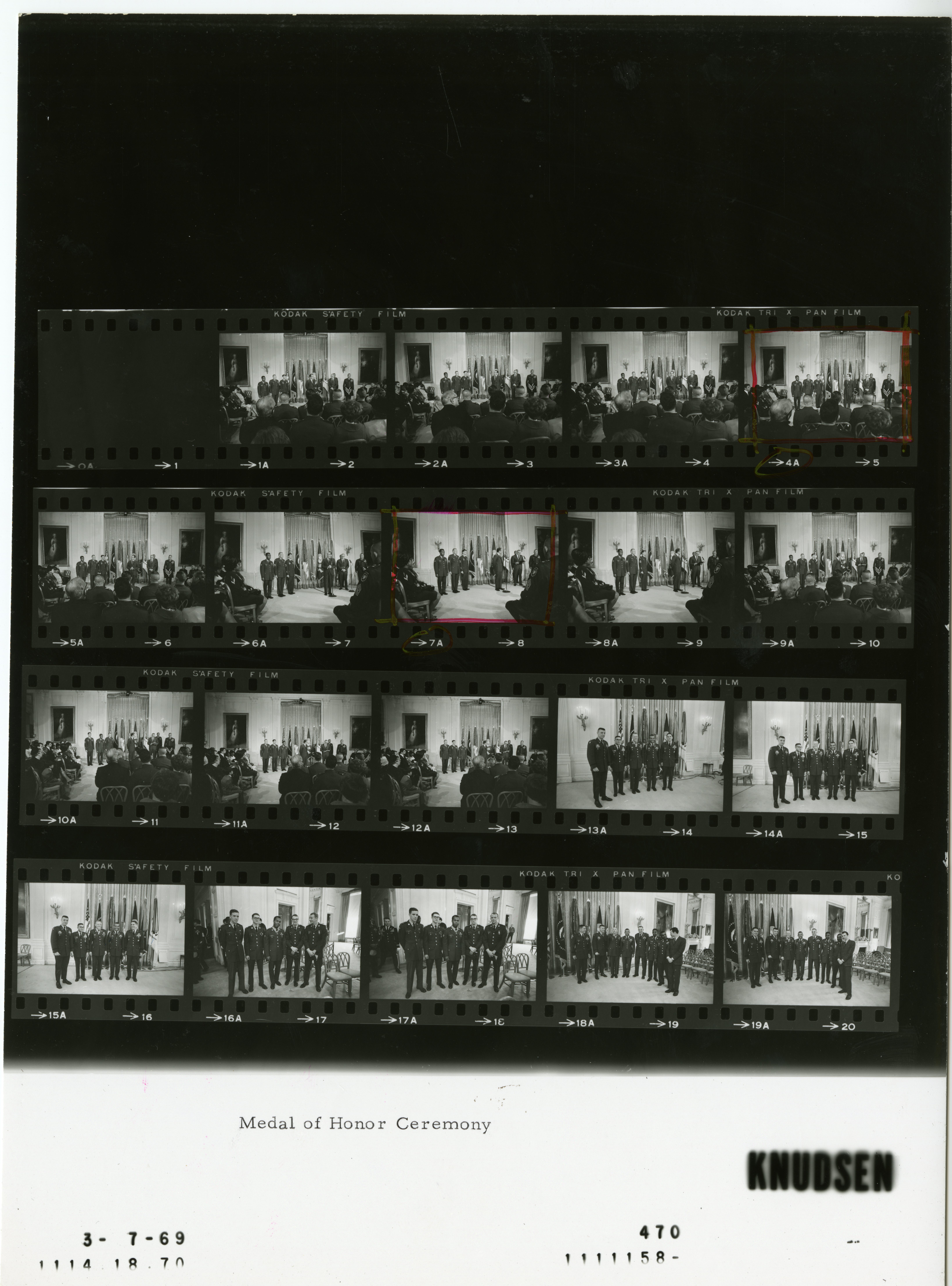 - Frame(s): WHPO-0468-02A-03A, Two unidentified soldiers at a Medal of Honor ceremony. 3/7/1969, Washington, D.C. White House, East Room. Clarence Sasser, Joe Hooper, unidentified civilians and Army personnel.