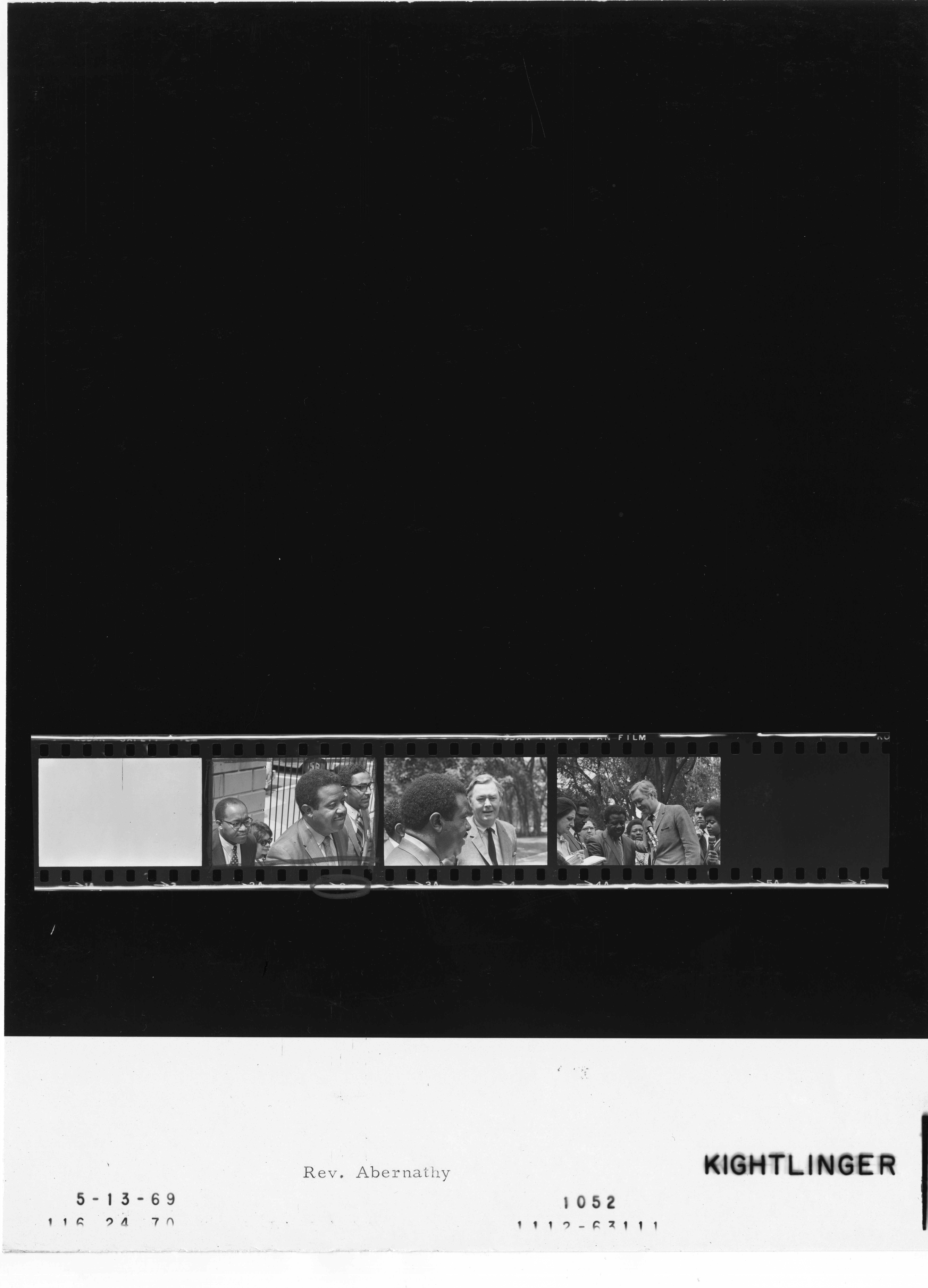 - Frame(s): WHPO-1051-03-06, Rev. Dr. Ralph Abernathy speaking to the press in conjunction with a meeting of the Urban Affairs Council. 5/13/1969, Washington, D.C. White House Grounds. Ralph Abernathy, unidentified aides, press corps.