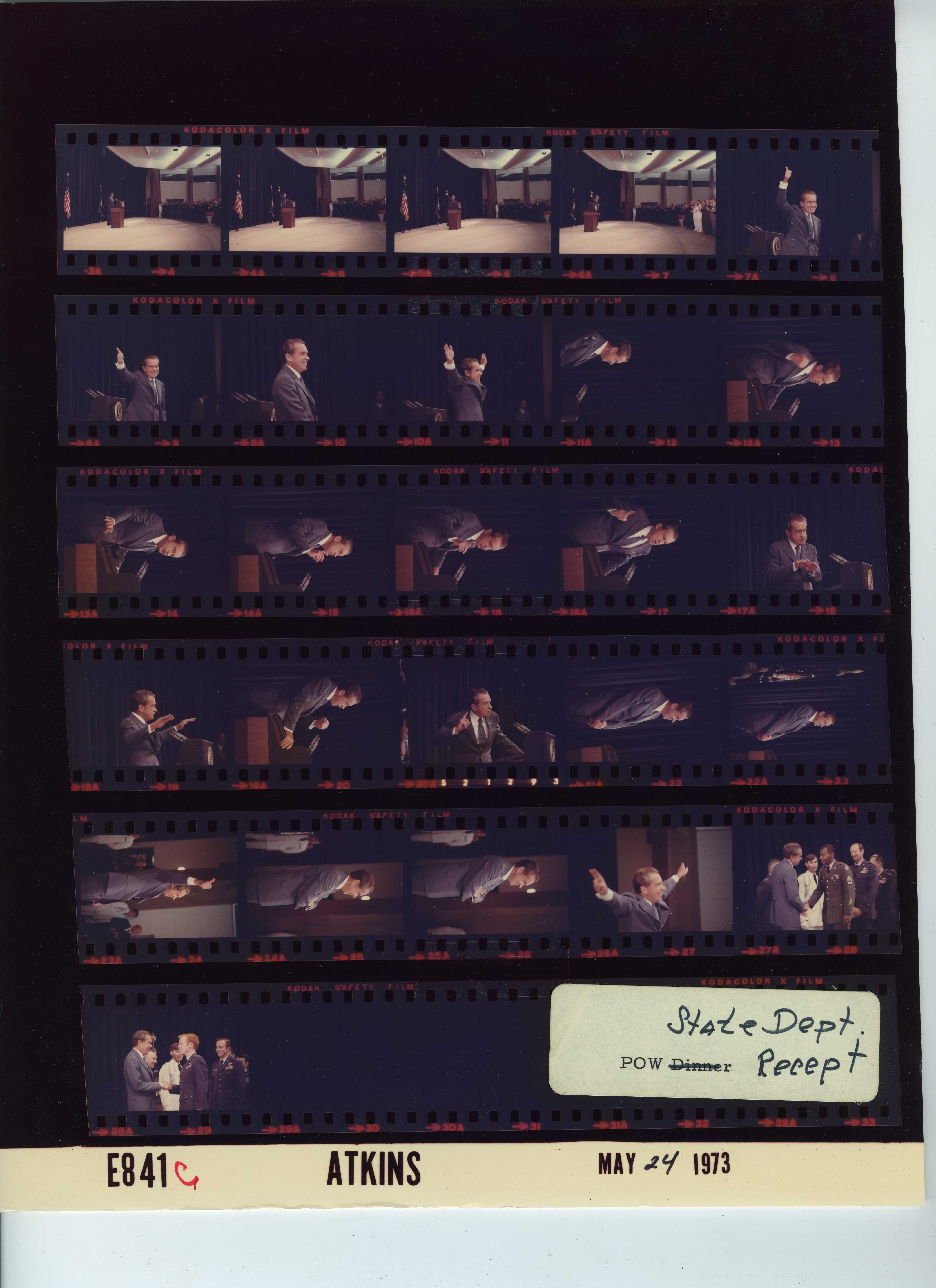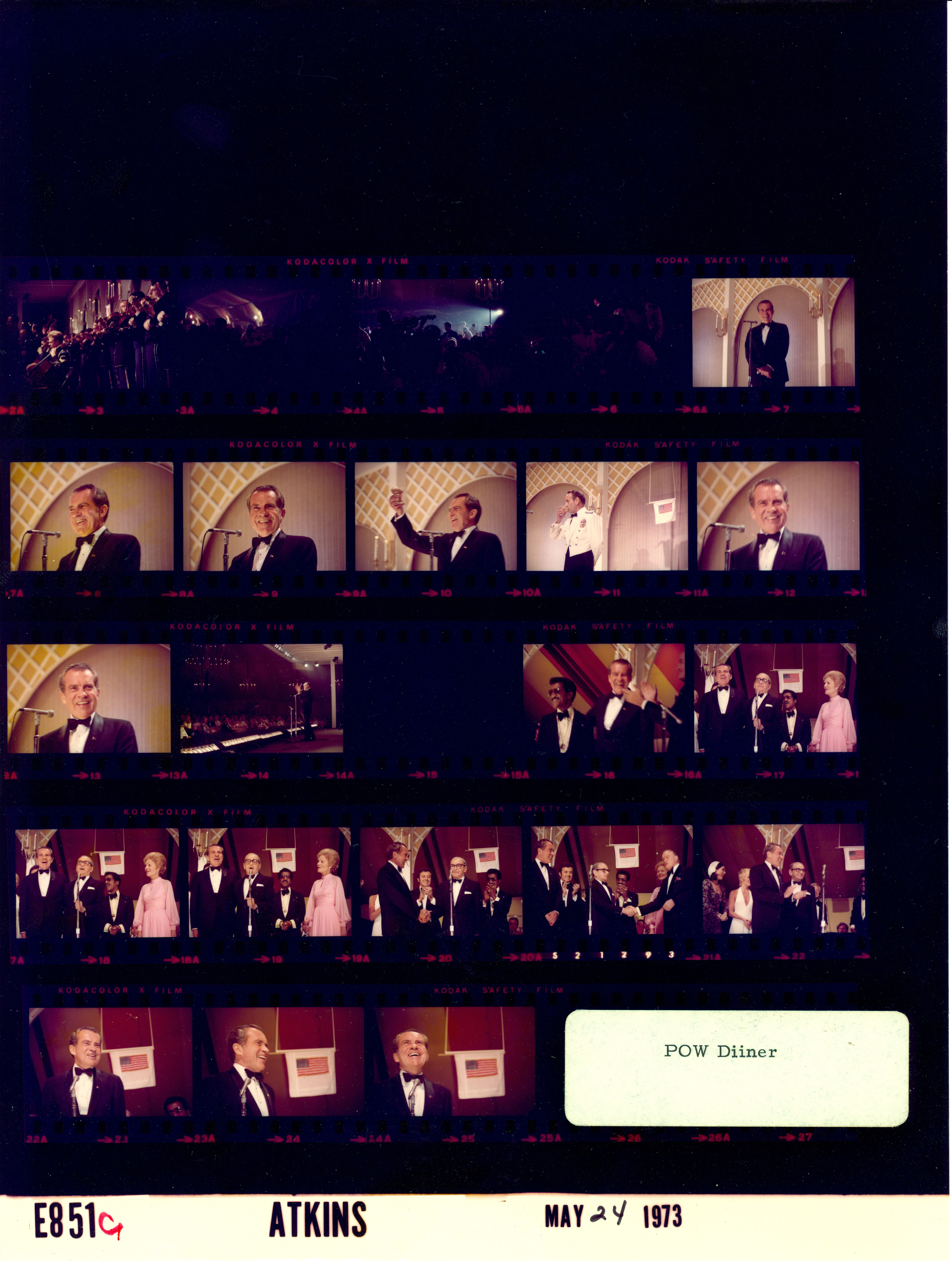- Frame(s): WHPO-E0851-09, Closeup of President Nixon smiling while standing at the microphone onstage at the POW (Vietnam Prisoner of War) Dinner. 5/24/1973, Washington, D.C. White House South Lawn, tent pavilion stage. President Nixon.