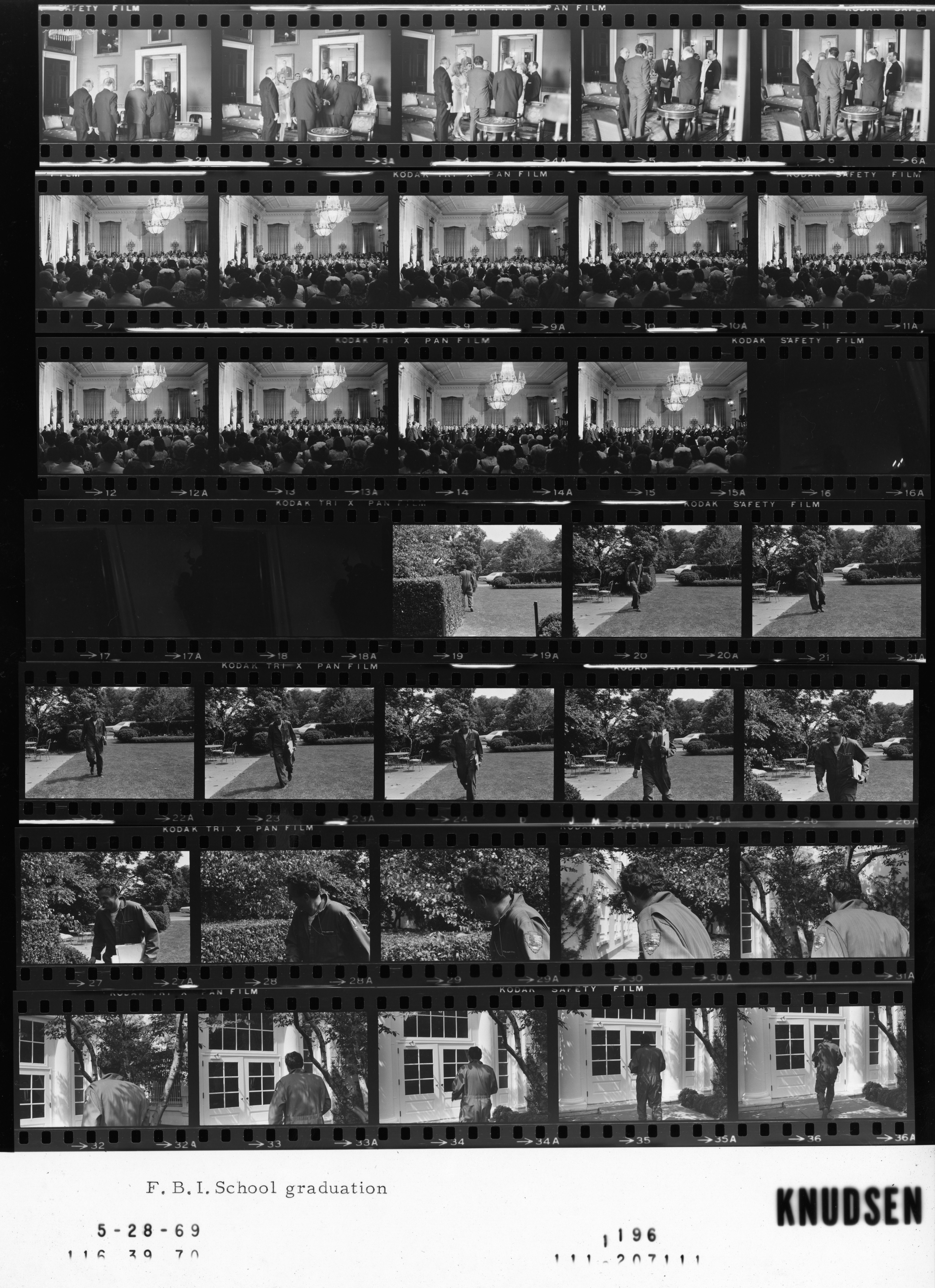 - Frame(s): WHPO-1196-07-15, Audience and graduates seen from the back of the White House East Room during the graduation ceremony for the F.B.I. National Academy. 5/28/1969, Washington, D.C. White House, East Room. http://nixon.archives.gov/virtuallibrary/documents/PDD/1969/007A%20May%2018-31%201969.pdf contains a list of graduates and officials.