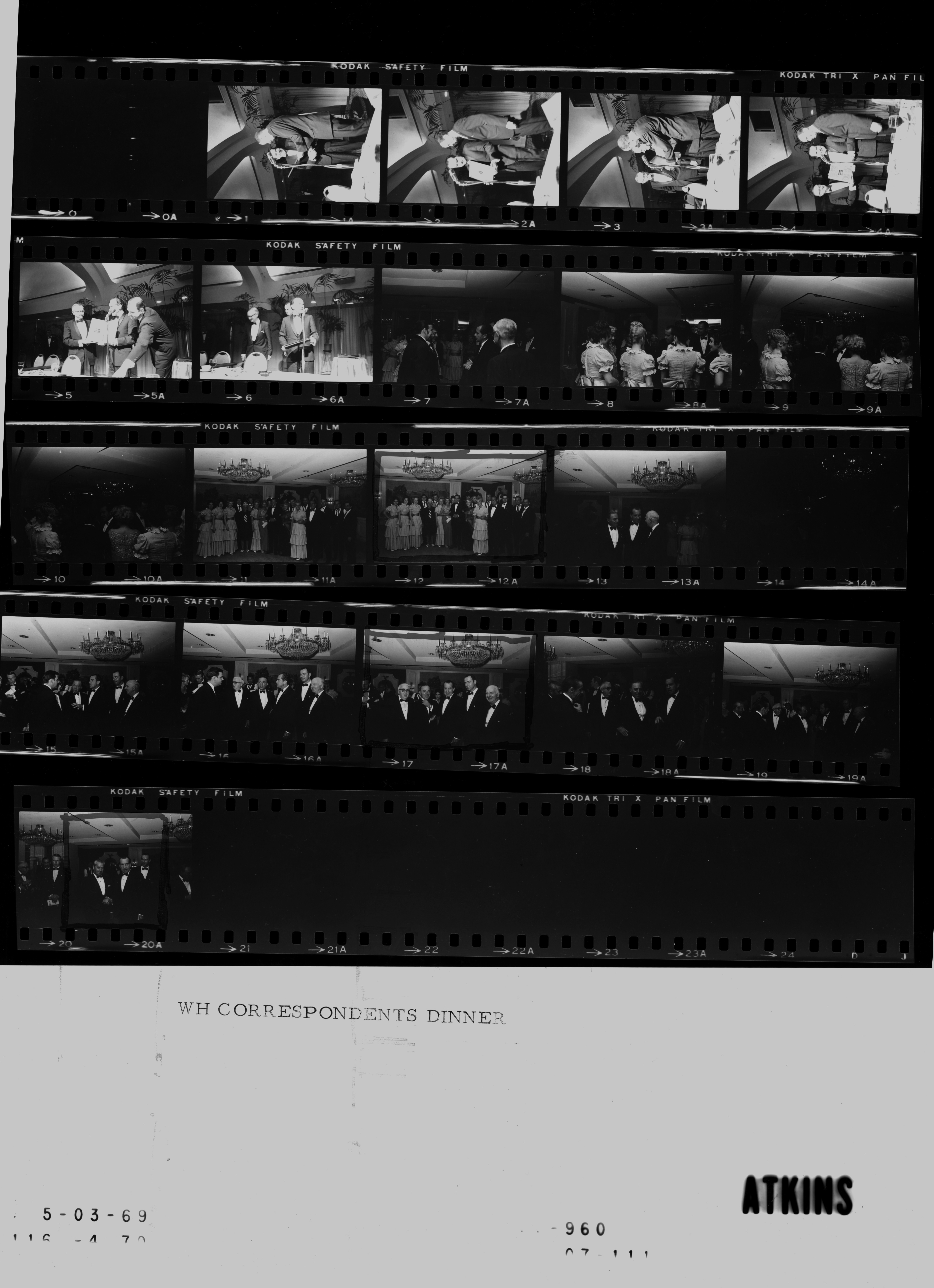 • Frame(s): WHPO-0960-07-20, President Nixon with various groups at White House Correspondents Dinner. 5/3/1969, Washington, D.C. Washington Hilton Hotel. President Nixon, unidentified newspaper and Press executives and reporters.