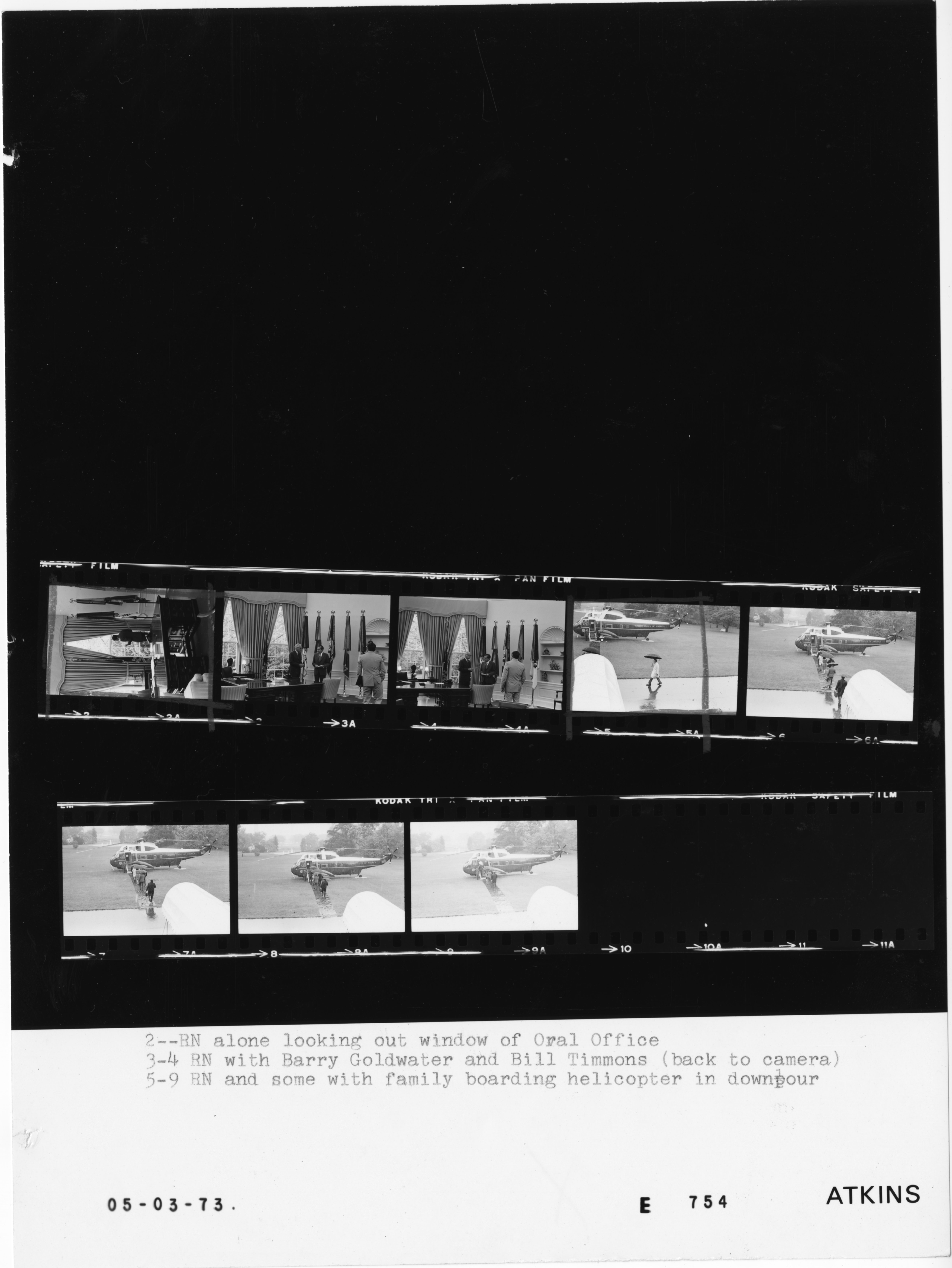 - Frame(s): WHPO-E0754-05A, President Nixon, wearing his trench coat and carrying an umbrella, walks to the presidential helicopter in the rain. 5/3/1973, Washington, D.C. White House, South Grounds. President Nixon.