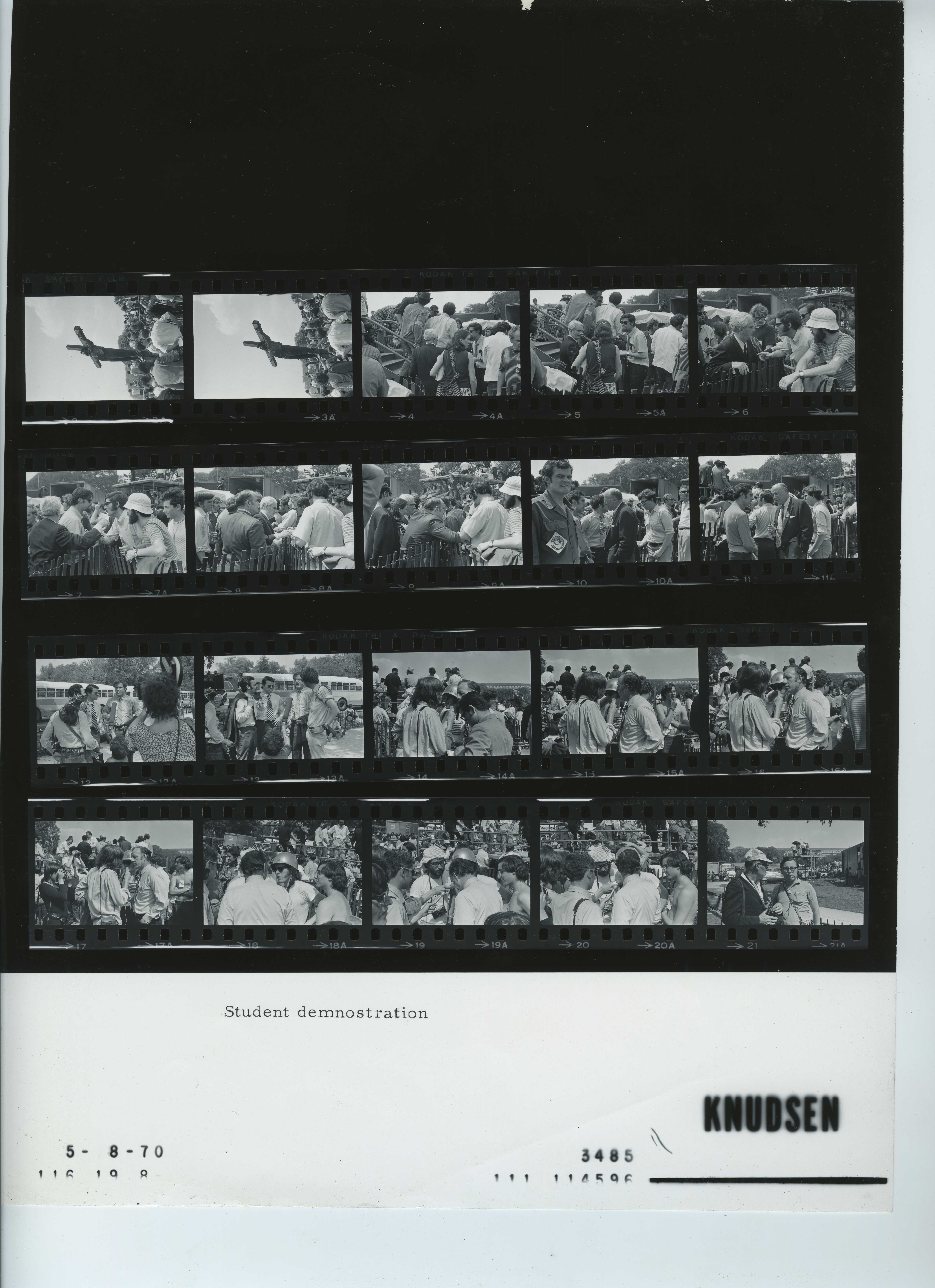 - Frame(s): WHPO-3485-04-21, Vietnam Moratorium Day Protest demonstrations. White House staff members speaking with protestors at a student demonstration on The Ellipse in Washington, D.C. [Also see 306-PSD-70-1342 (&1345) - sunrise at Lincoln Memorial w/related dup. negs.]. 5/9/1970, Washington, D.C. The Ellipse. unidentified White House staff members, unidentified protestors.