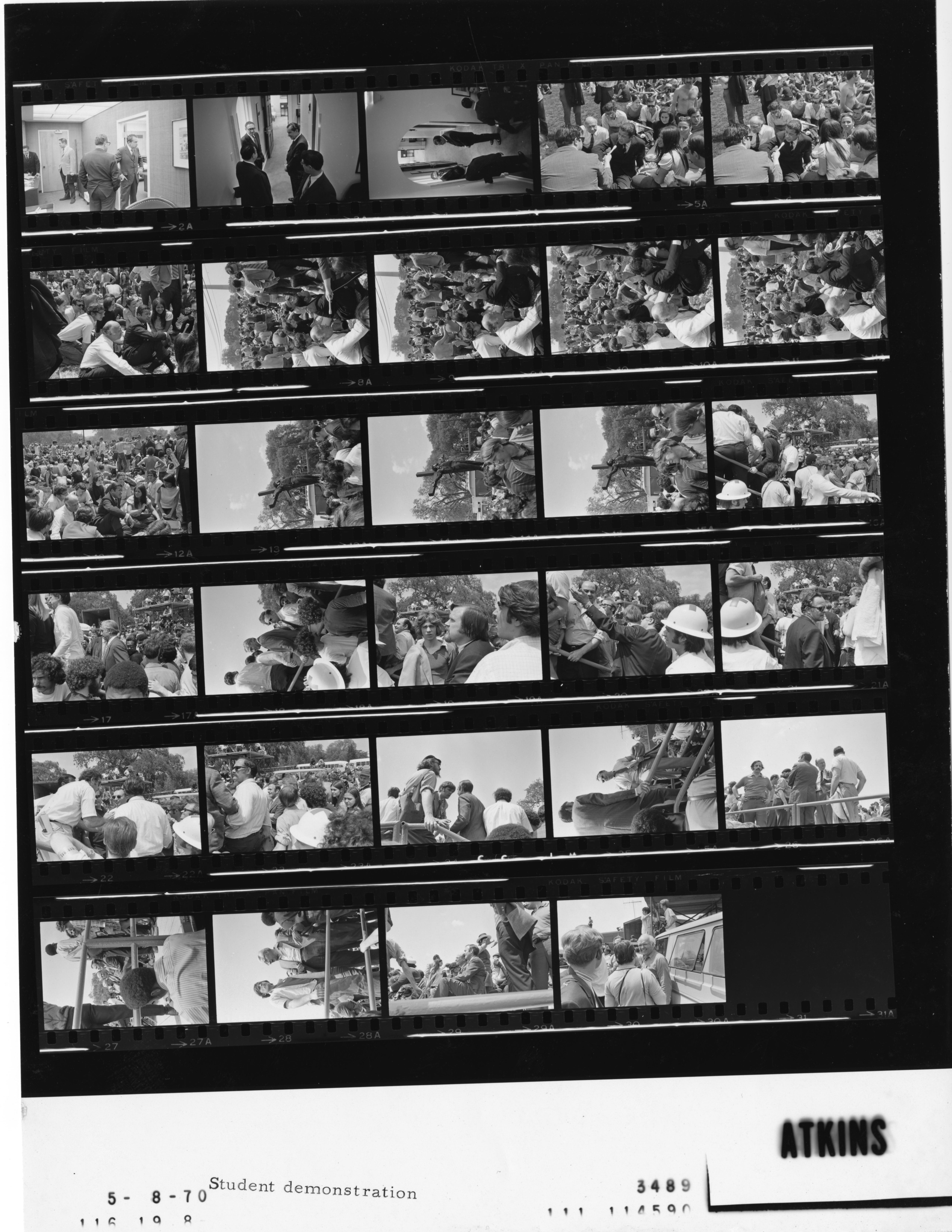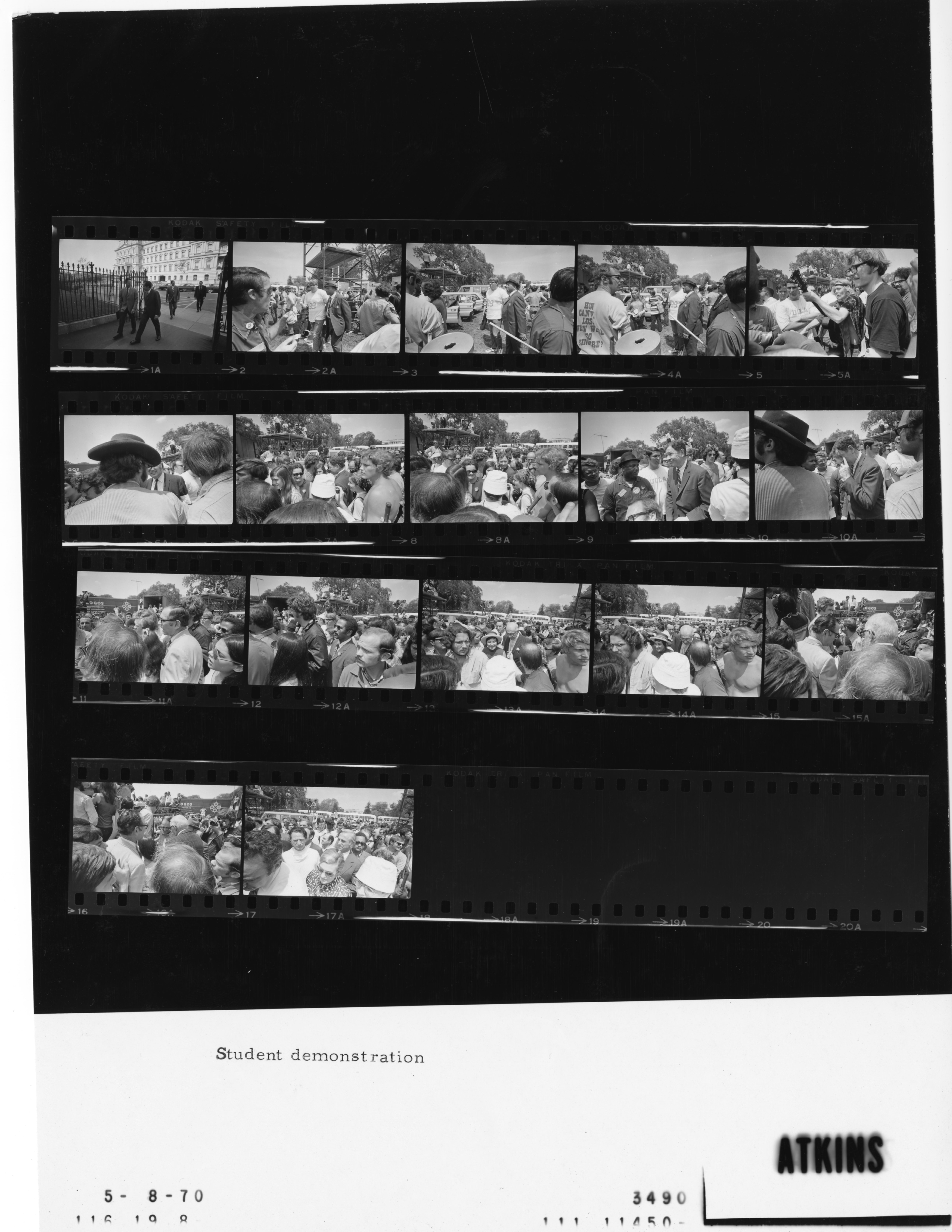 - Frame(s): WHPO-3489-09-11, 16-30, Vietnam Moratorium Day Protest demonstrations. White House staff members speaking with protestors at a student demonstration on The Ellipse in Washington, D.C. [Also see 306-PSD-70-1342 (&1345) - sunrise at Lincoln Memorial w/related dup. negs.]. 5/9/1970, Washington, D.C. The Ellipse. unidentified White House staff members, unidentified protestors.