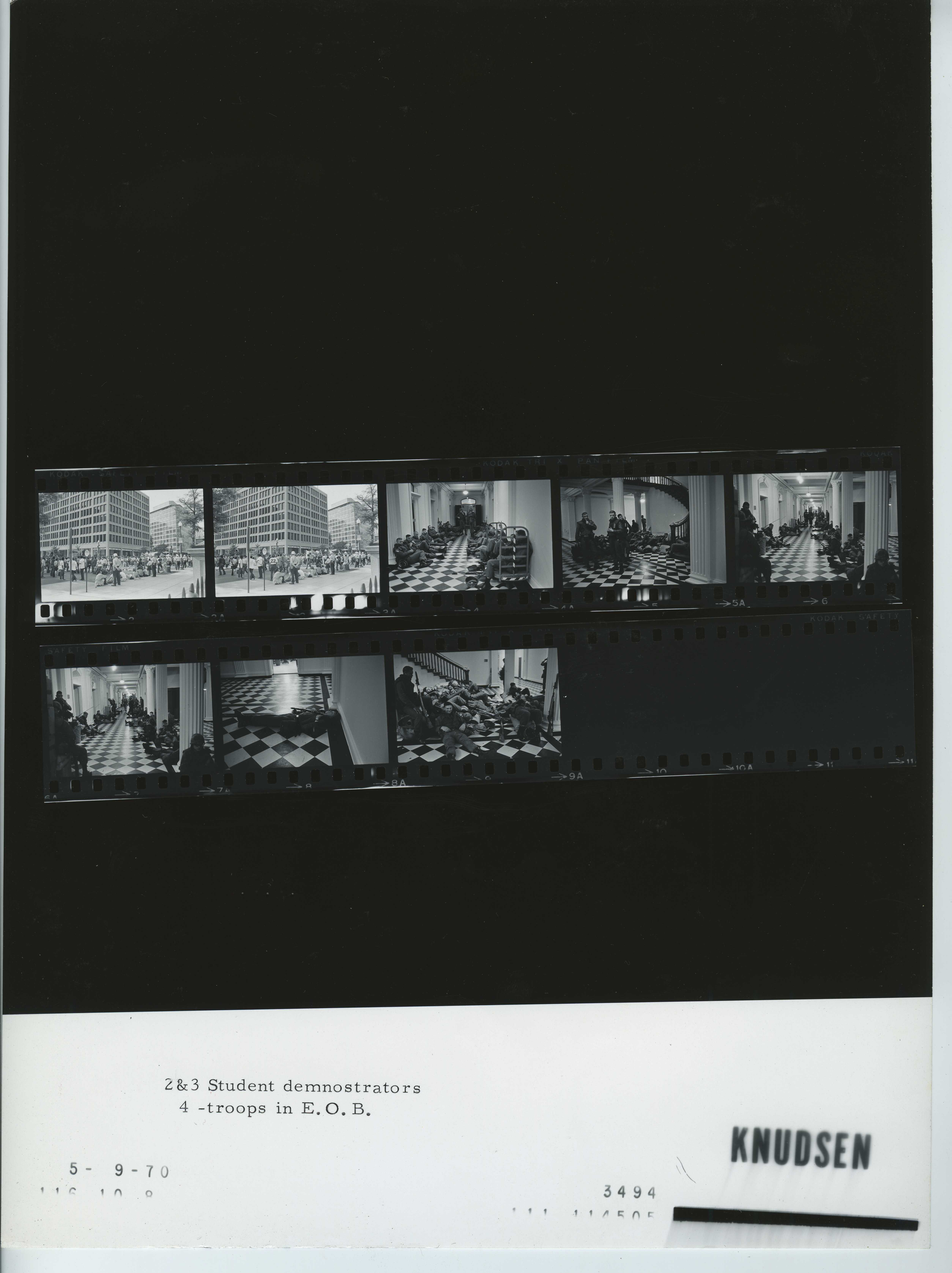 - Frame(s): WHPO-3494-07, National Guard troops sitting and laying on the floor in an Executive Office Building (EOB)hallway. 5/9/1970, Washington, D.C. Executive Office Building (EOB). military troops.