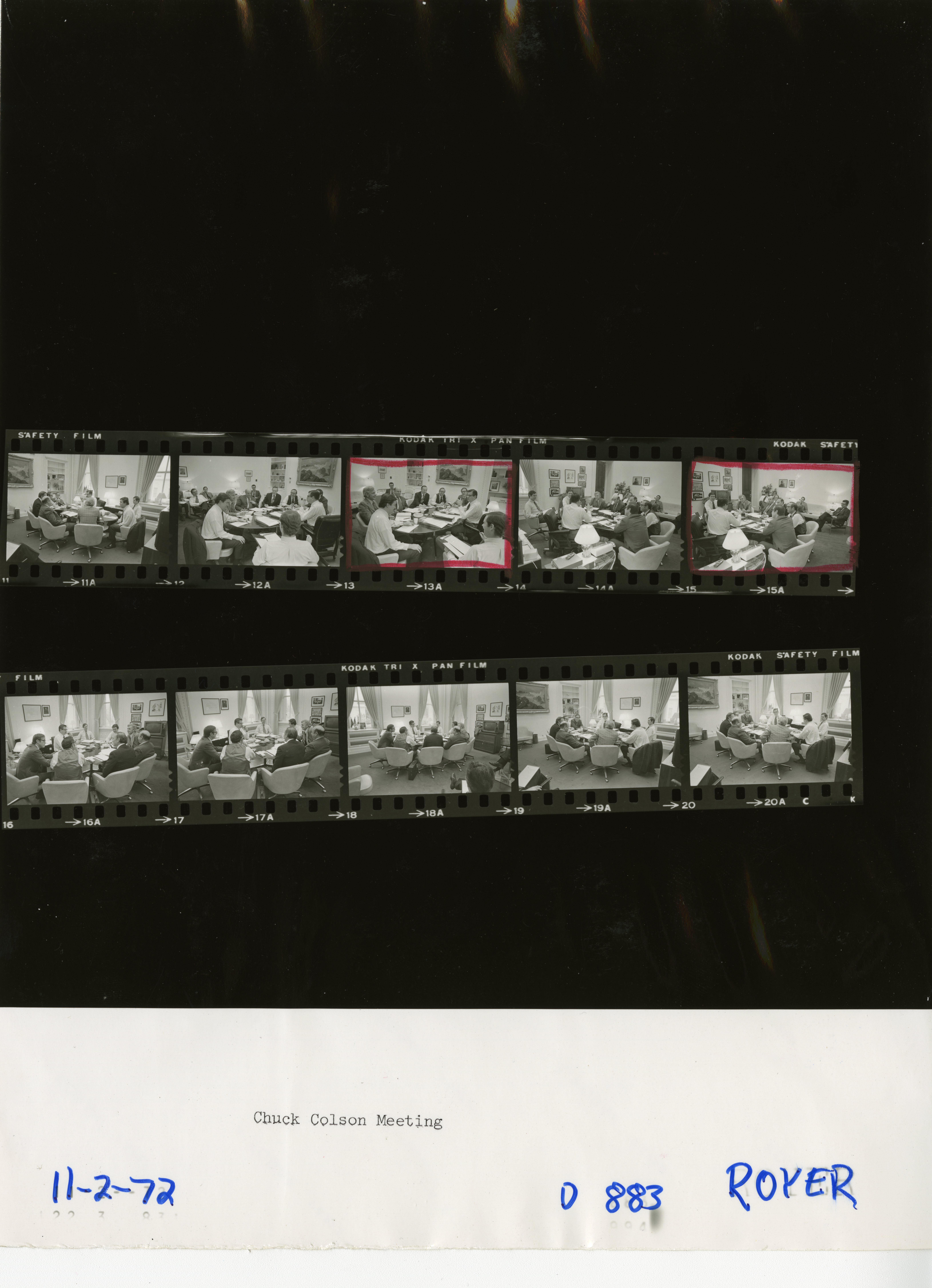 - Frame(s): WHPO-D0883-13A, Meeting of "Attack Group." L-R: Dick Howard, Pat Buchanan, Ed Failor, Al Abrahams, Des Barker, Ken Clawson, Wally Johnson, Charles Colson, Tim Wilck. 11/2/1972, Washington, D.C. Attack group, Dick Howard, Patrick Buchanan, Ed Failor, Al Abrahams, Des Barker, Ken Clawson, Wally Johnson, Charles Colson, Tim Wilck.