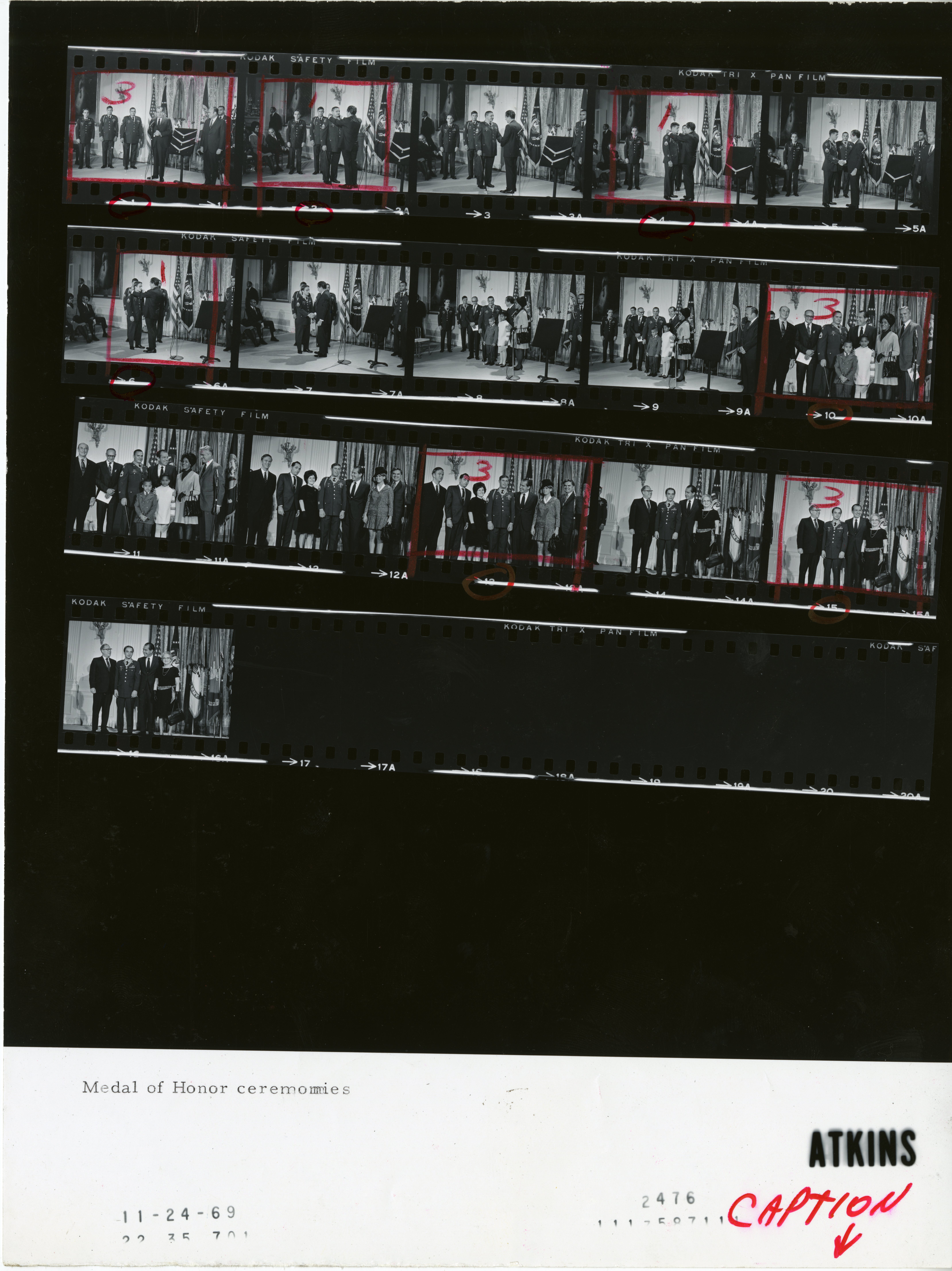 - Frame(s): WHPO-2475-, President Nixon speaking at Medals of Honor award ceremony. 11/24/1969, Washington, D.C. White House, East Room. President Nixon, Laird, Gen. Wm. Westmoreland, honorees, guests.