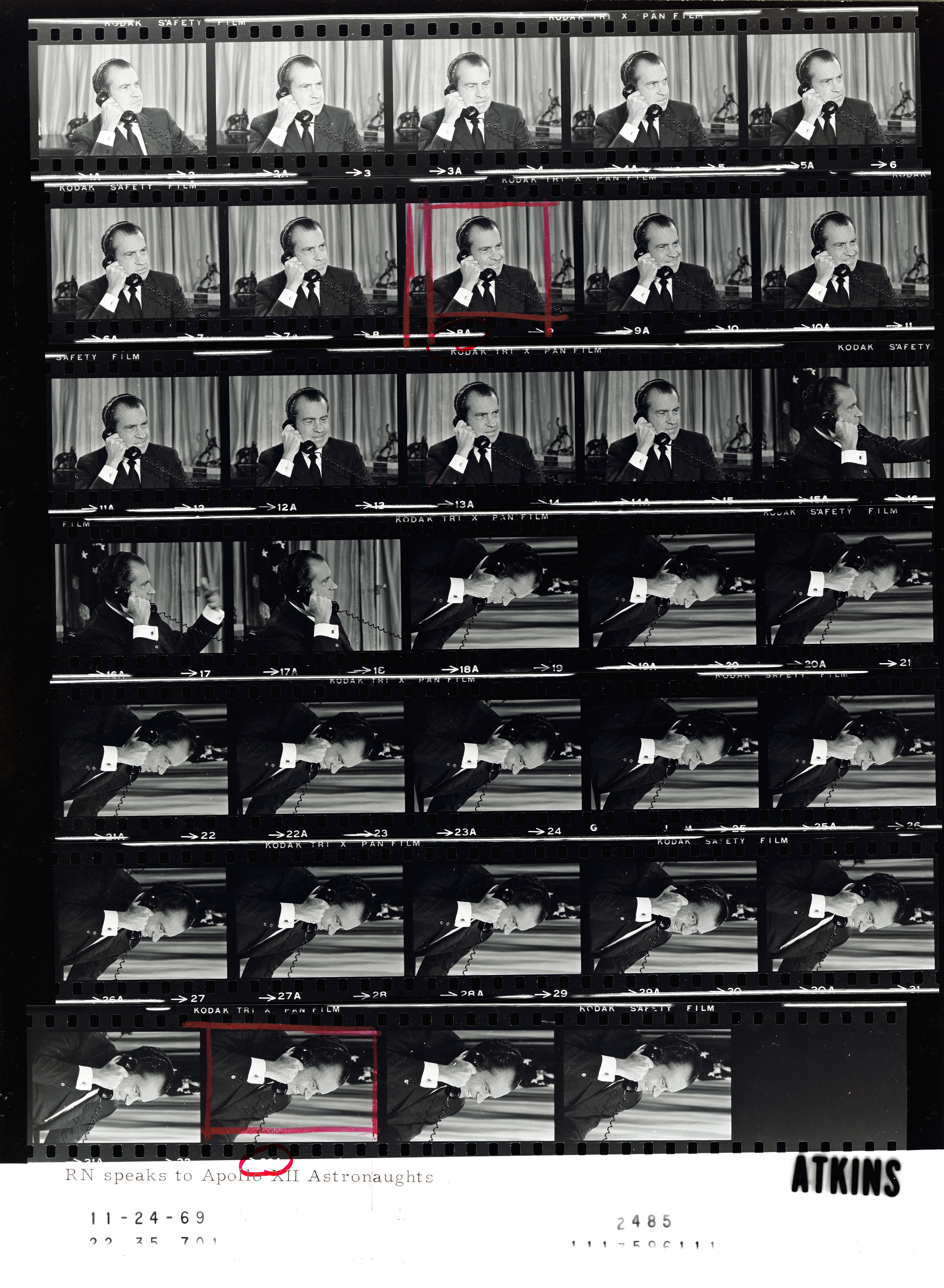 - Frame(s): WHPO-2485-32A, President Nixon talking on the telephone with the Apollo XII (Apollo 12) astronauts on board the USS Hornet. 11/24/1969, Washington, D.C. White House, Oval Office. President Nixon.