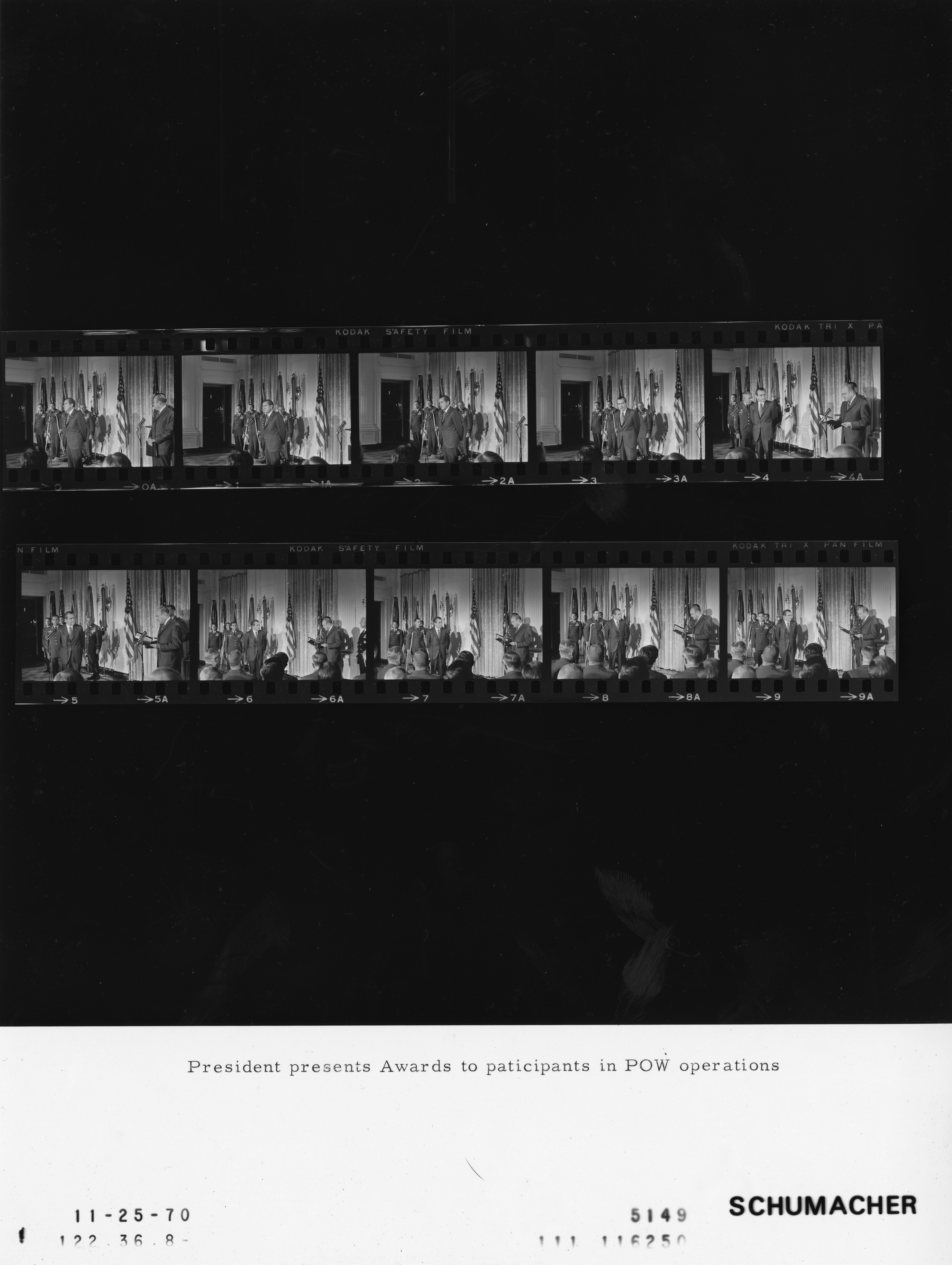 - Frame(s): WHPO-5149-00-09, President Nixon presenting awards to participants in POW (Vietnam Prisoner of War) operations including Colonel Arthur D. Simons, SFC Tyrone J. Adderly, T/Sgt. LeRoy M. Wright, and Brig. Gen. Leroy J. Manor. 11/25/1970, Washington, D.C. White House, State Dining Room. President Nixon, Arthur D. Simons, Tyrone J. Adderly, LeRoy M. Wright, Leroy J. Manor.