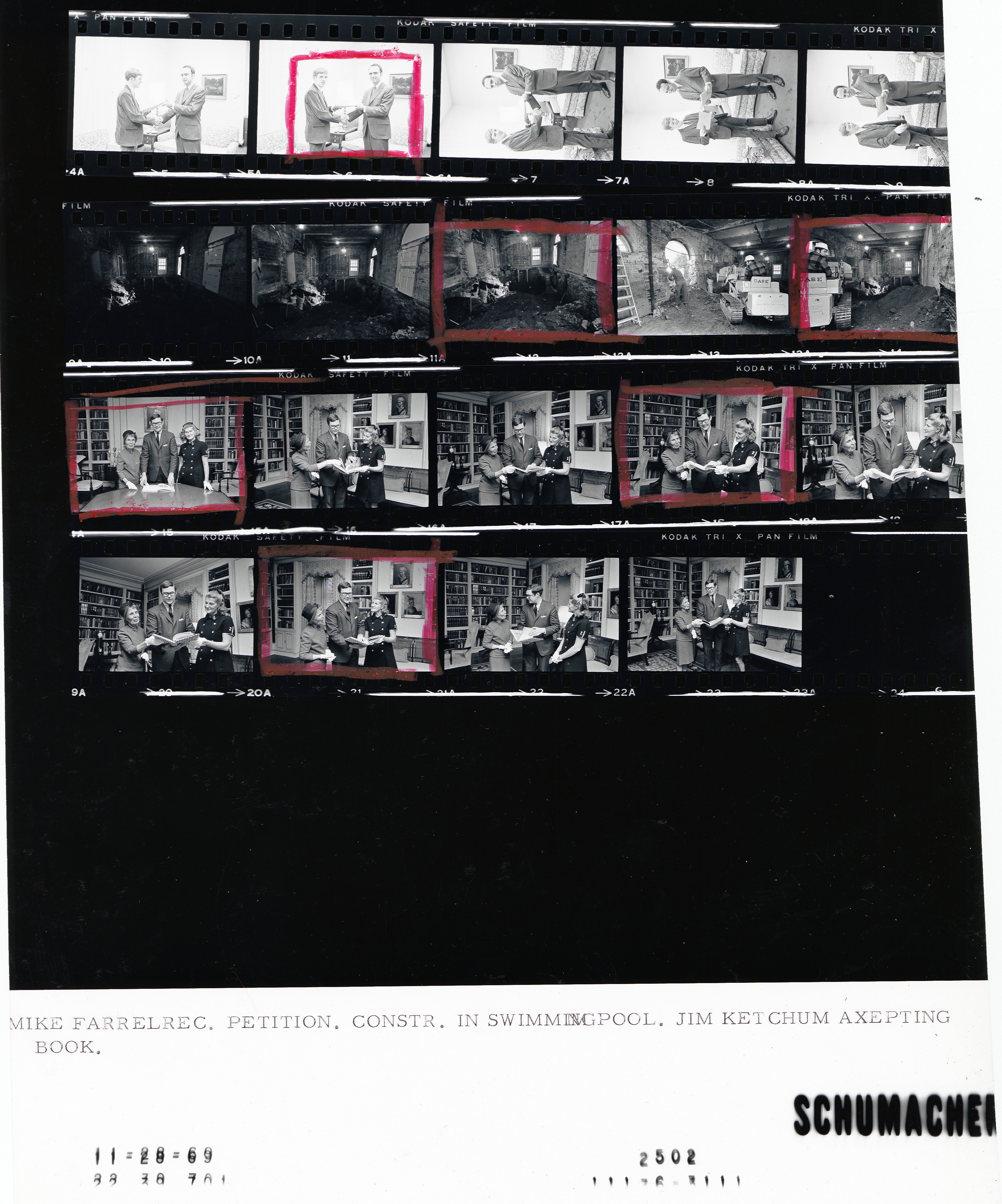 - Frame(s): WHPO-2502-15-23, Jim Ketchum accepting a book from two women. 11/28/1969, Washington, D.C. White House, library. Mike Farrell, unidentified young women.
