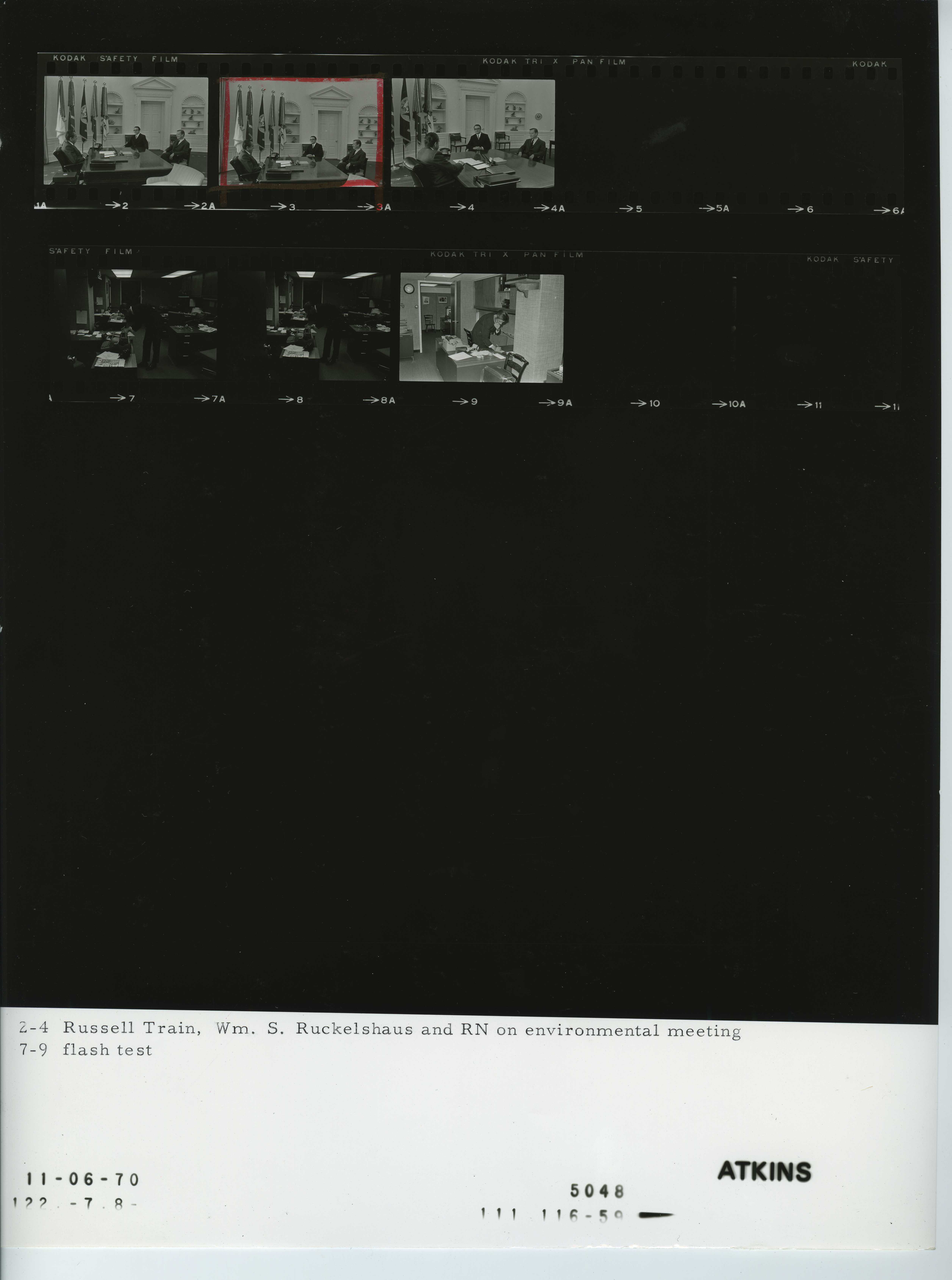 - Frame(s): WHPO-5048-02-04, President Nixon seated at his desk in the Oval Office during a meeting with Environmental Quality officials: Russell Train, Chairman of Council on Environmental Quality, William Ruckelshaus nominee for Administrator of Environmental Protection Agency. 11/6/1970, Washington, D.C. White House, Oval Office. President Nixon, Russell Train, William S. Ruckelshaus.