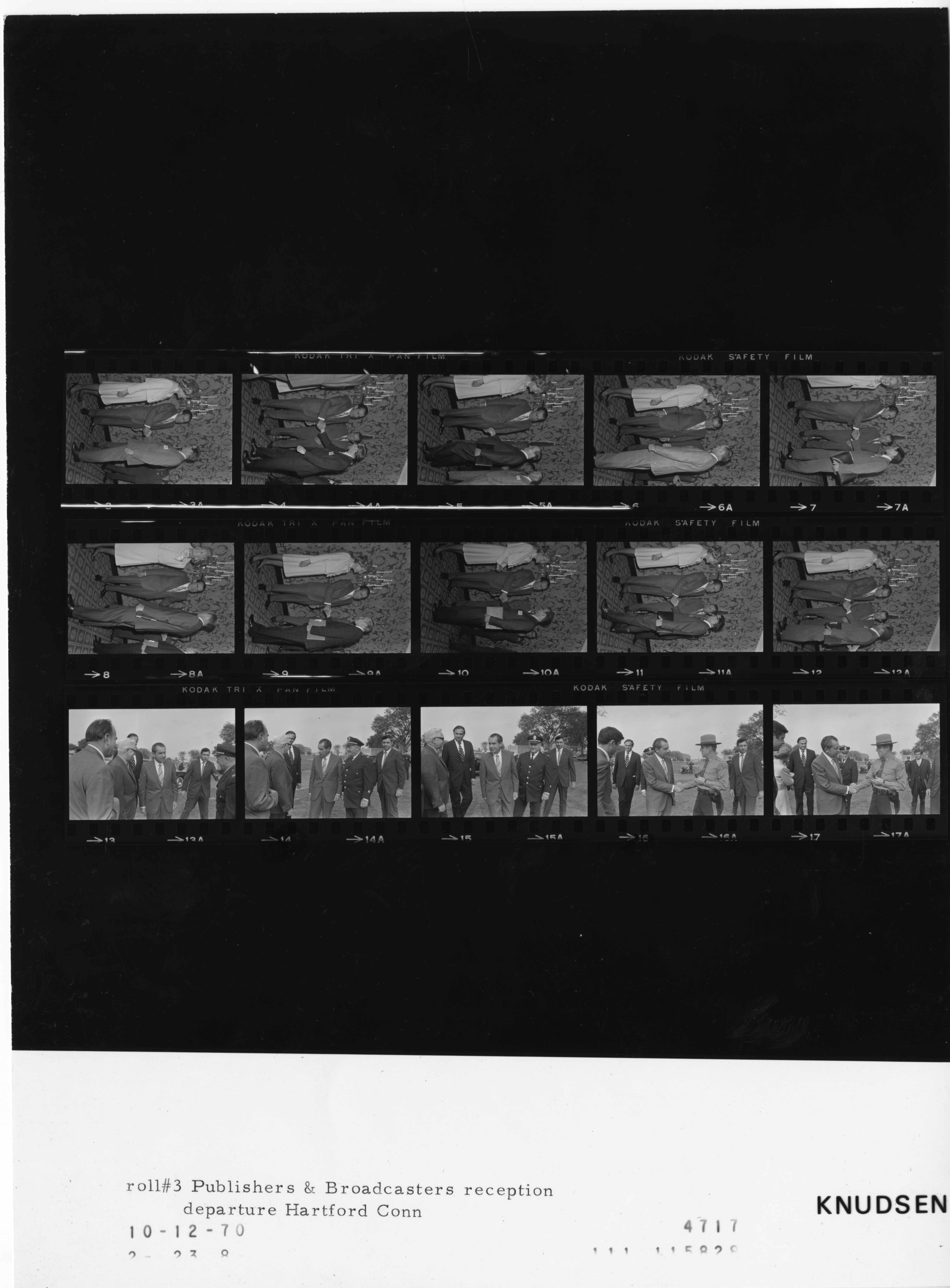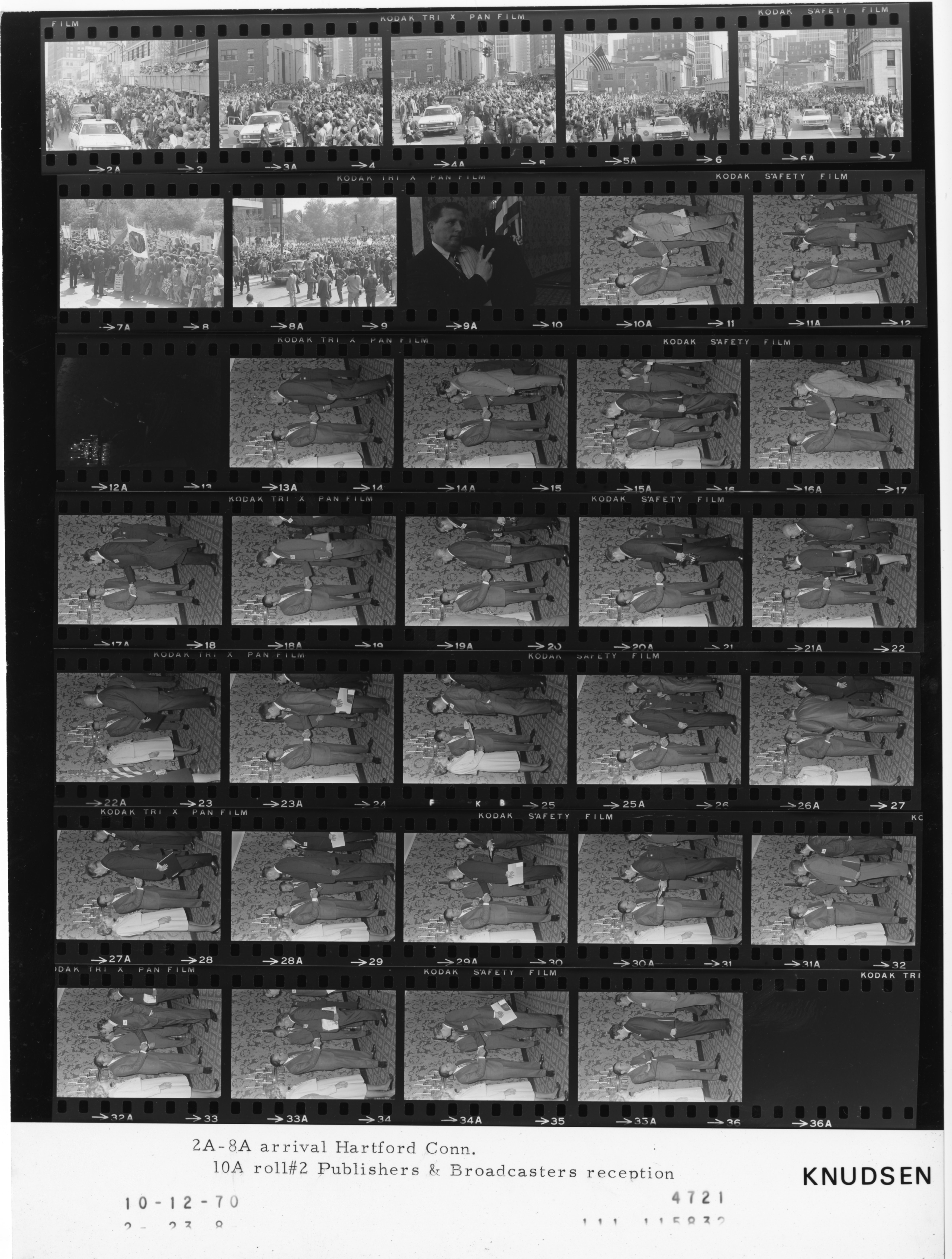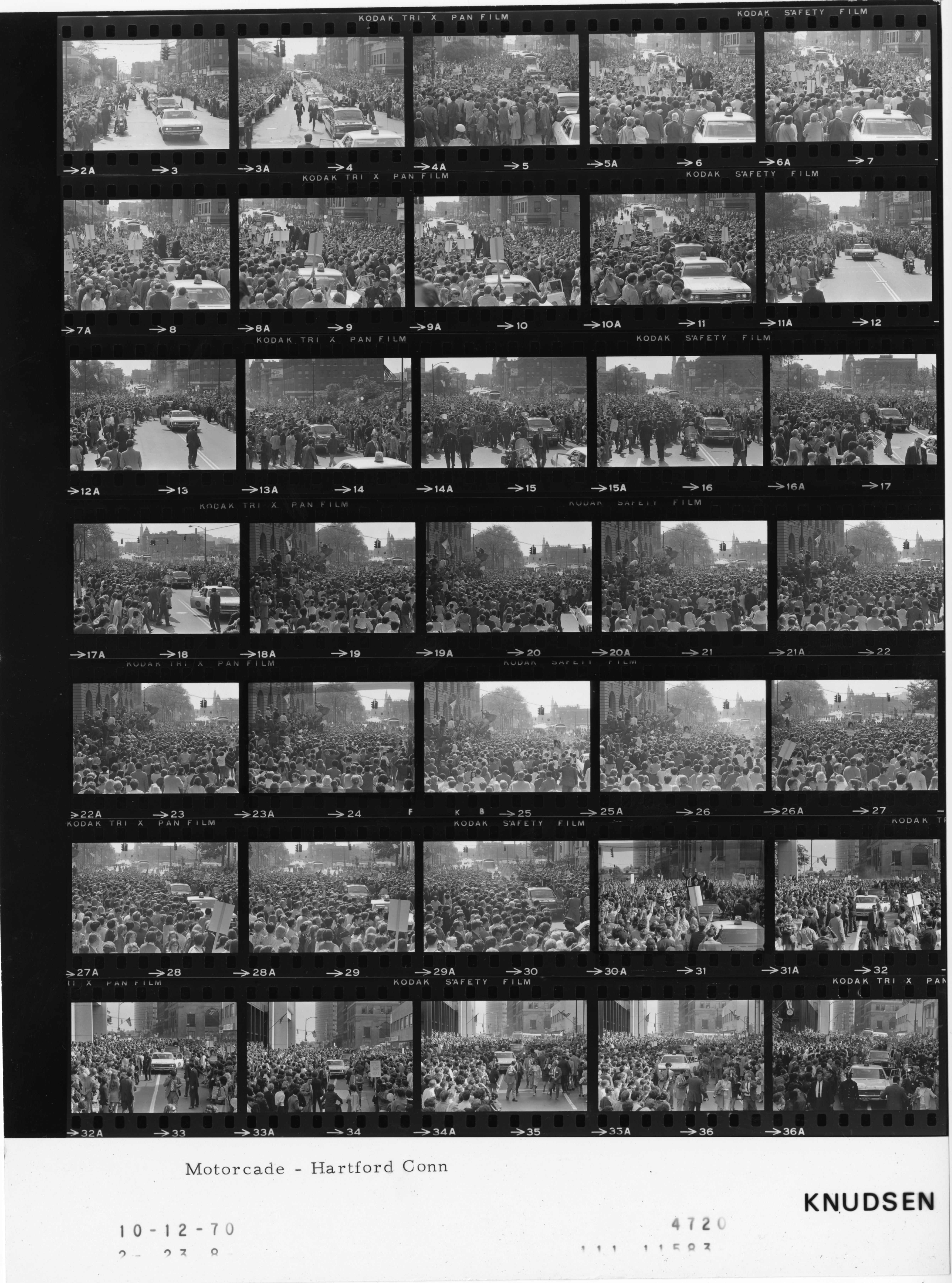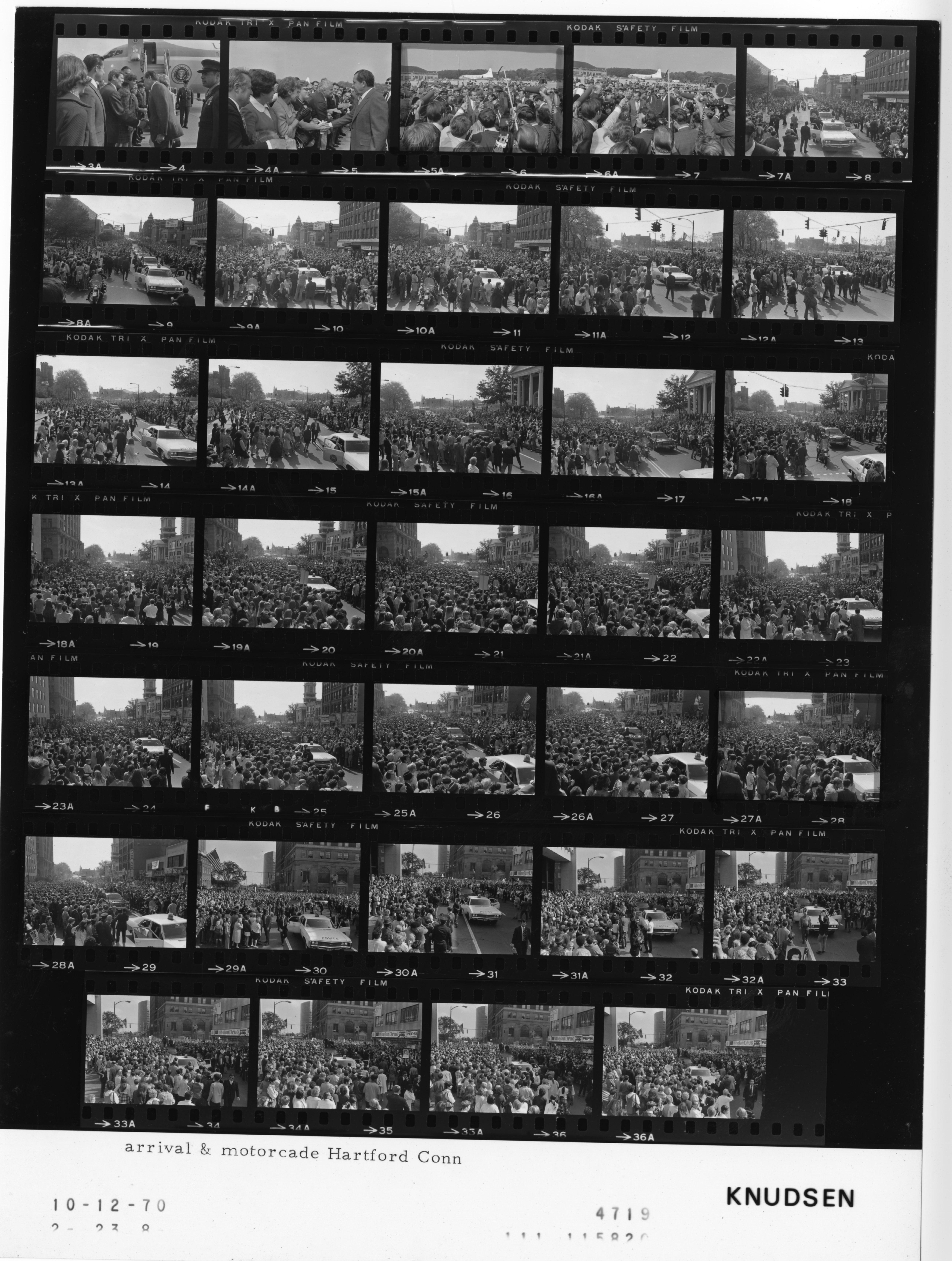 - Frame(s): WHPO-4721-02A-08A, President Nixon's motorcade traveling to downtown Hartford, Connecticut. 10/12/1970, Hartford, Connecticut streets. President Nixon, several local officials, crowd.