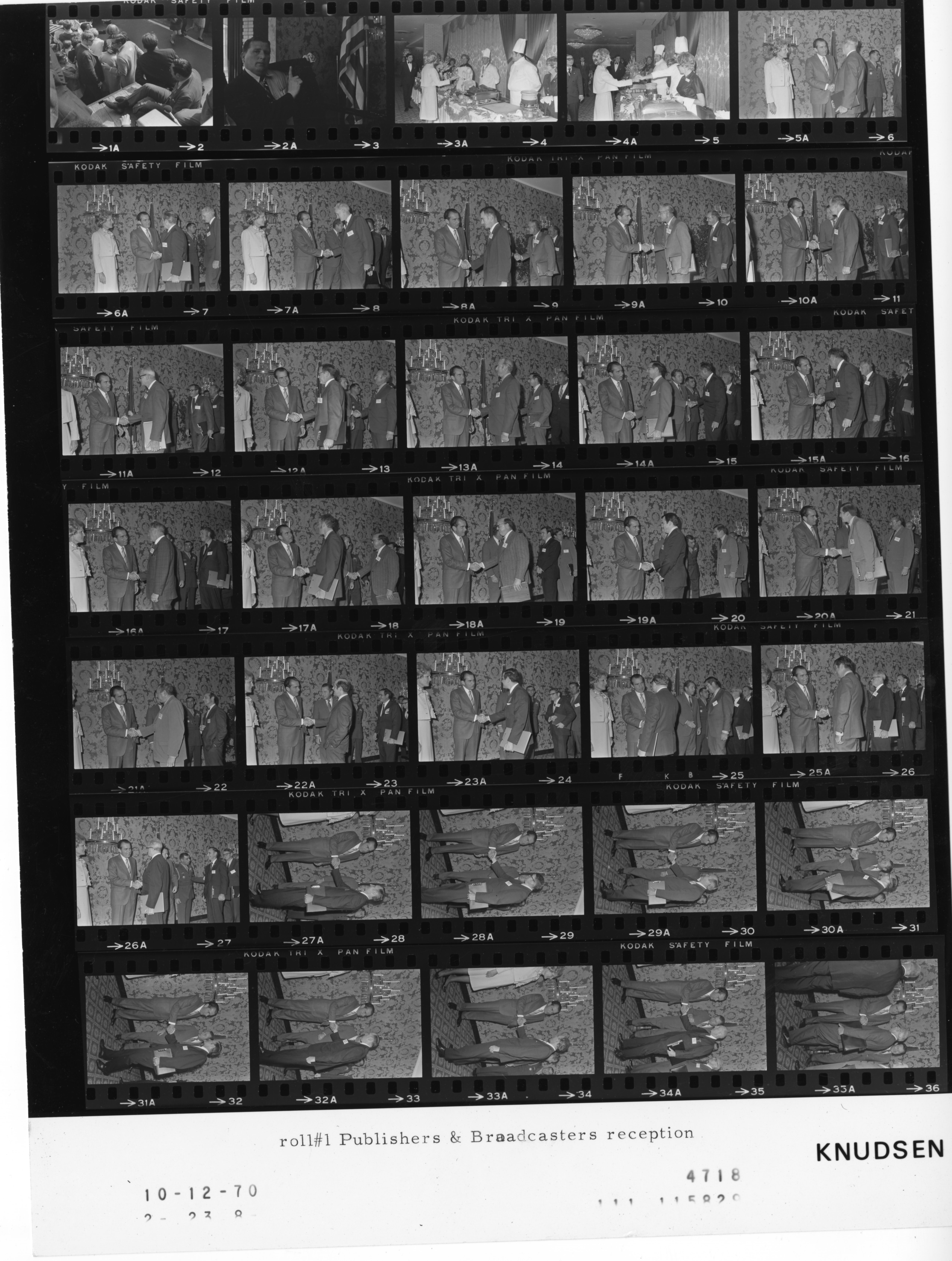 - Frame(s): WHPO-4718-03A-35A, President Nixon and Pat Nixon in the Terrace Room greeting attendees of the Media briefing. 10/12/1970, Hartford, Connecticut Hartford Hilton Hotel, Terrace Room. President Nixon, Pat Nixon, unidentified press corps members, reporters and photographers.