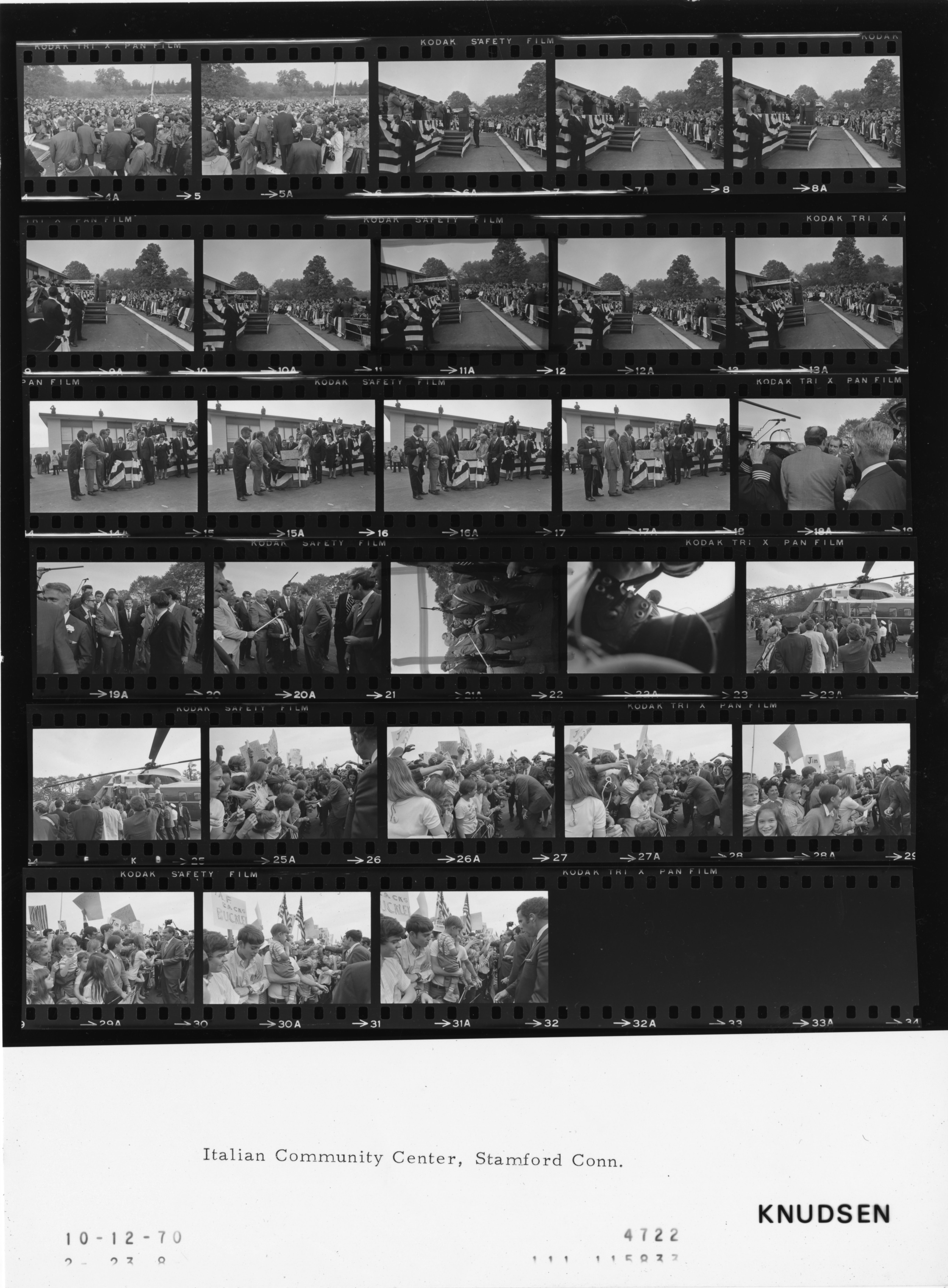 - Frame(s): WHPO-4717-13-17, President Nixon and others preparing to depart Colt Park in Hartford to go to the Italian Community Center in Stamford. 10/12/1970, Hartford, Connecticut. Colt Park. President Nixon and members of the Presidential party.