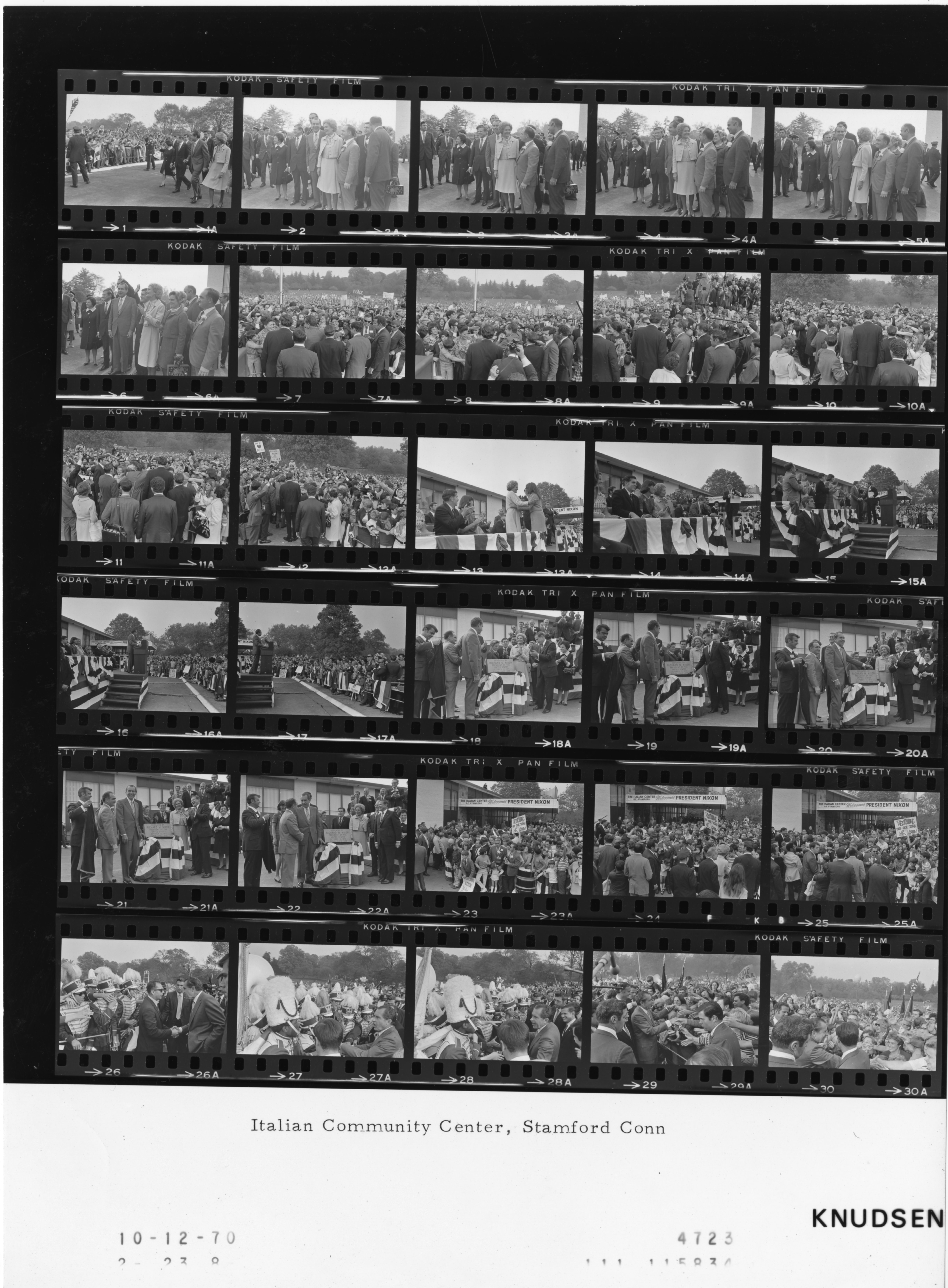 - Frame(s): WHPO-4723-Roll 4723: 01-30, President Nixon, Pat Nixon, Secretary of Transportation, John Volpe, Mrs. Jennie Volpe, Congressman and Mrs. Lowell Weicker, Ralph Gervasio, the President and the Exec. Director of the Italian Community Center and other officials of the Center celebrating Columbus Day by dedicating the Italian Community Center. 10/12/1970, Stamford, Connecticut The Italian Community Center. President Nixon, Pat Nixon, John Volpe, Jennie Volpe, Lowell Weicker and Mrs. Lowell Weicker, Ralph Gervasio, officials of the Center.